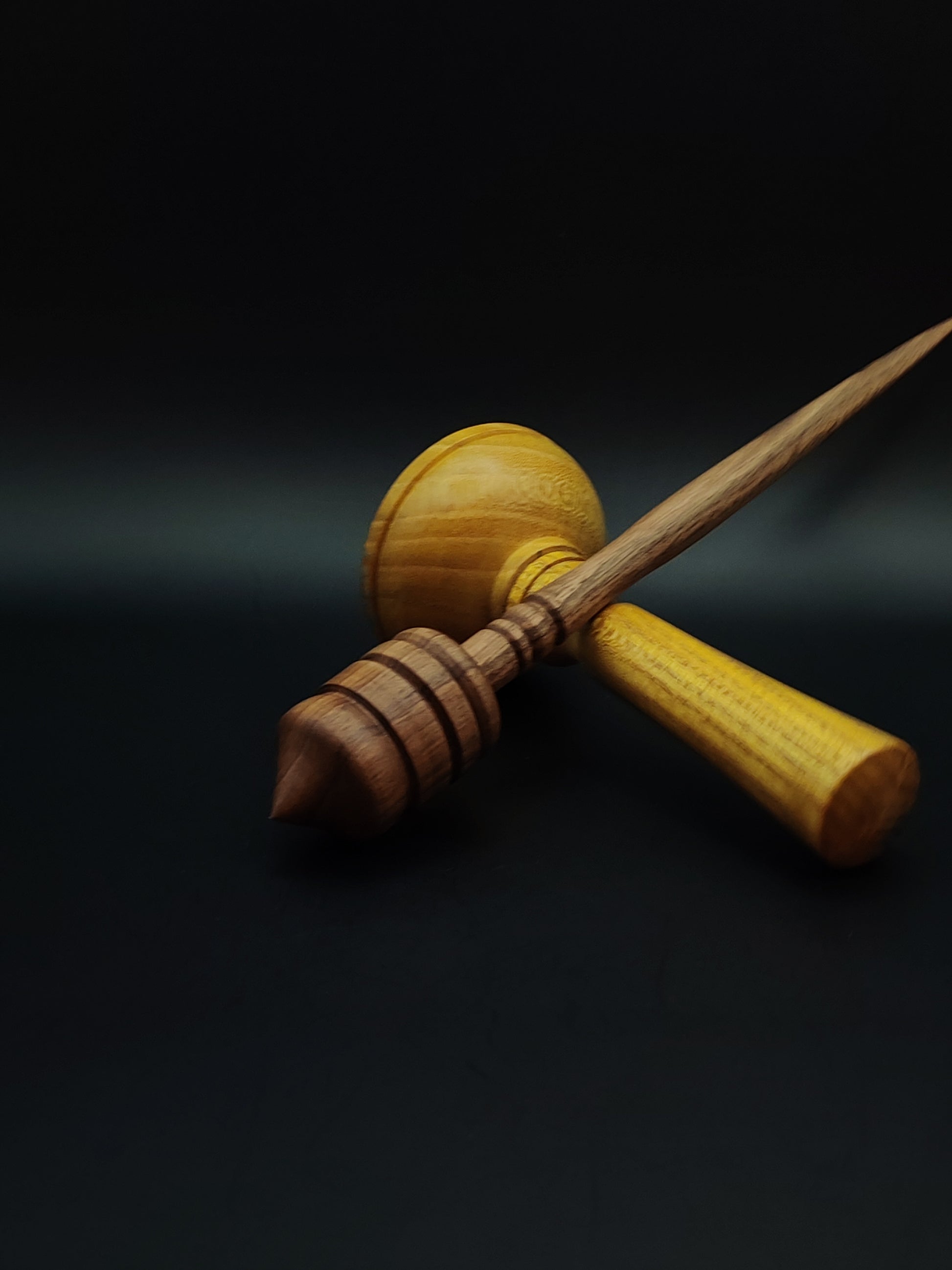 This Walnut Support Spindle Set is crafted for spinners who appreciate a slightly heavier spindle for added control and extended spin duration. Weighing 29 grams (1.02 ounces) and measuring 23 cm (9 inches), the spindle is ideal for spinning medium to heavier fibers with steady, balanced momentum.