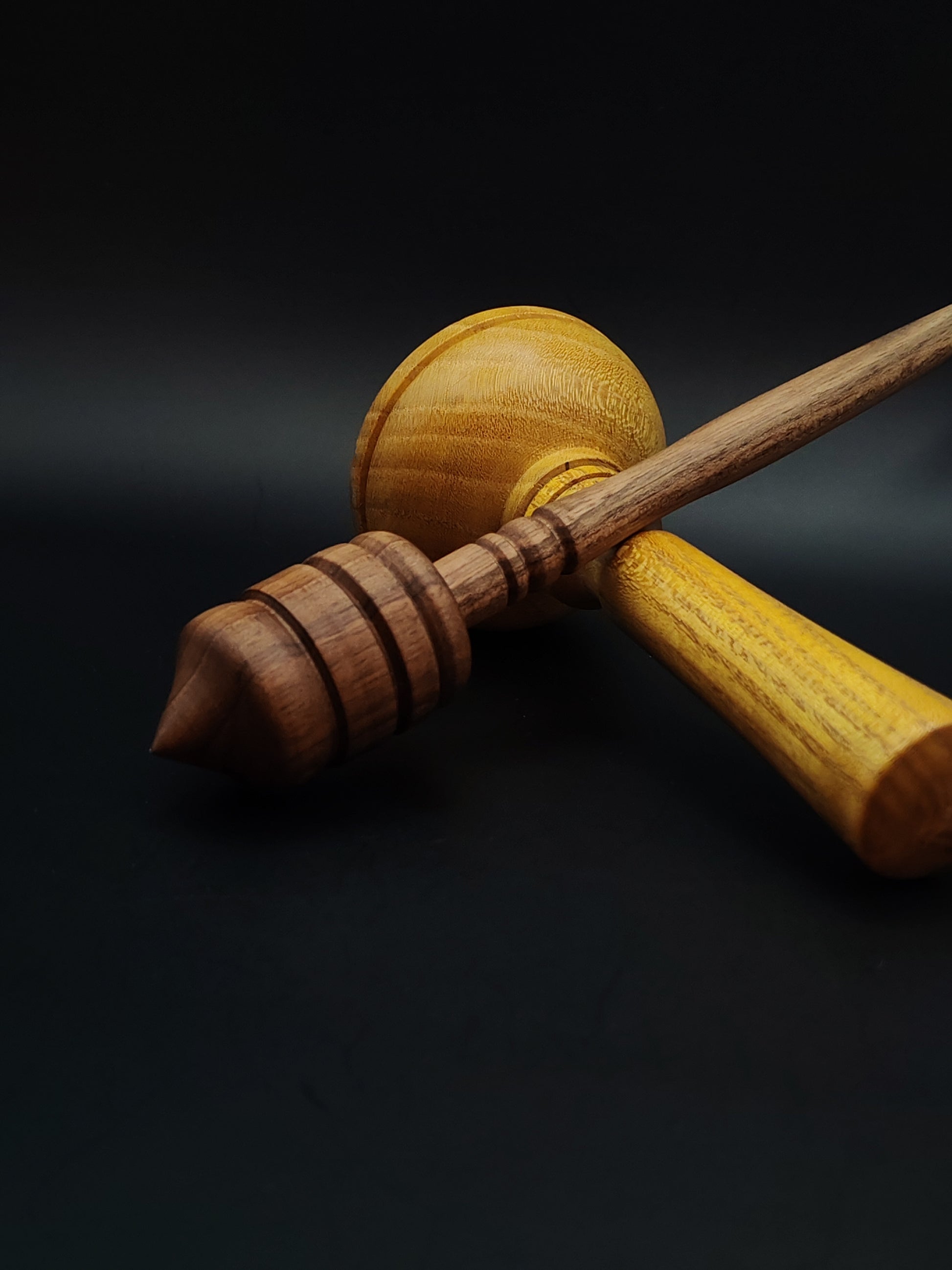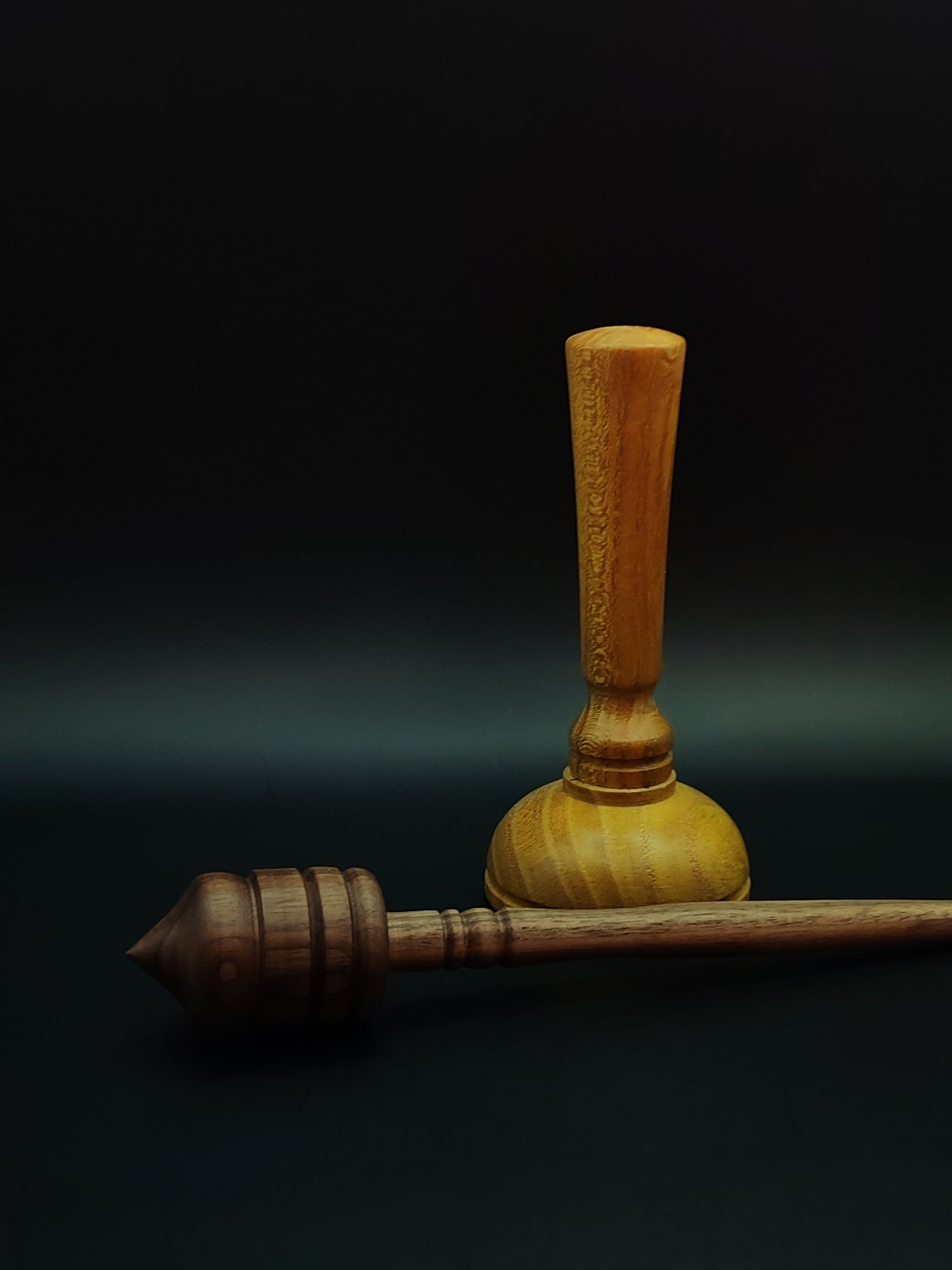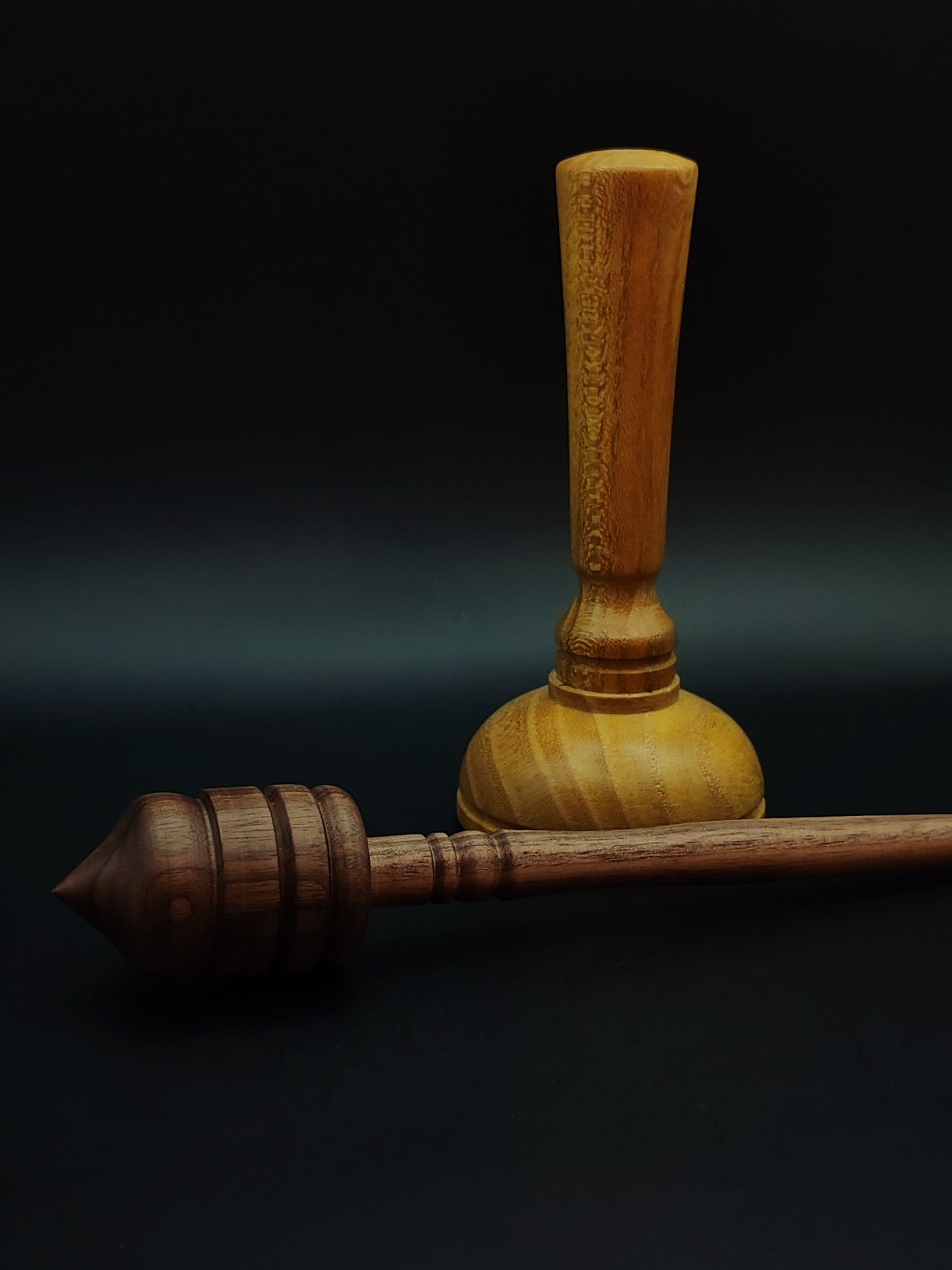 Walnut Support Spindle Set – 29g / 1.02oz, 23cm / 9in – With Mulberry Lap Support Bowl | Organic Wax Finish | Kravelli Spindles