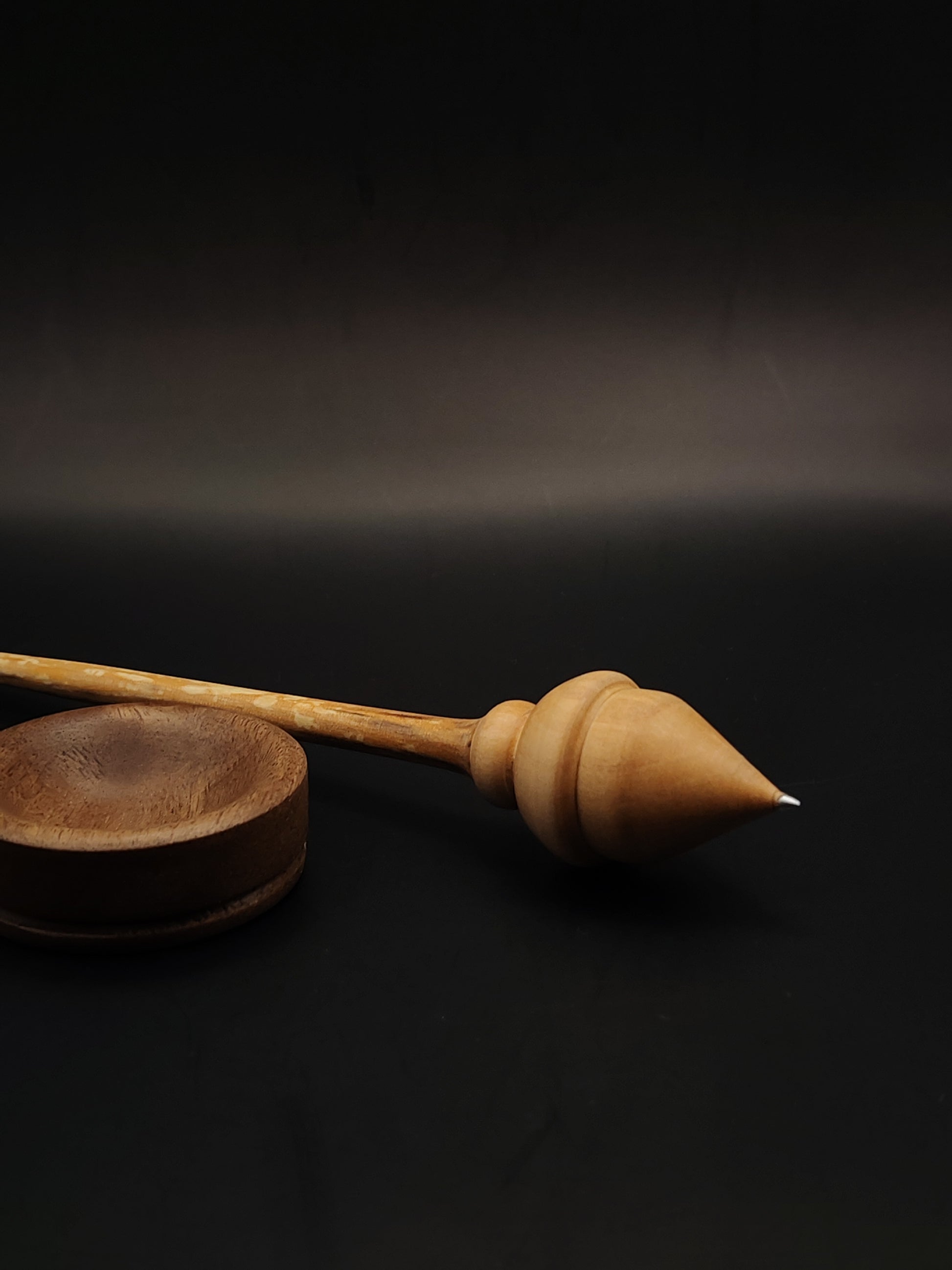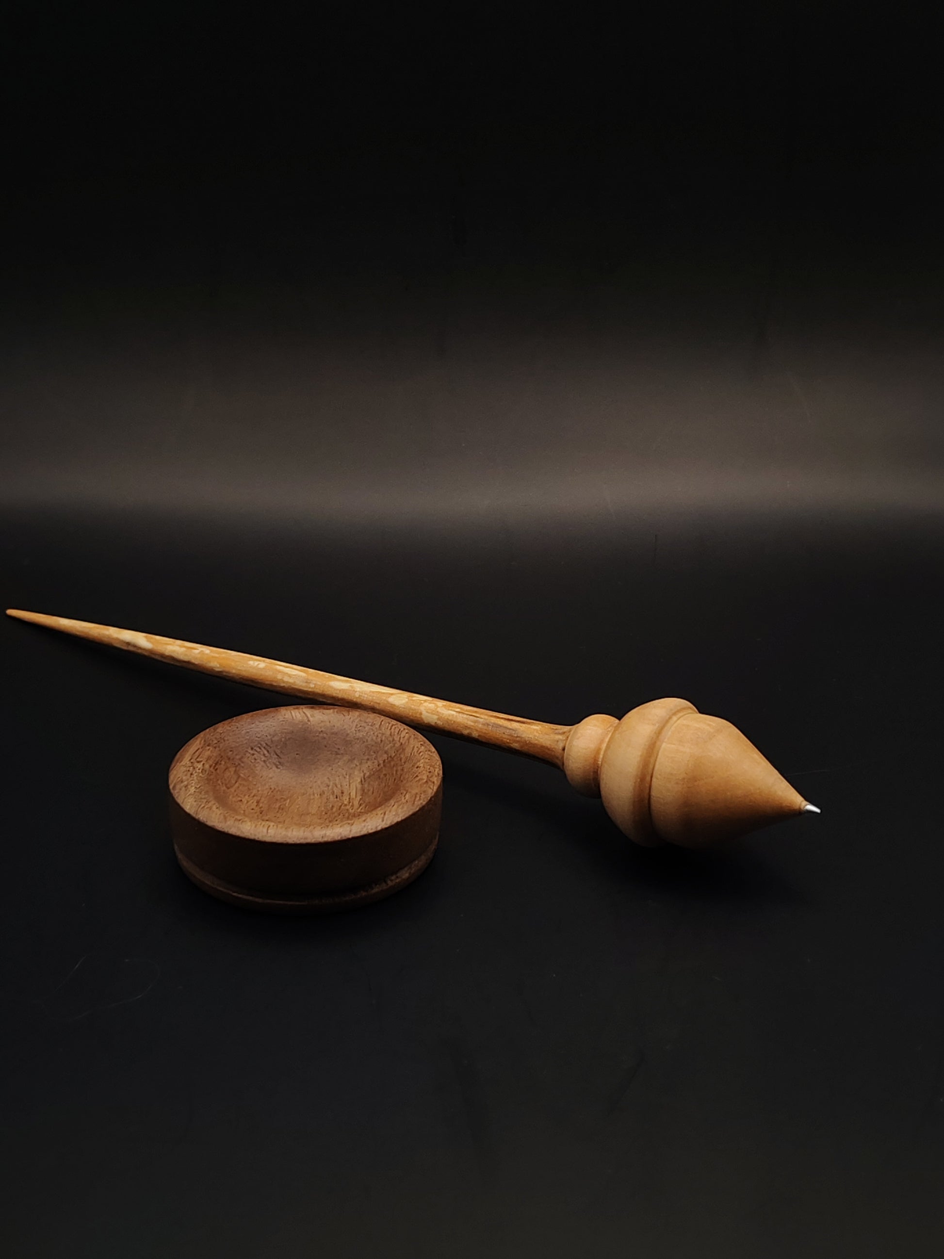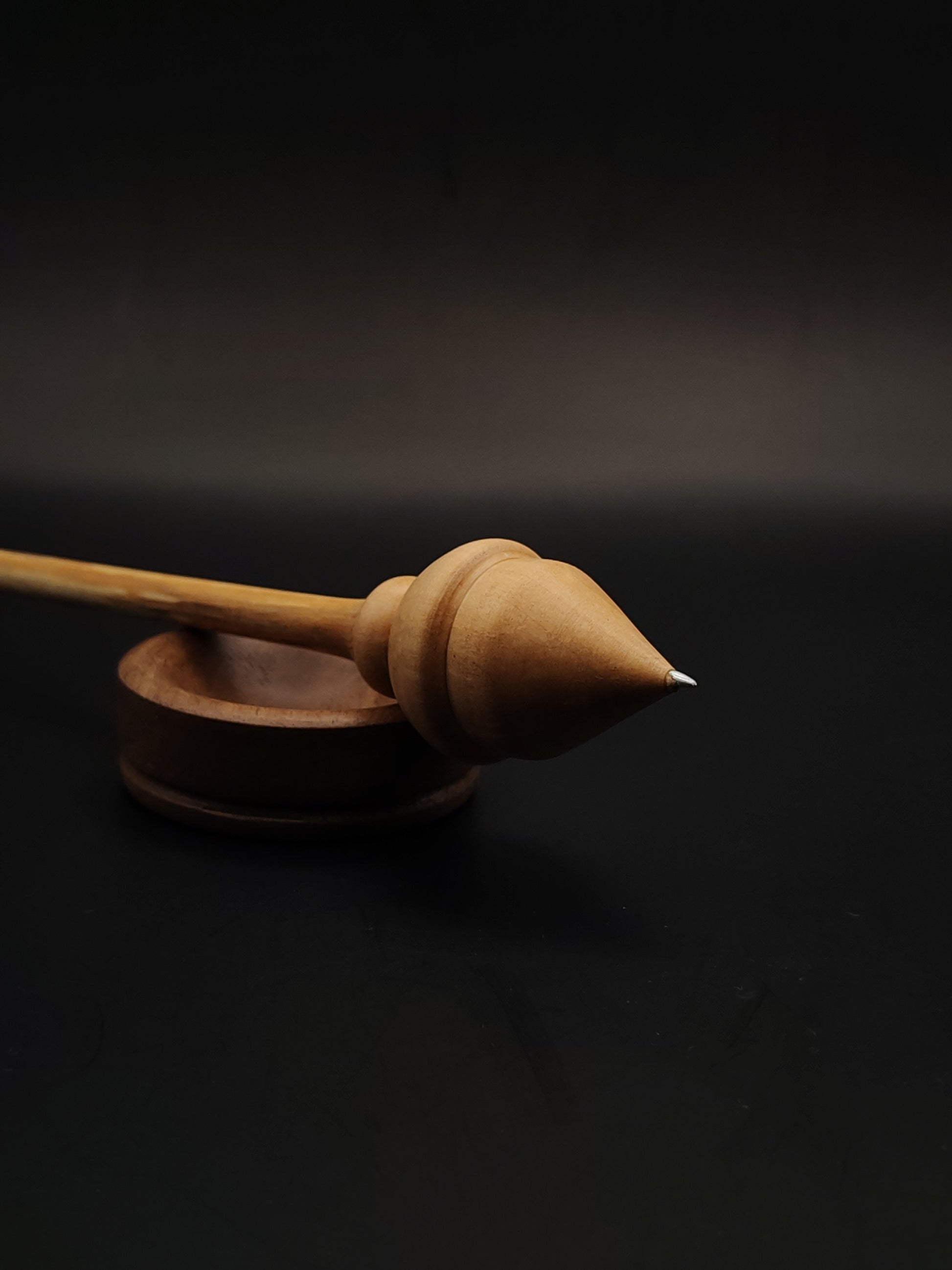 Support spindle: alder shaft, pear whorl, stainless steel tip