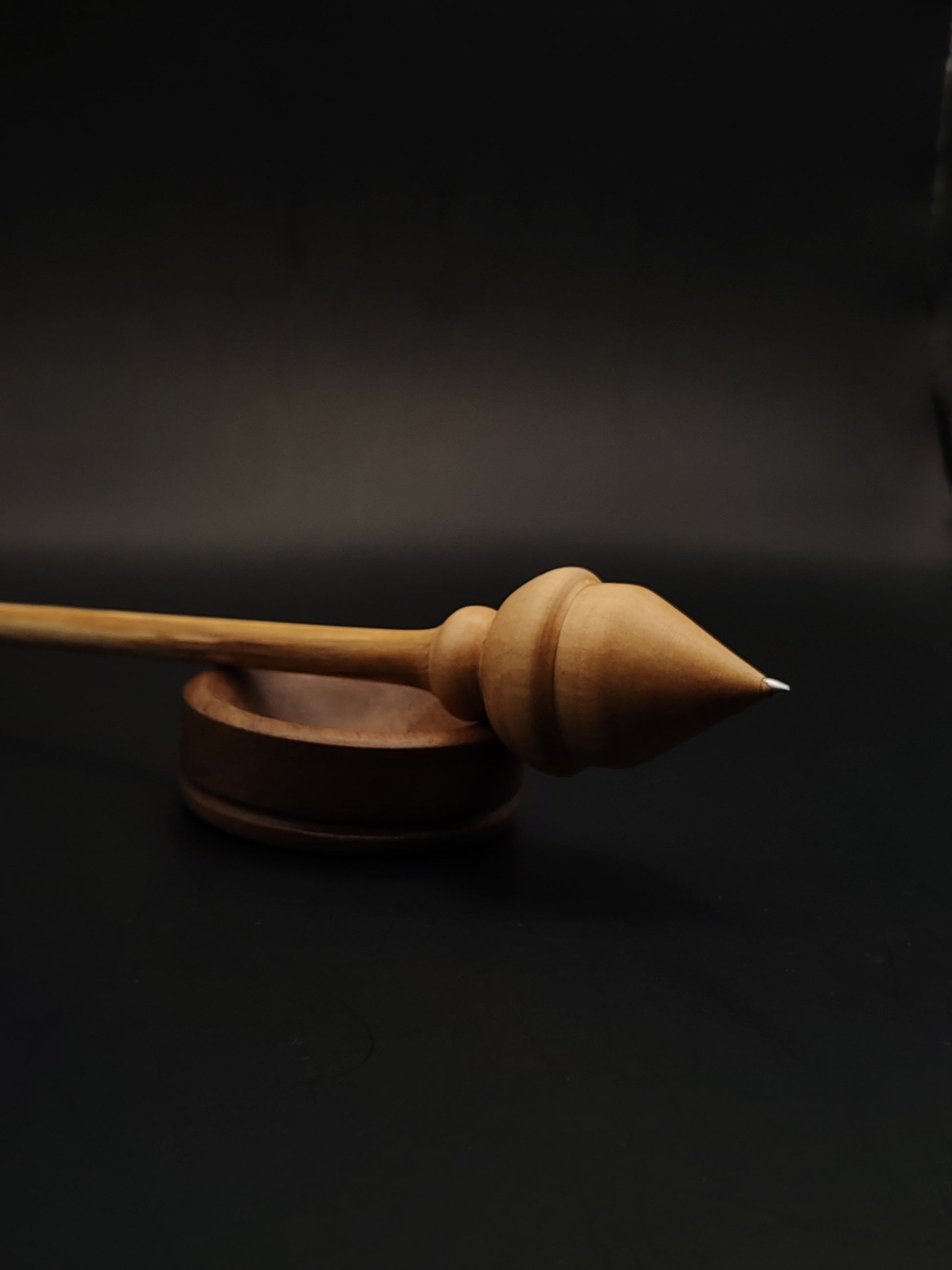Support Spindle – Alder Shaft, Pear Whorl, Metal Tip – 13g / 0.46oz, 22cm / 8.66in – With Walnut Support Bowl | Lightweight Precision Spindle for Supported Spinning | Kravelli Spindles
