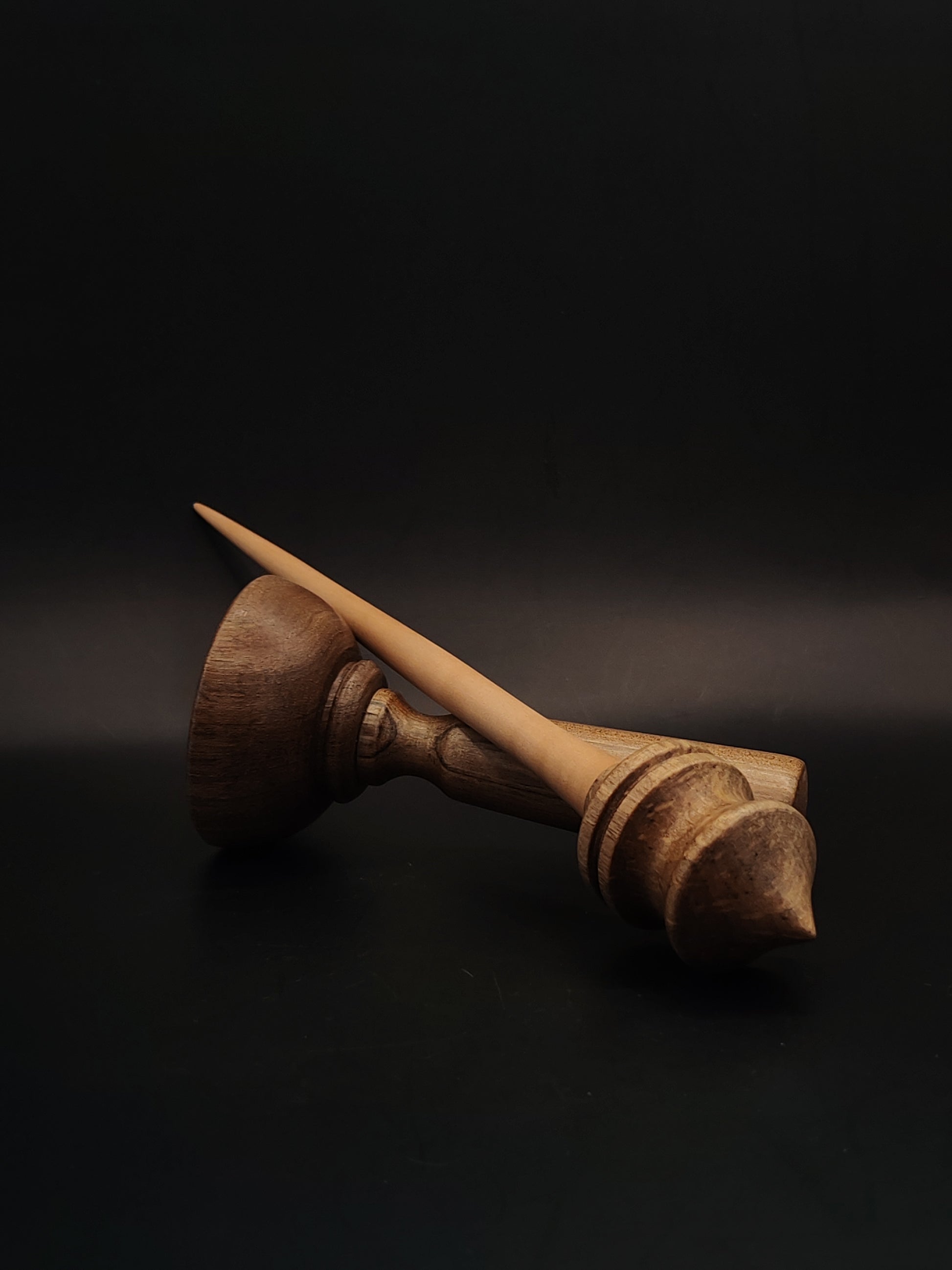 Support Spindle – Apple Shaft & Aged Walnut Whorl, 24 cm / 9.4″, 25 g + Lap Bowl