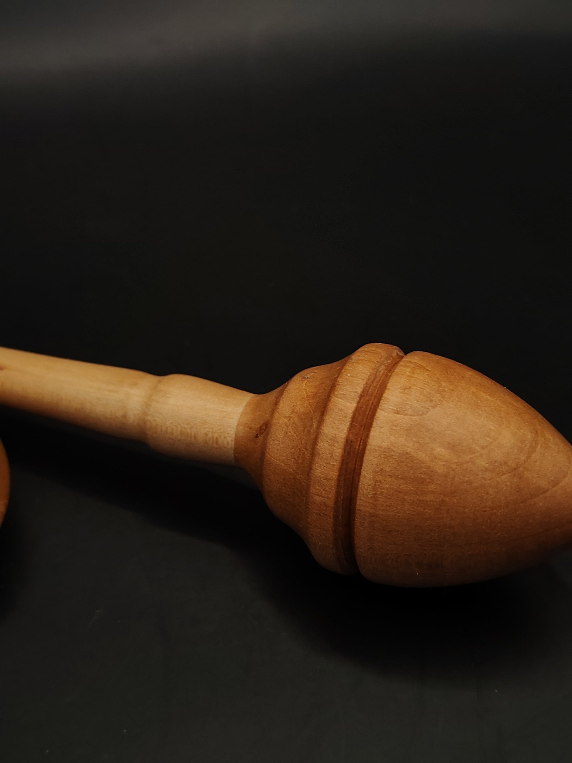 Apple wood brings warmth and responsiveness to the shaft, while pear adds smooth density and balance at the whorl. The sycamore bowl provides a clean, gentle spinning surface that complements the spindle’s weight and feel.