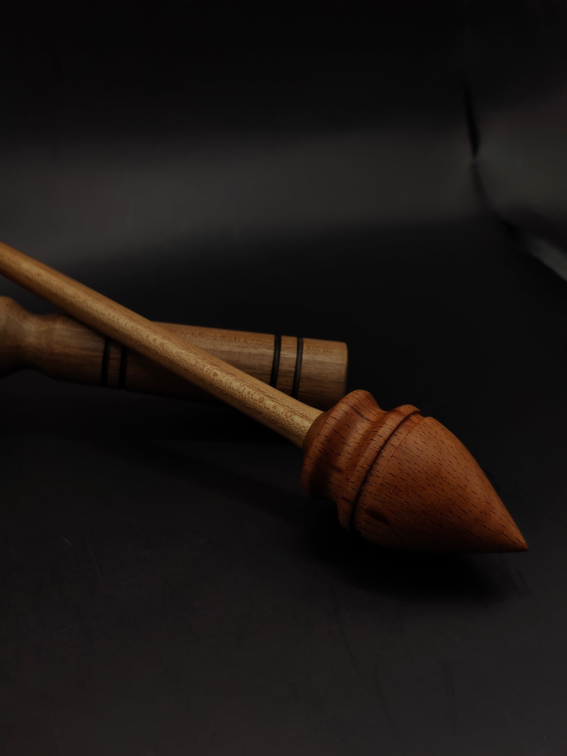At 28 grams, this spindle provides excellent momentum, making it ideal for medium to heavier yarns, longwools, alpaca blends, and relaxed plying. The 25.5 cm (10″) length offers confident control and steady rotation, supporting long drafting and slow, powerful spins.