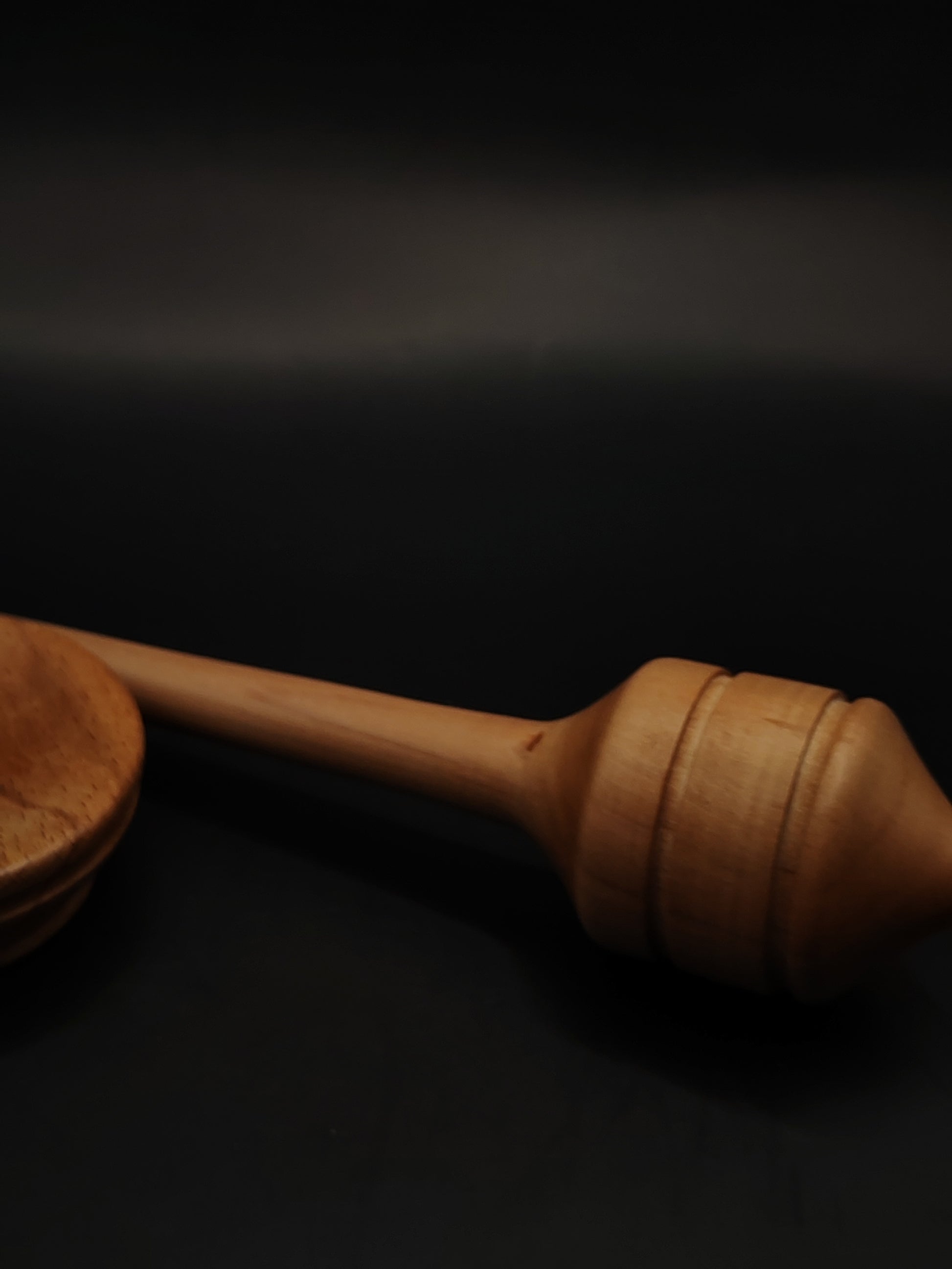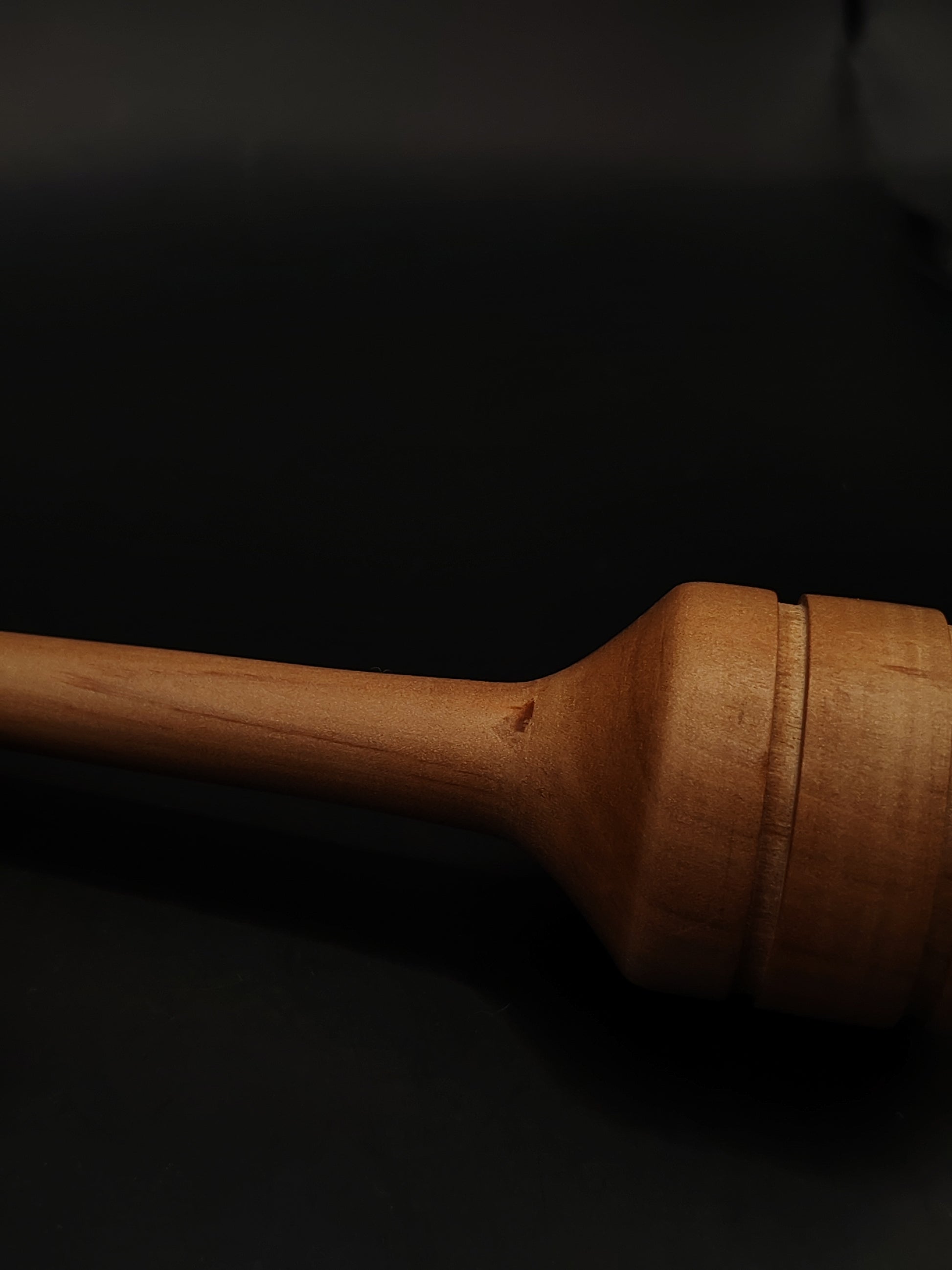 At 35 grams, this spindle offers excellent inertia, making it ideal for medium to heavy yarns, longwools, alpaca blends, rustic fibers, and comfortable plying. The 27 cm (10.6″) length provides steady reach and a stable spin path, supporting slow, powerful rotations.