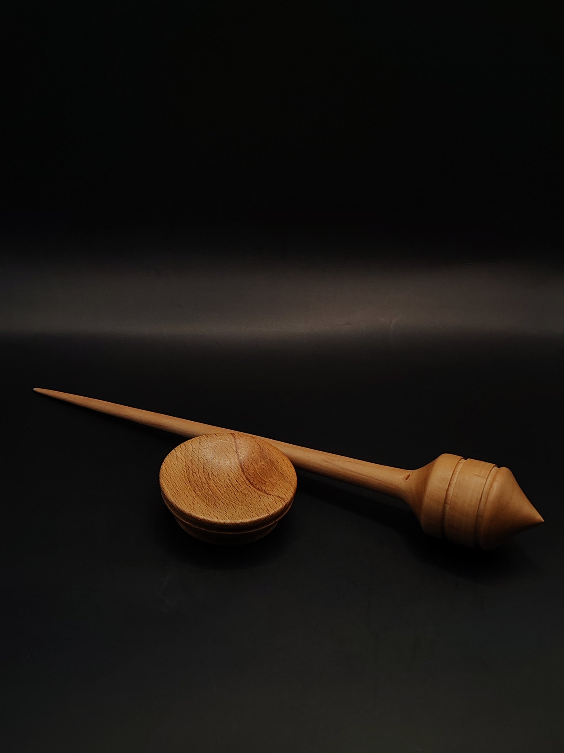 Bold, powerful, and visually distinctive, this artisan red support spindle set is designed for spinners who enjoy strong momentum and confident control. Both the spindle and the matching support bowl are crafted from red-toned wood, creating a cohesive and striking set.