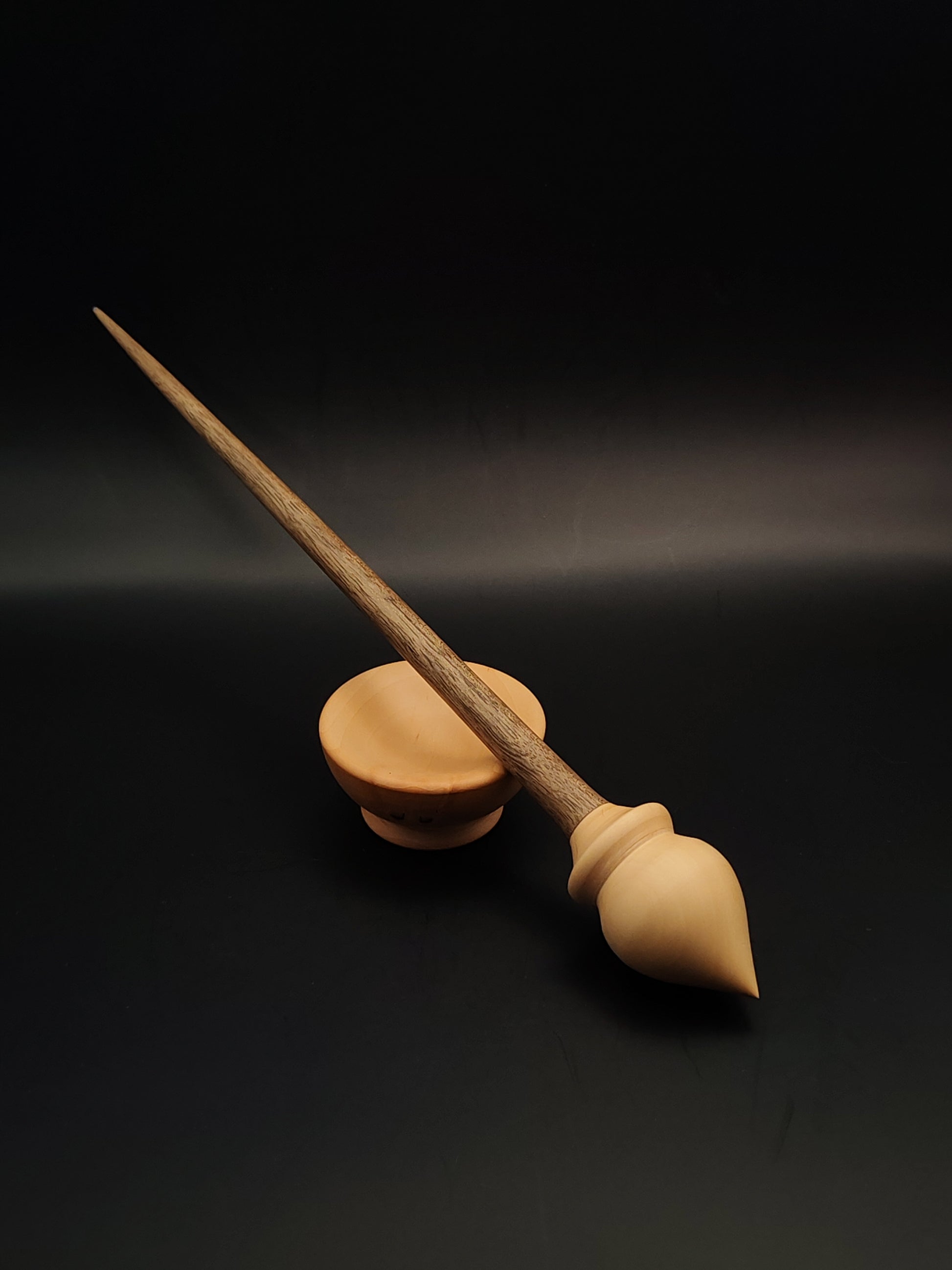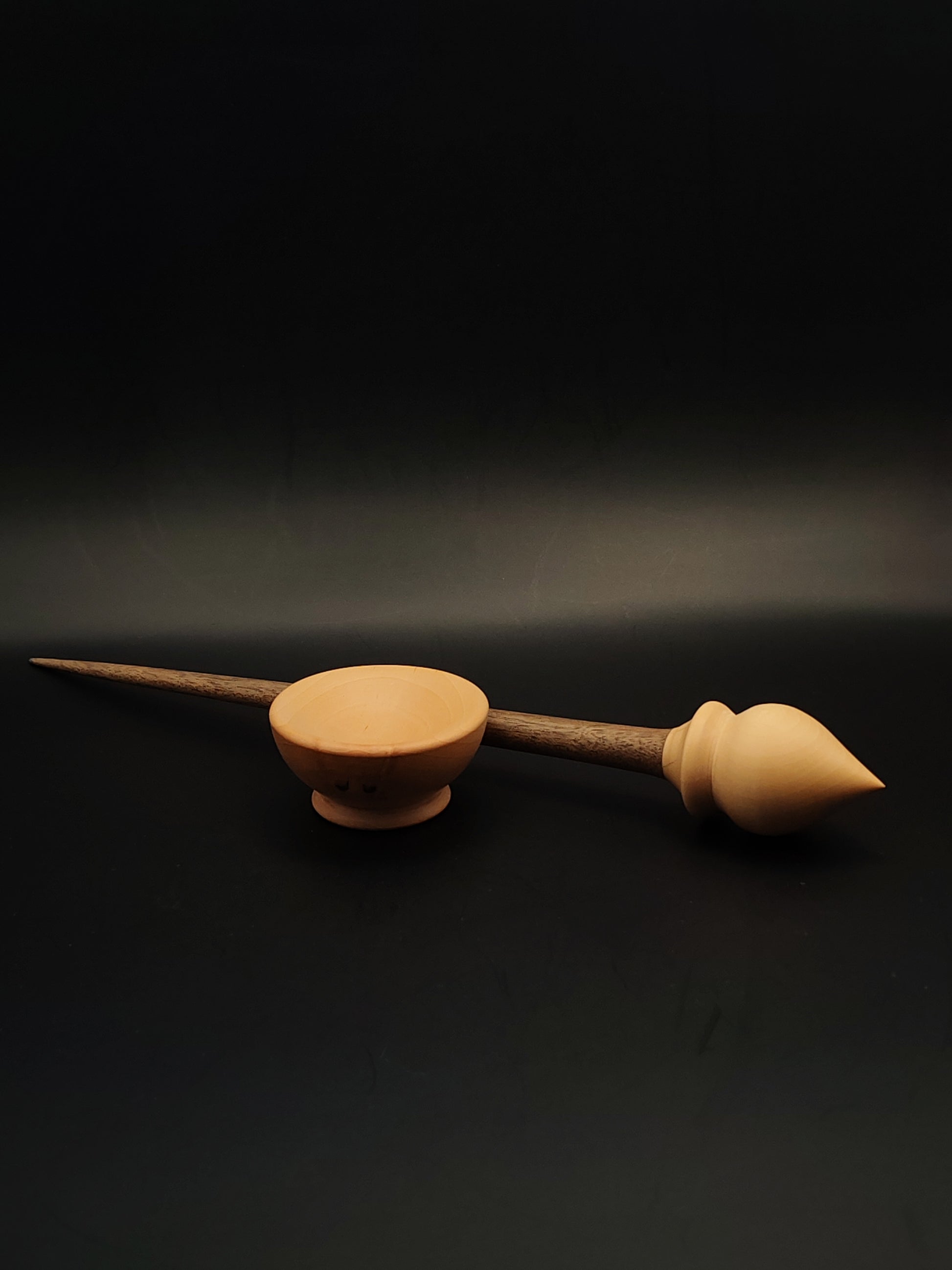 Support Spindle Set – Pear Whorl & Walnut Shaft – 24g / 0.85oz, 27cm / 10.62in – With Pear Support Bowl | Organic Wax Finish | Kravelli Spindles