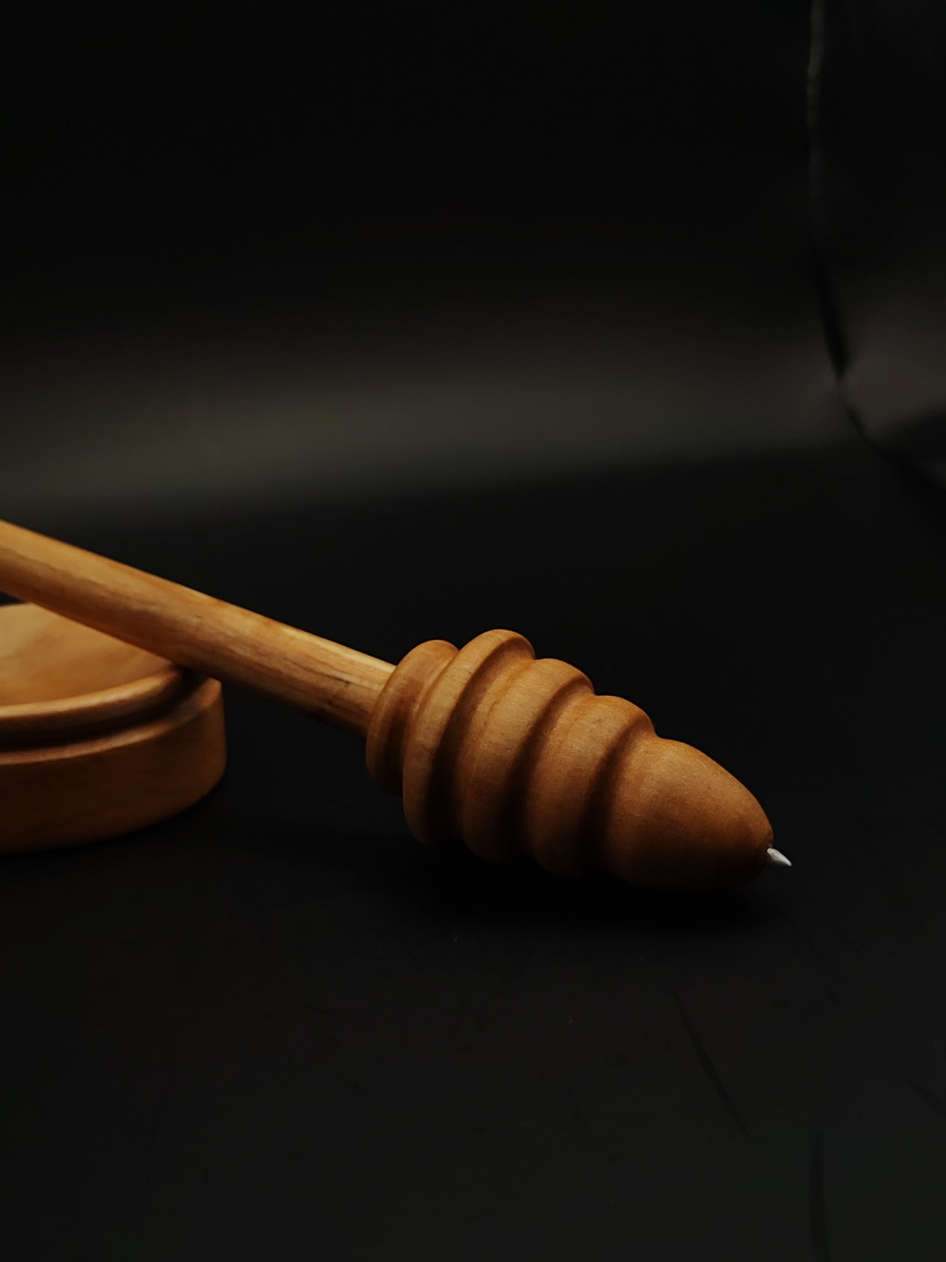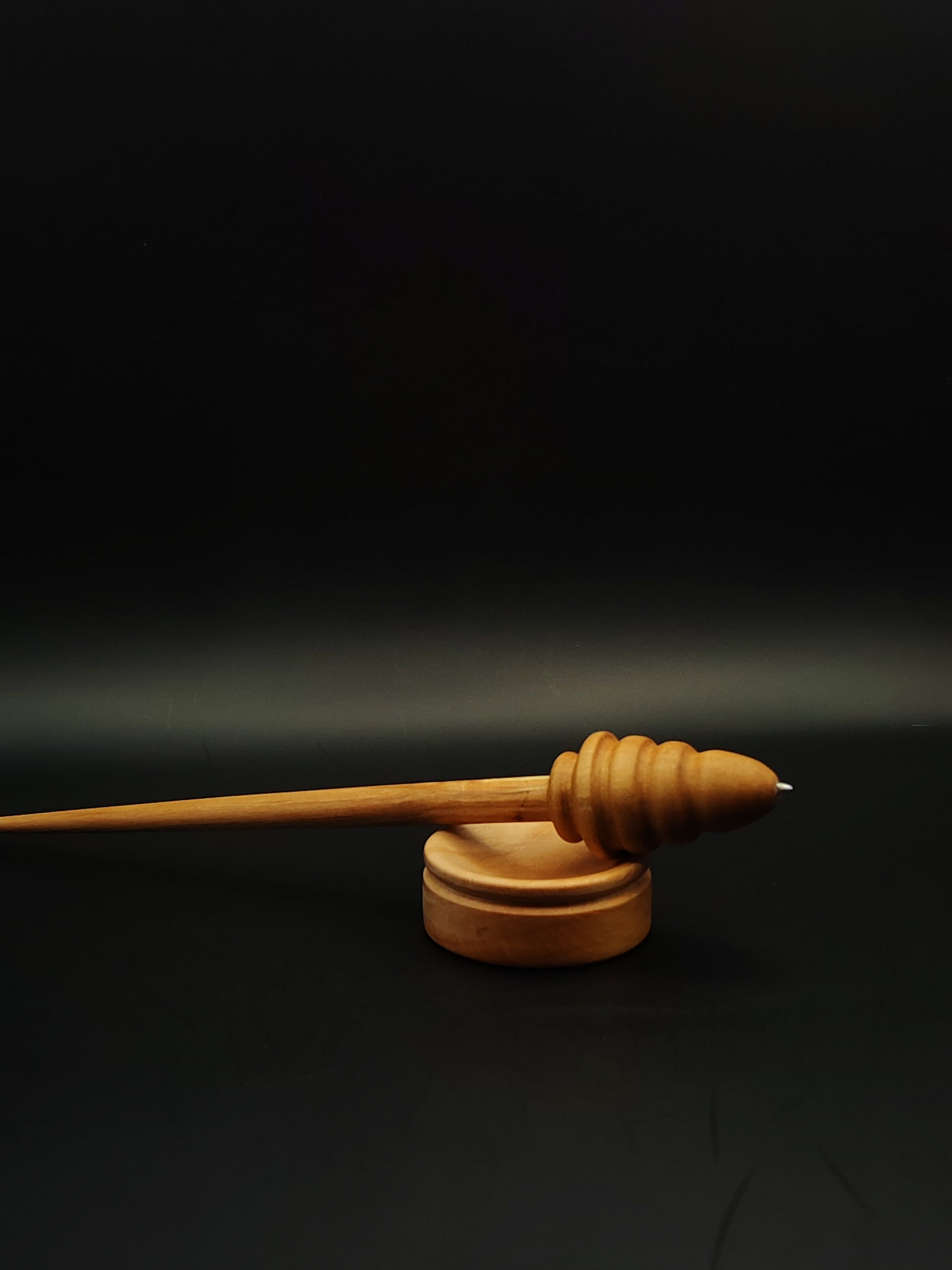 The metal tip adds a touch of modern utility to this otherwise fully wooden, hand-turned tool – ideal for spinners who seek lasting performance and unique design.