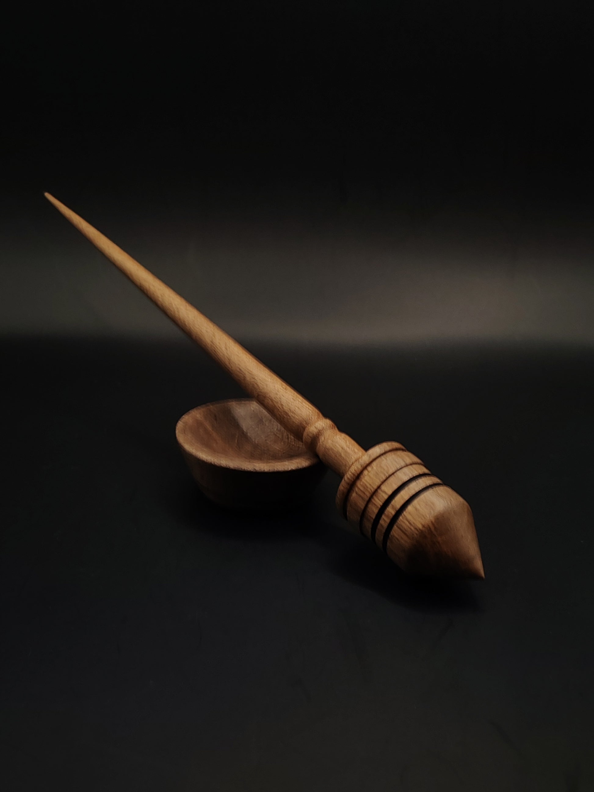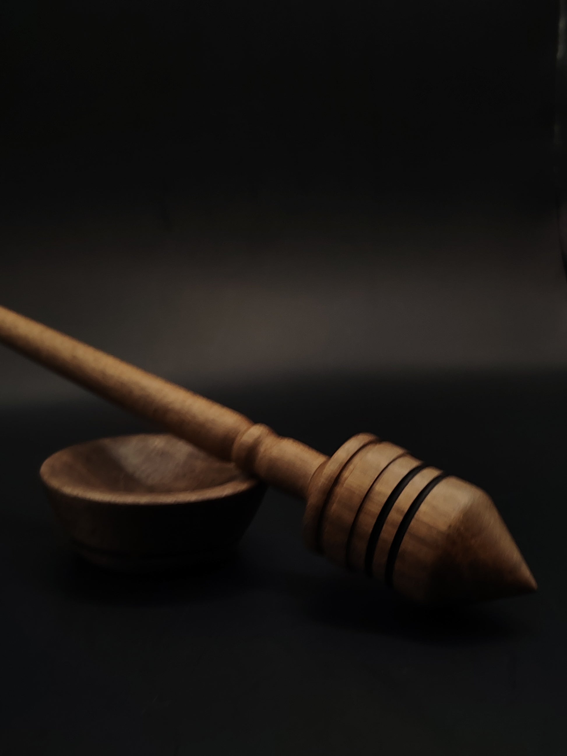 The set includes a matching walnut support bowl, ensuring a cohesive look and a stable base that complements the spindle’s graceful design. The natural walnut grain lends both elegance and durability to this pairing, offering a timeless tool for your spinning journey.