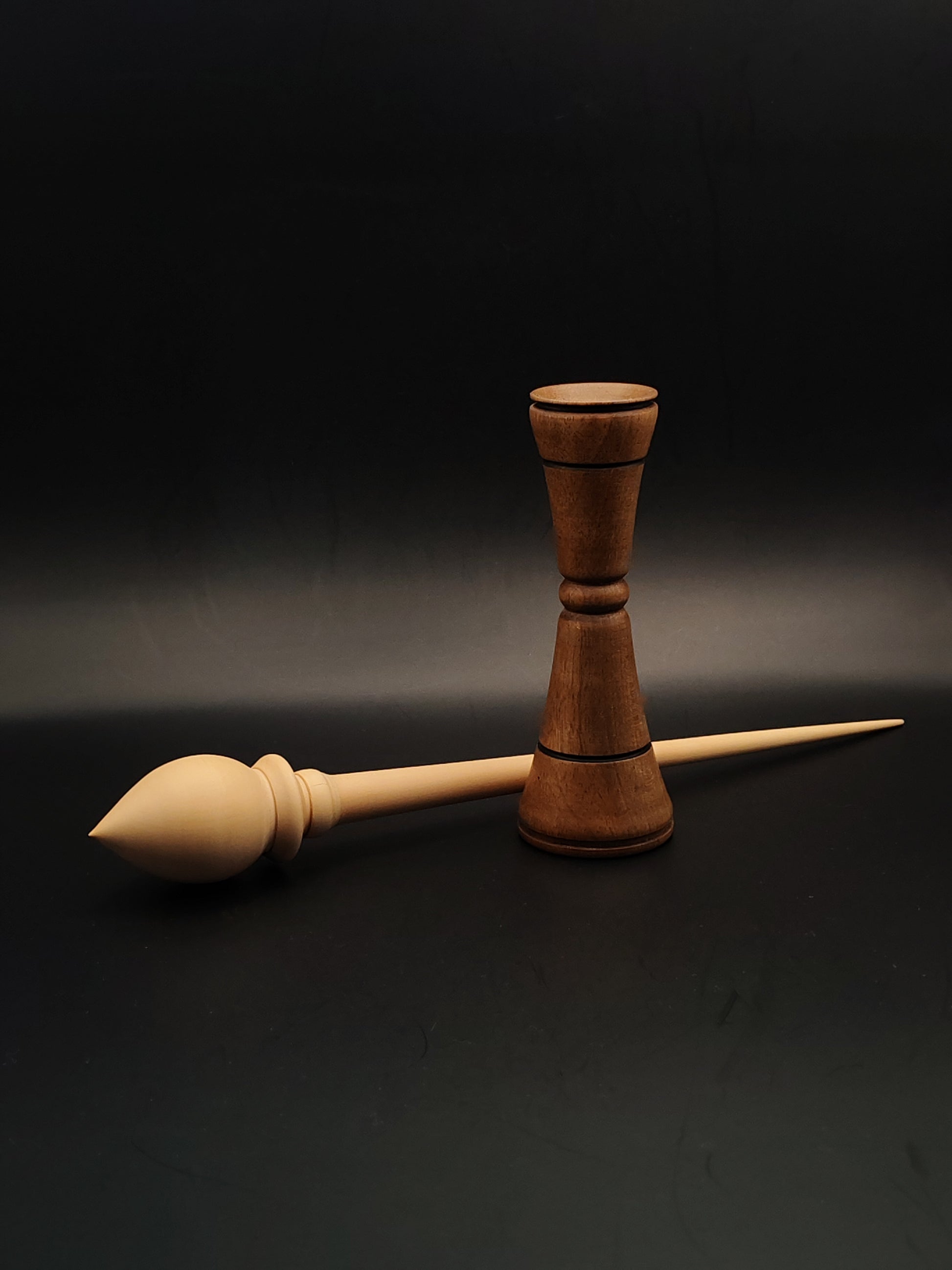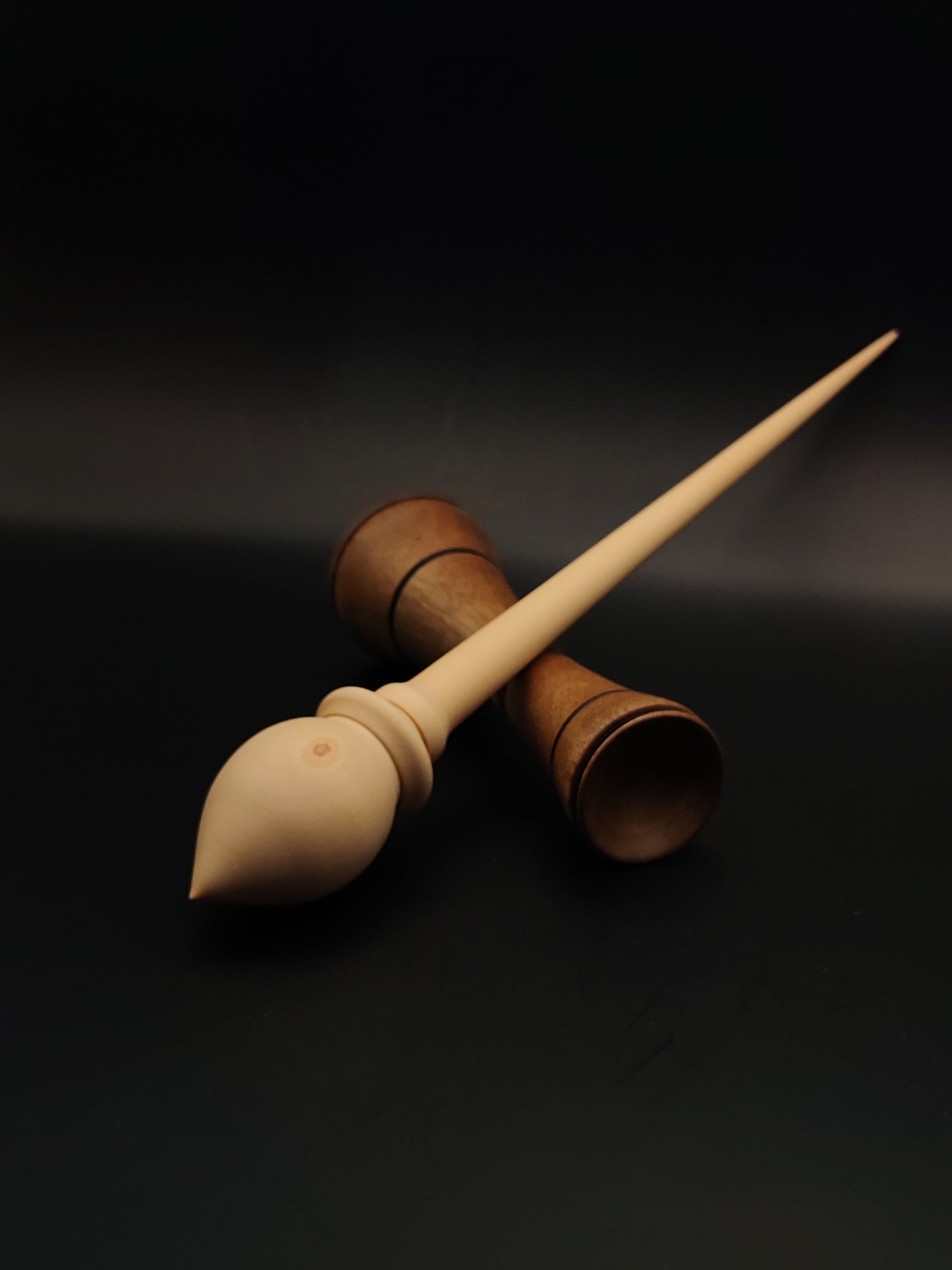 Support Spindle Set – White Pear (Panta) Wood – 33g / 1.16oz, 28.5cm / 11.22in – With Walnut Lap Support Bowl | Organic Wax Finish | Kravelli Spindles