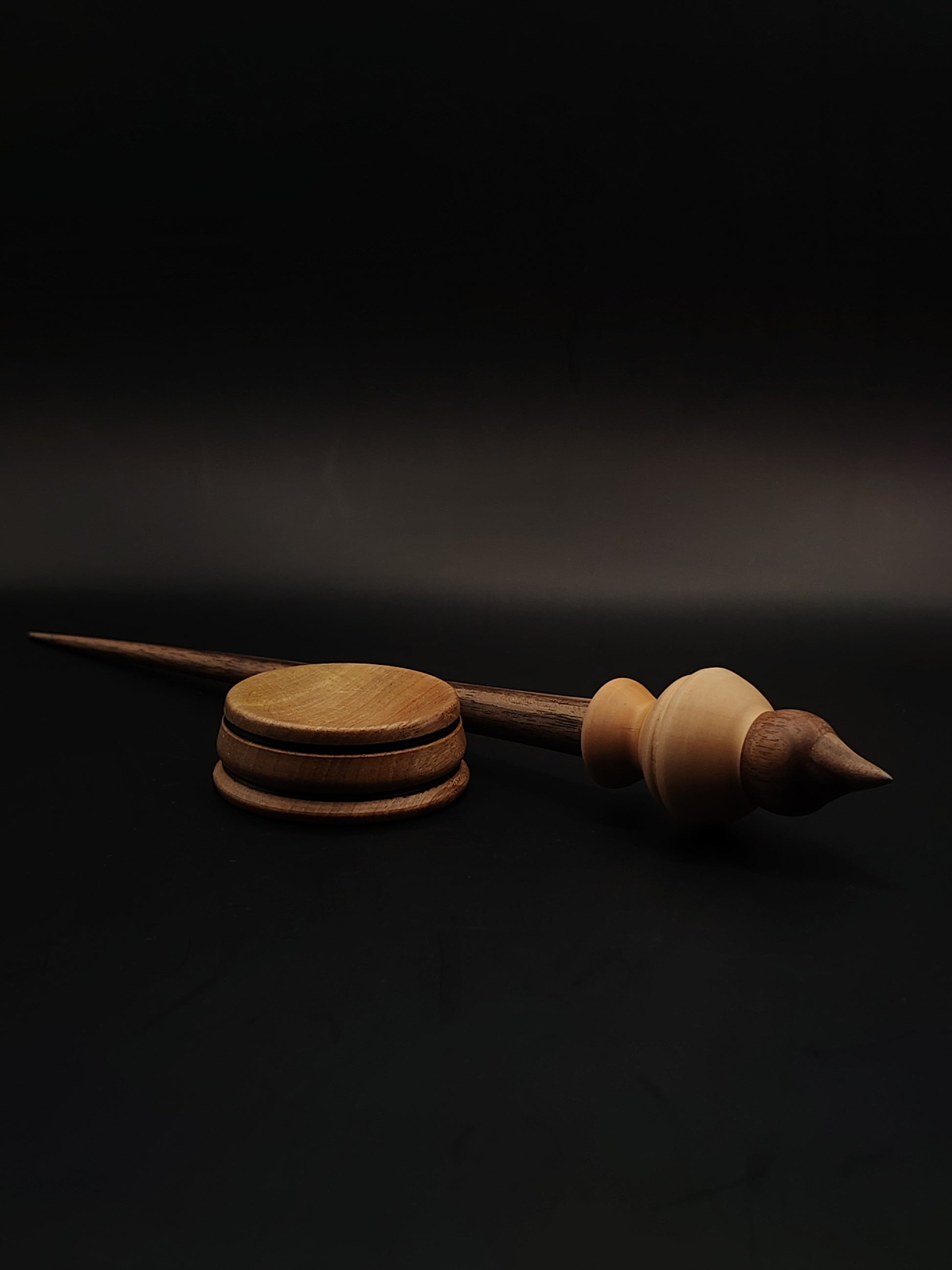 Walnut & Apple Support Spindle Set with Bowl | 27cm, 25g | Handcrafted Spinning Tool