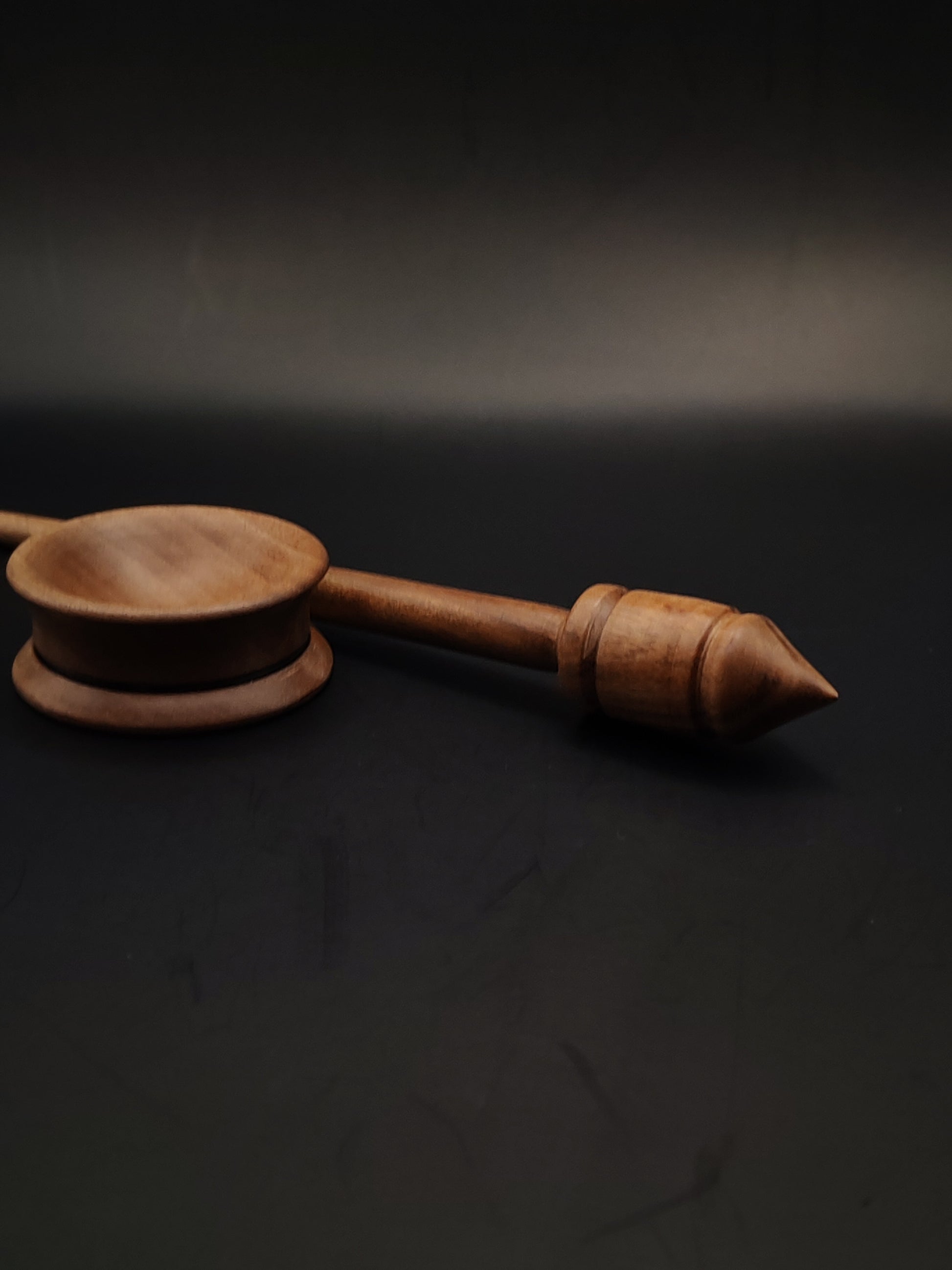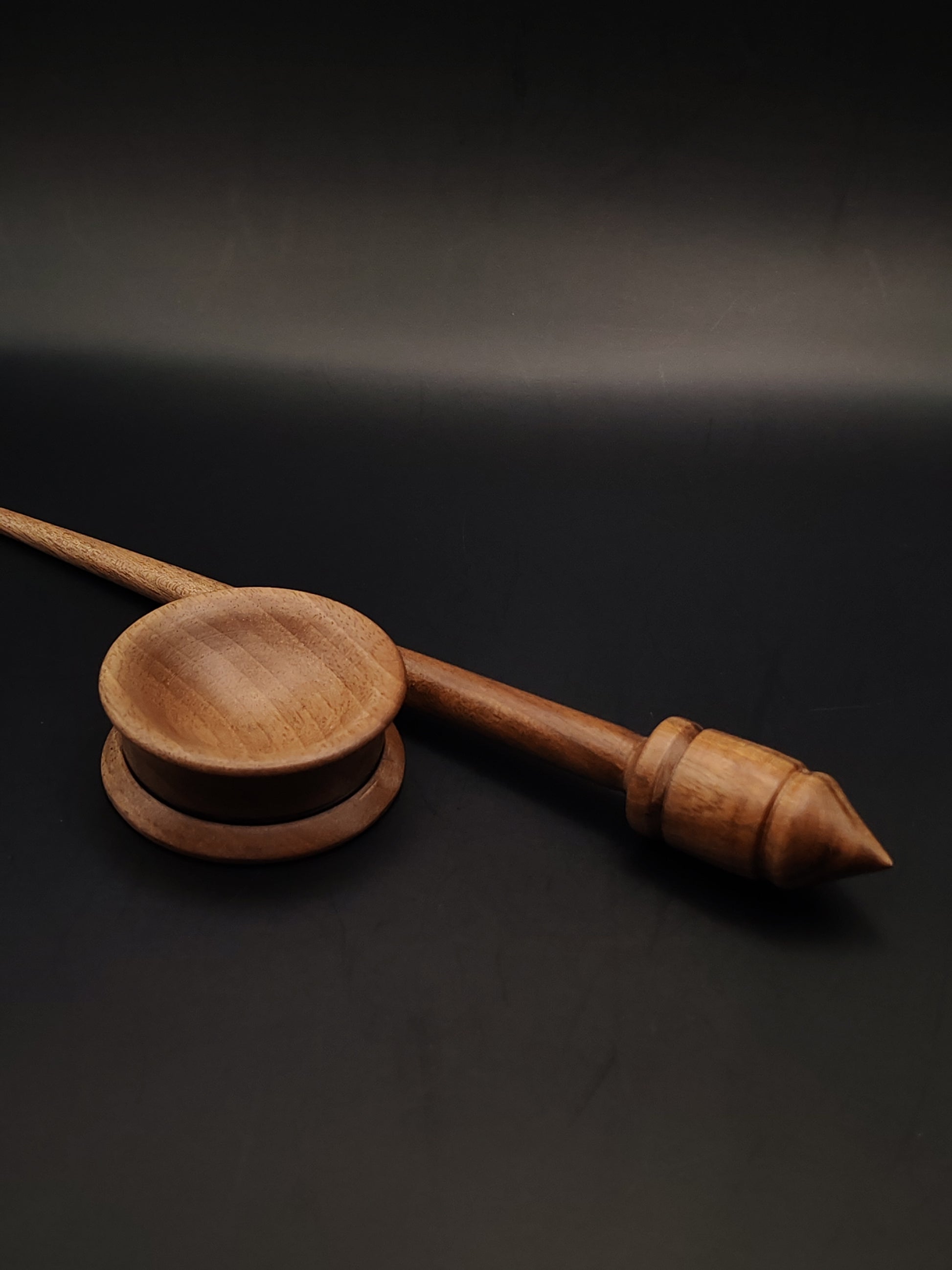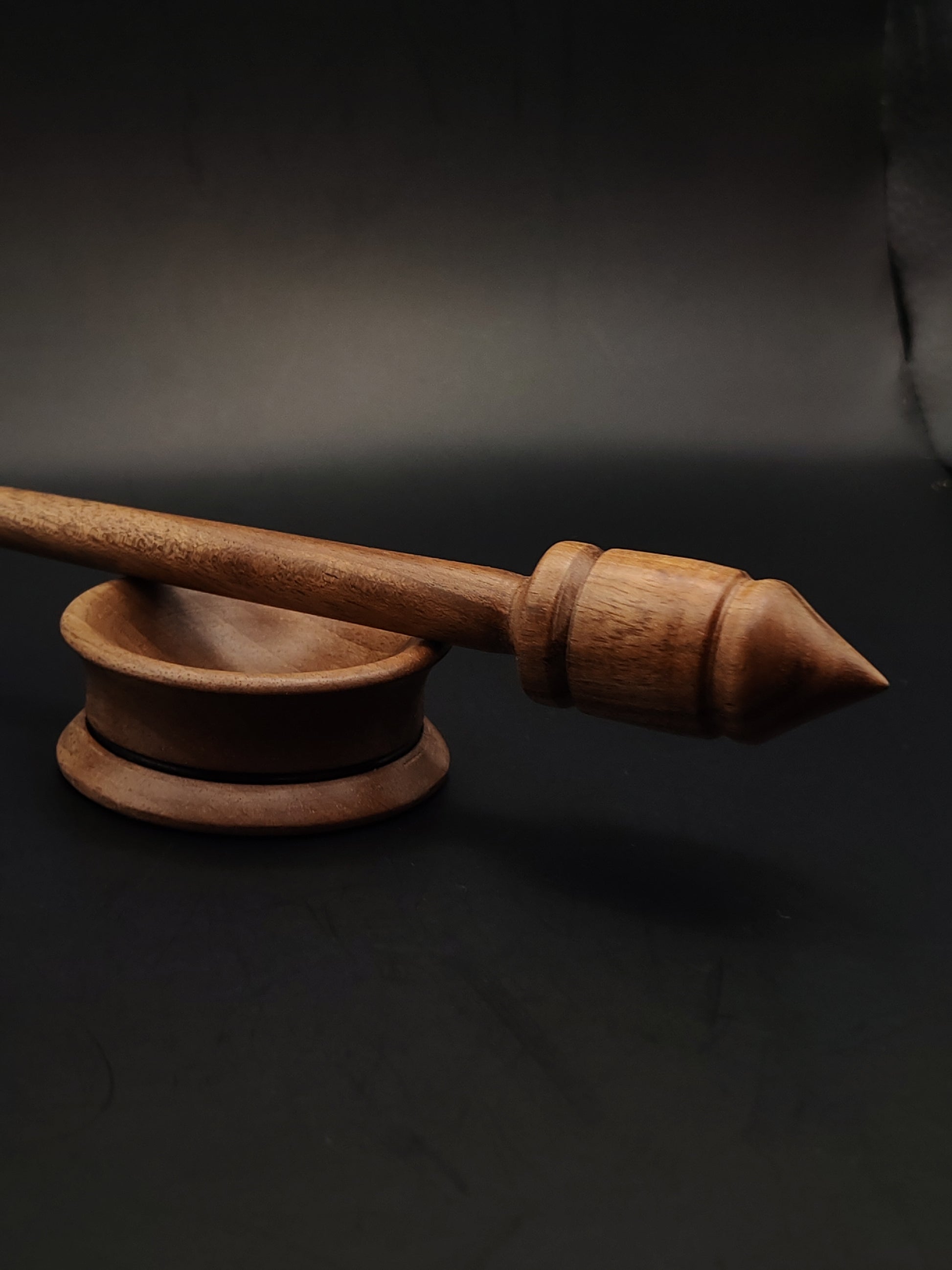 Walnut Support Spindle Set – 18g / 0.63oz, 25cm / 9.84in – With Walnut Support Bowl | Lightweight Spindle for Supported Spinning | Kravelli Spindles