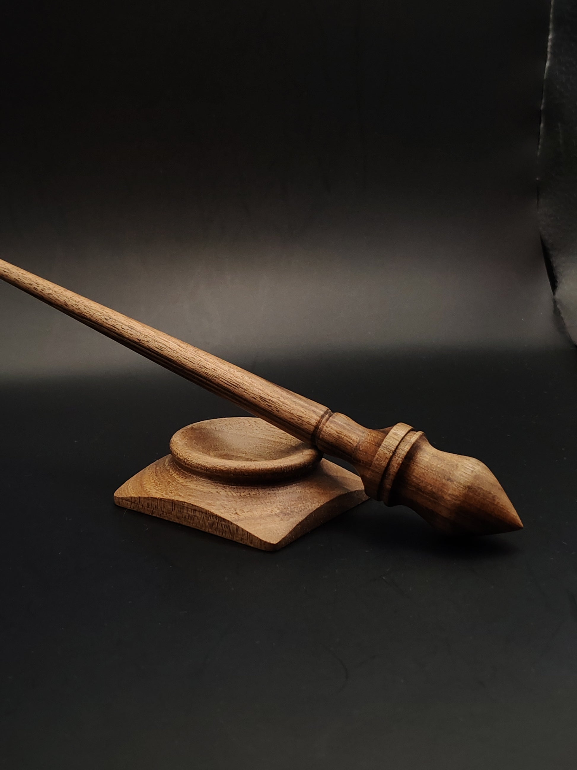 Walnut Support Spindle Set – 21g / 0.74oz, 25cm / 9.84in – With Matching Walnut Support Bowl | Organic Wax Finish | Kravelli Spindles