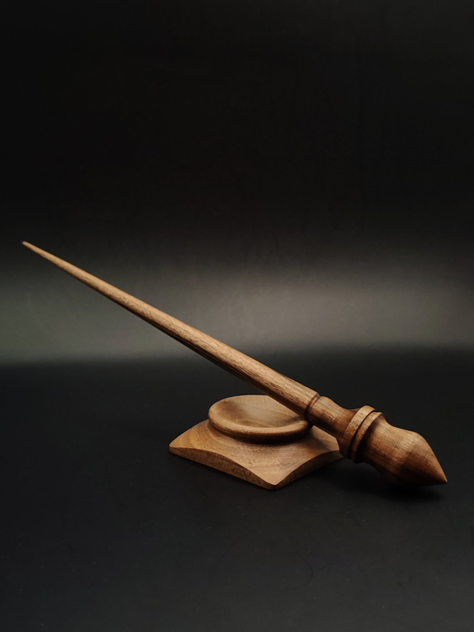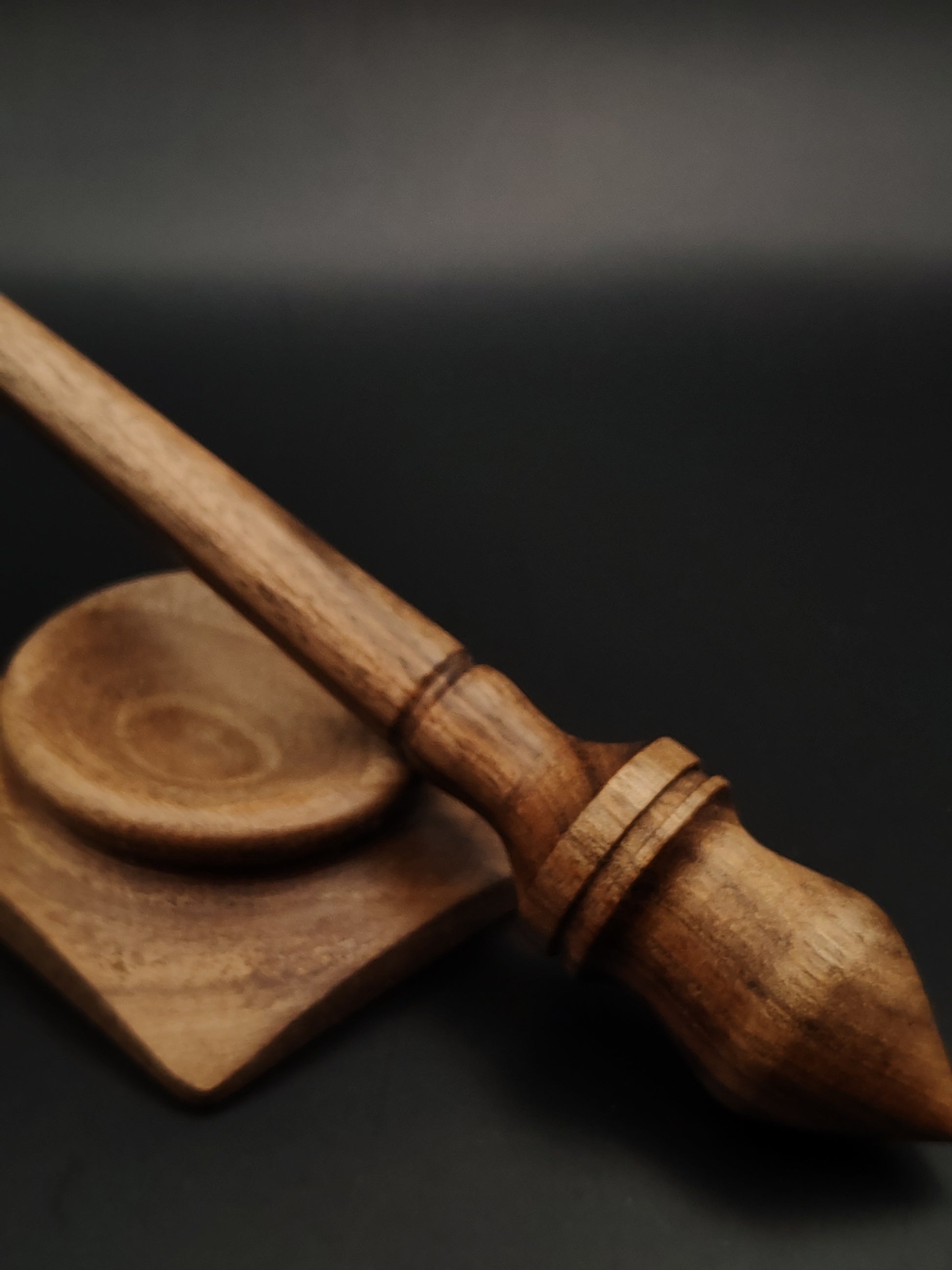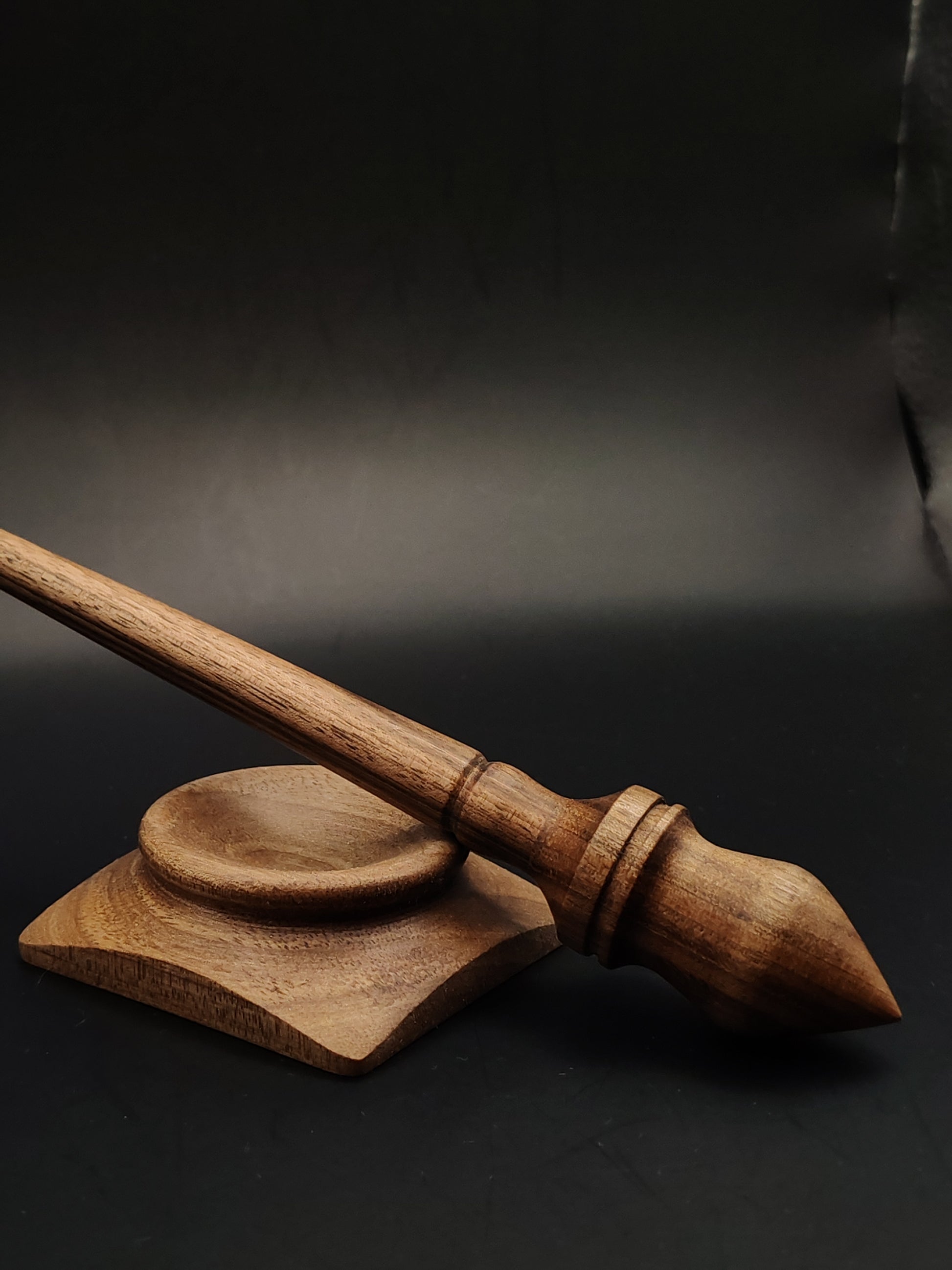 This Walnut Support Spindle Set is a balanced, medium-weight tool ideal for spinners who value smooth, controlled motion and natural materials. Crafted entirely from walnut wood, the spindle weighs 21 grams (0.74 ounces) and measures 25 cm (9.84 inches), offering responsive handling for both fine and medium fibers.