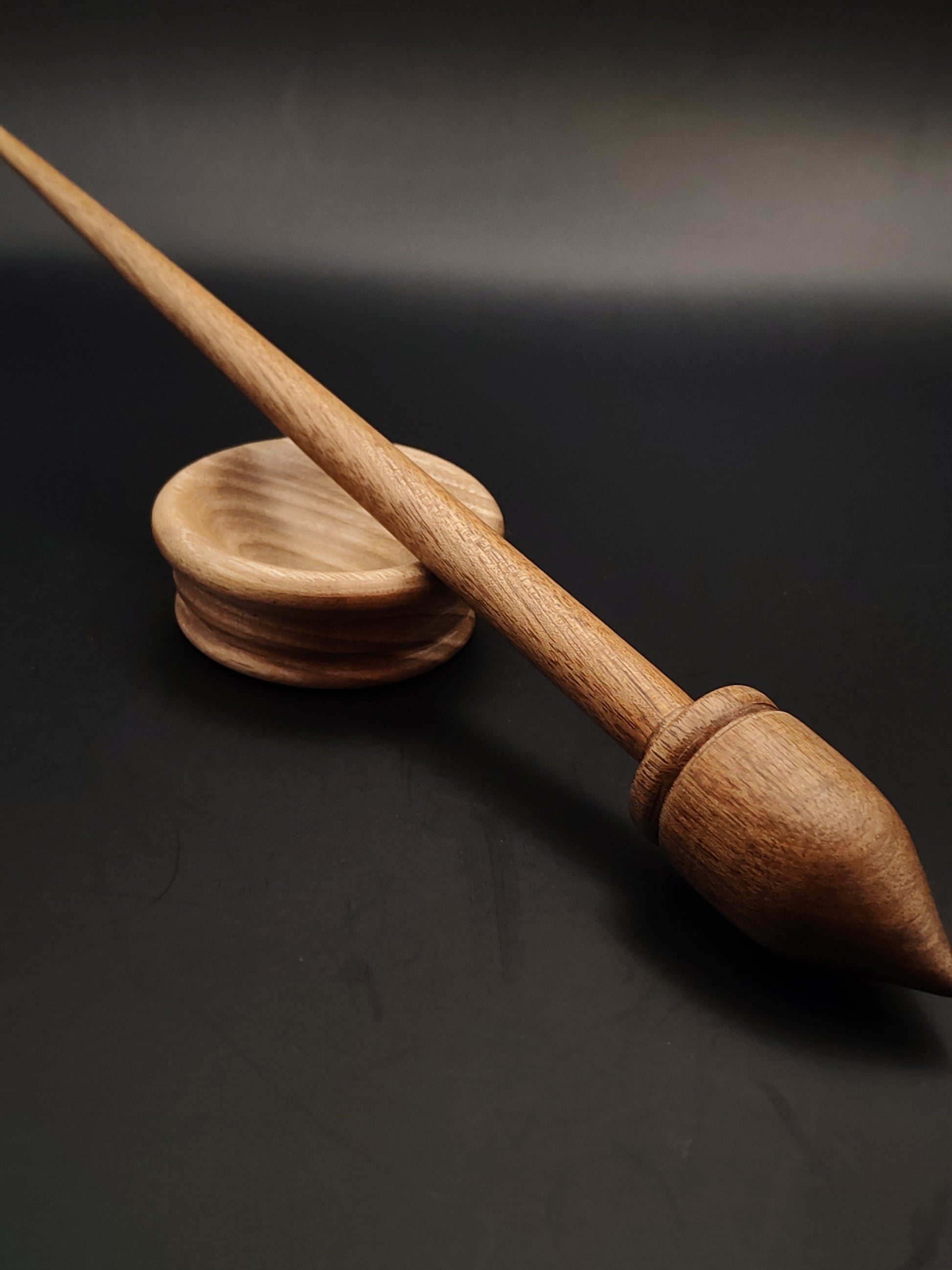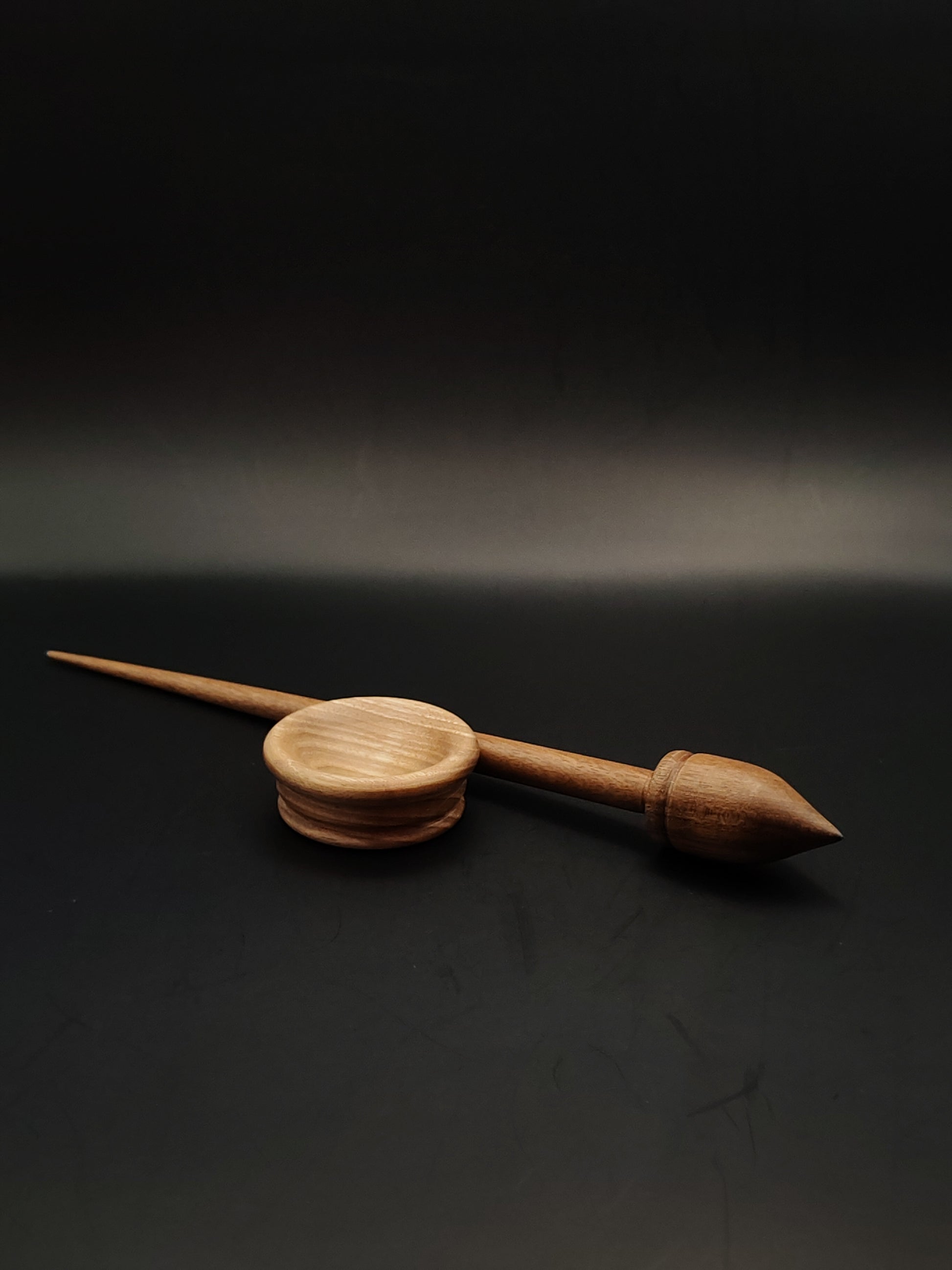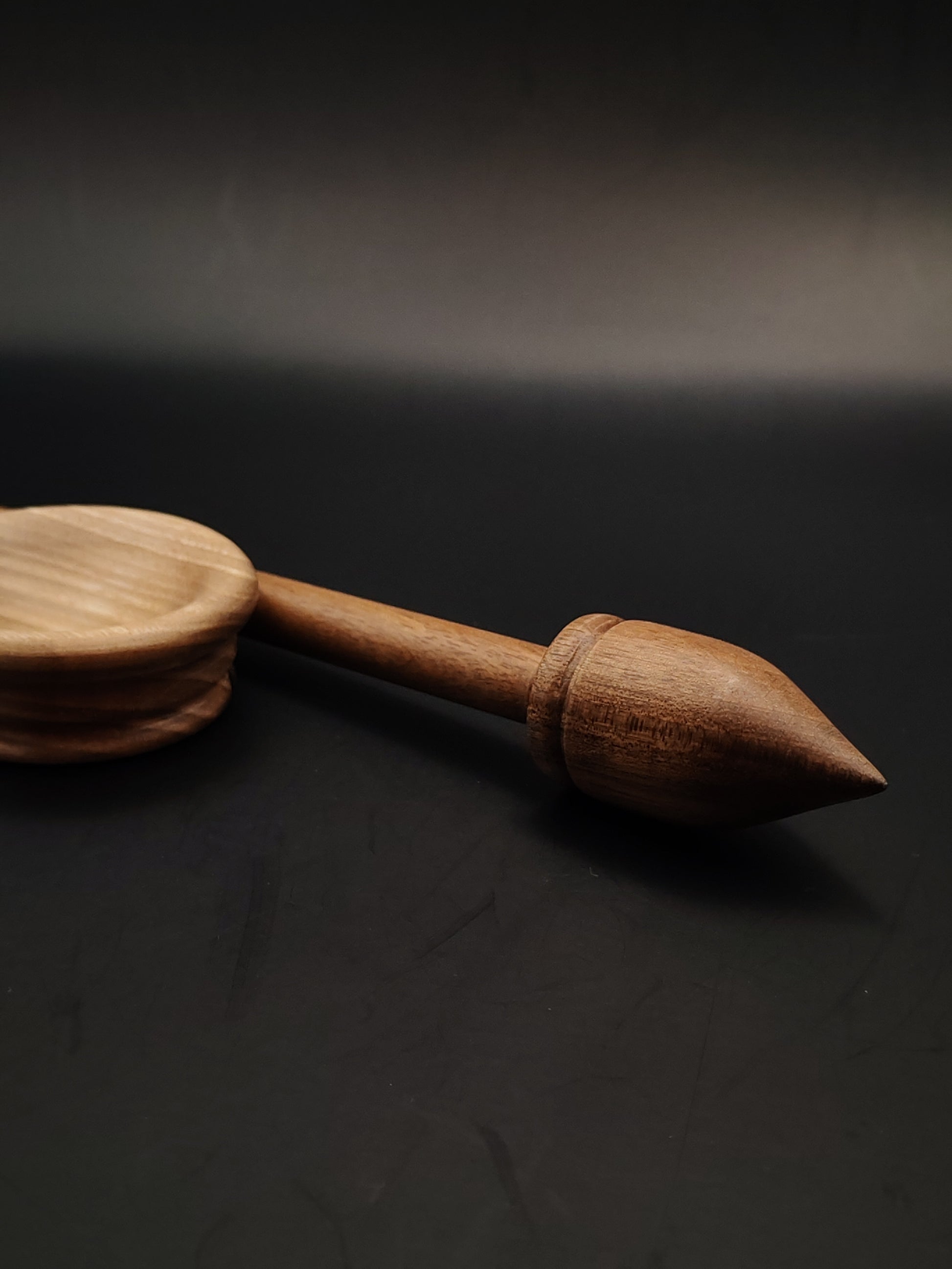 Walnut Support Spindle Set – 21g / 0.74oz, 28cm / 11.02in – With Walnut Support Bowl | Long & Lightweight Spindle for Supported Spinning | Kravelli Spindles