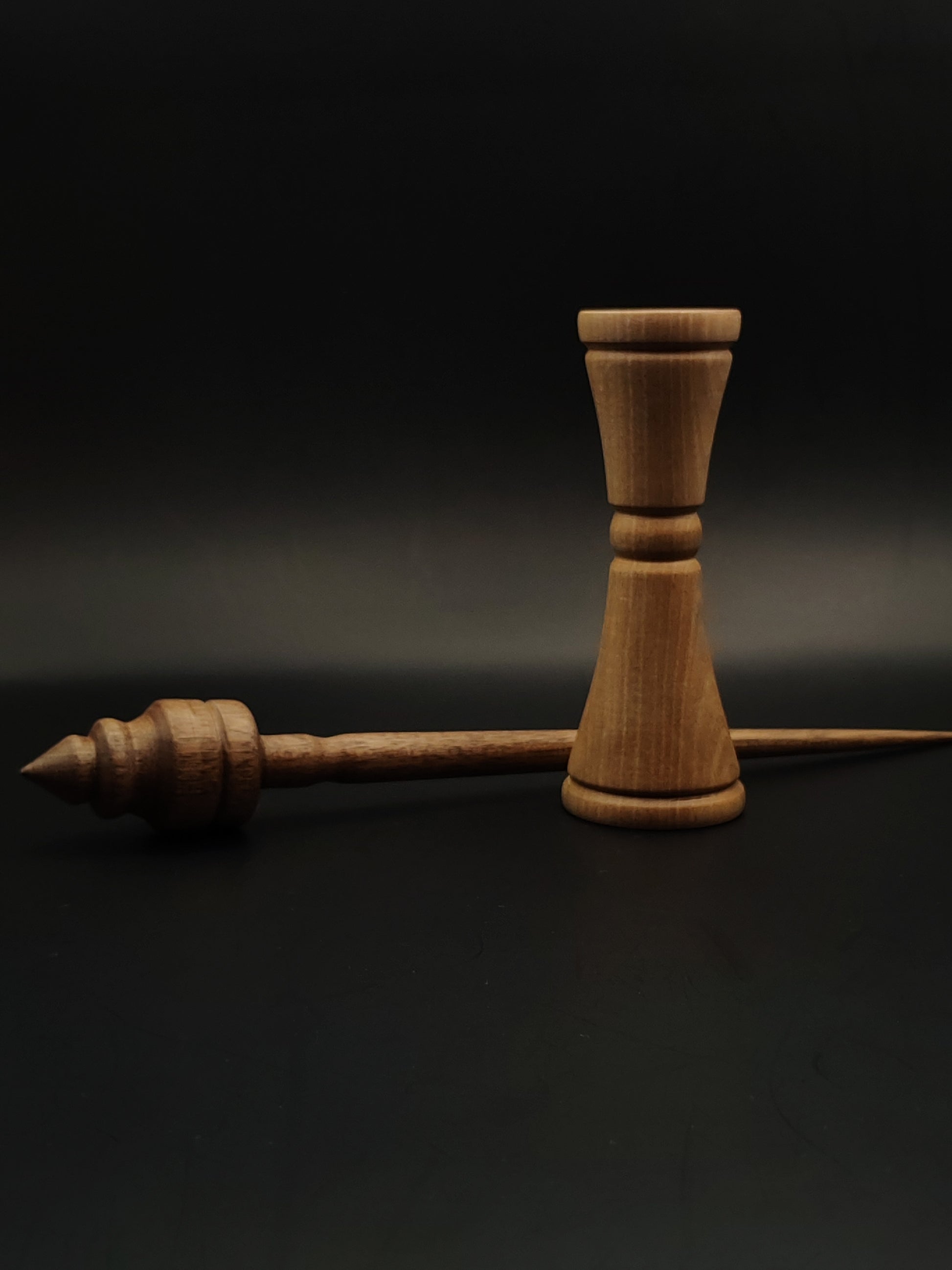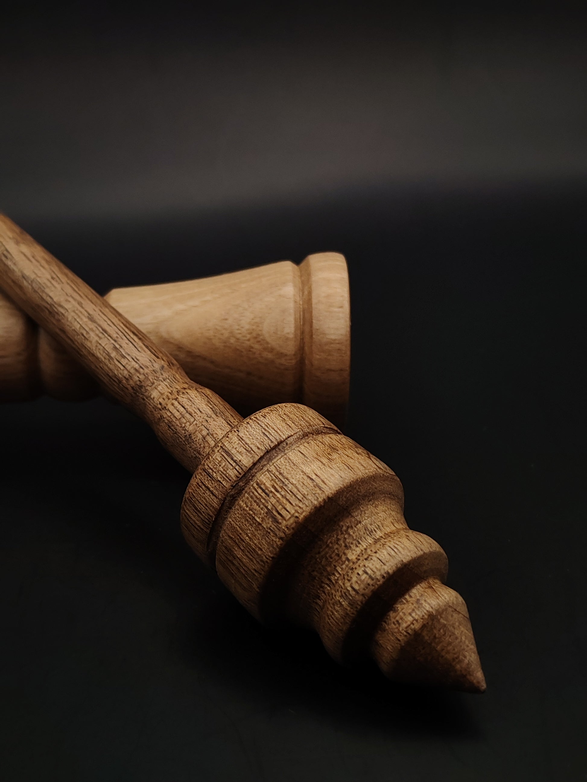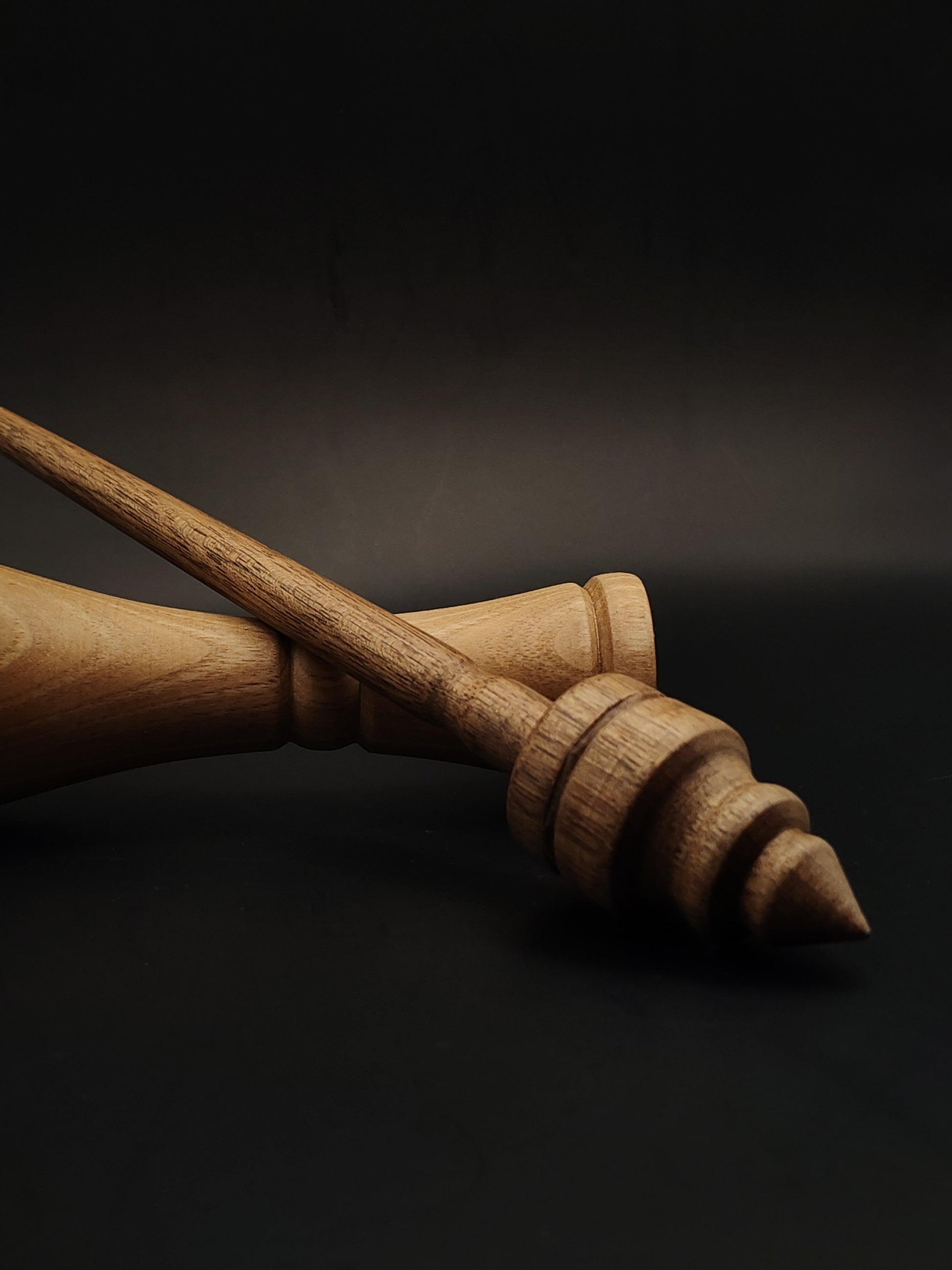 Walnut Support Spindle Set – 22g / 0.77oz, 26cm / 10.23in – With Oak Lap Support Bowl | Medium-Light Spindle for Supported Spinning | Kravelli Spindles