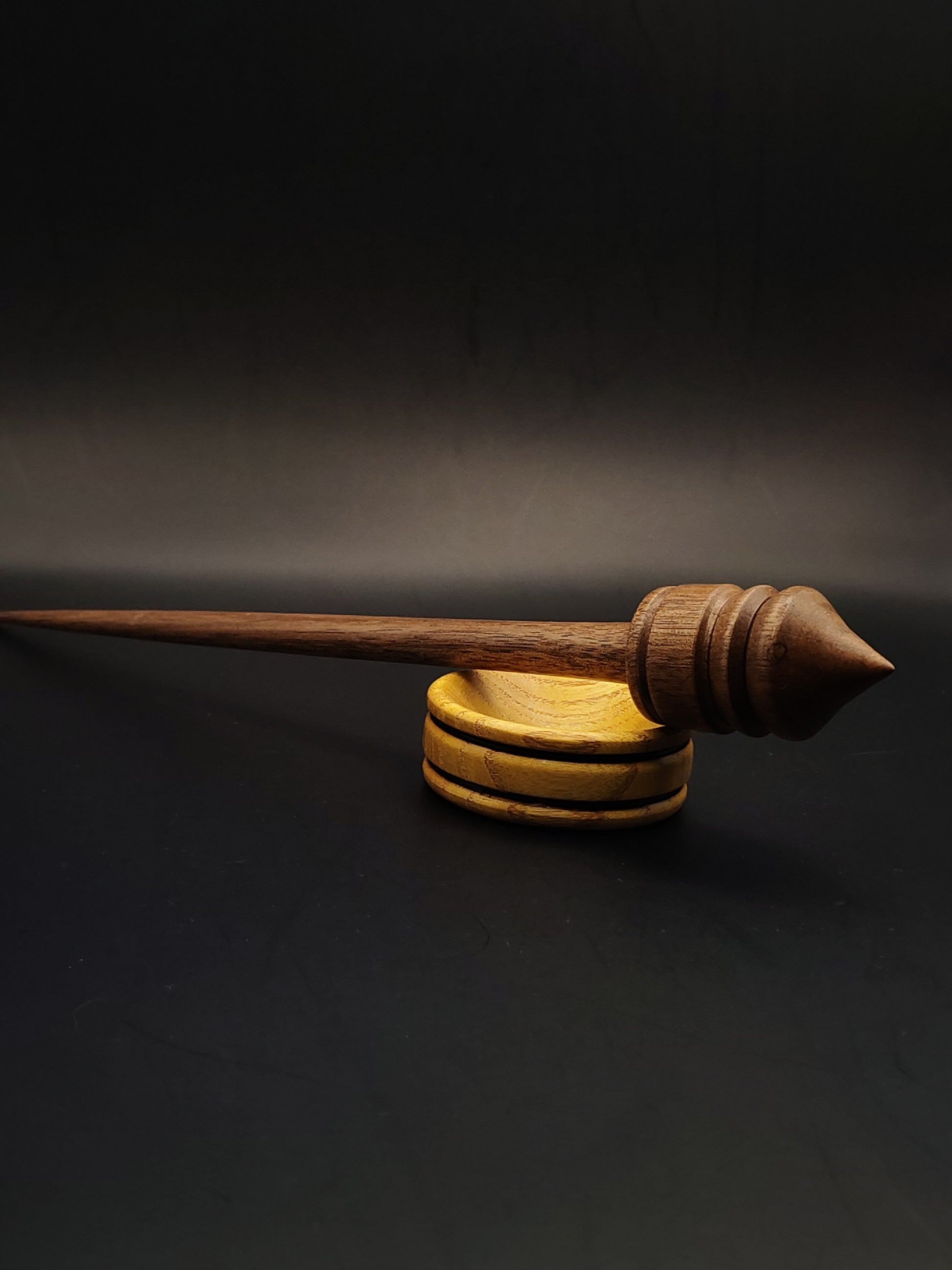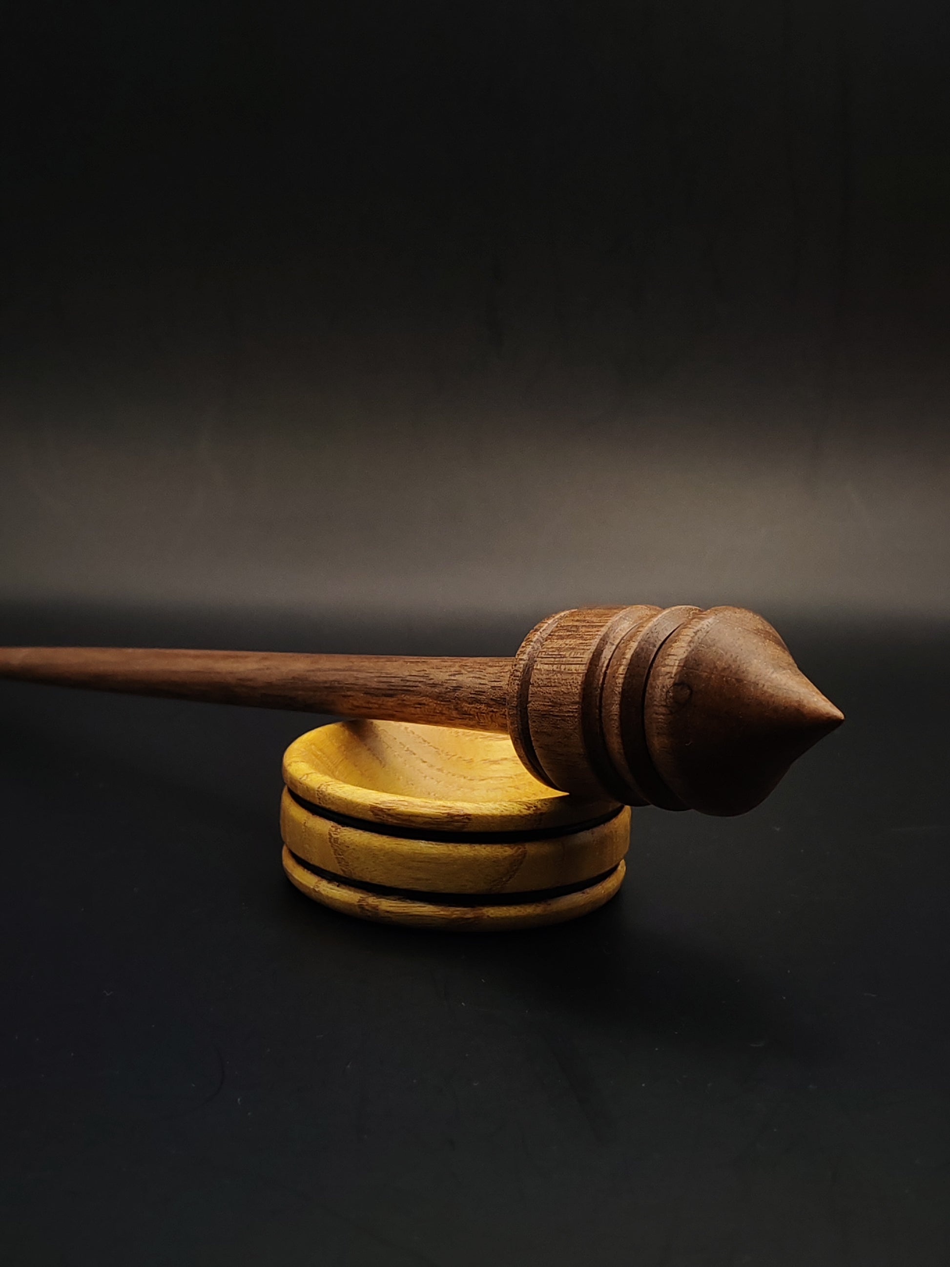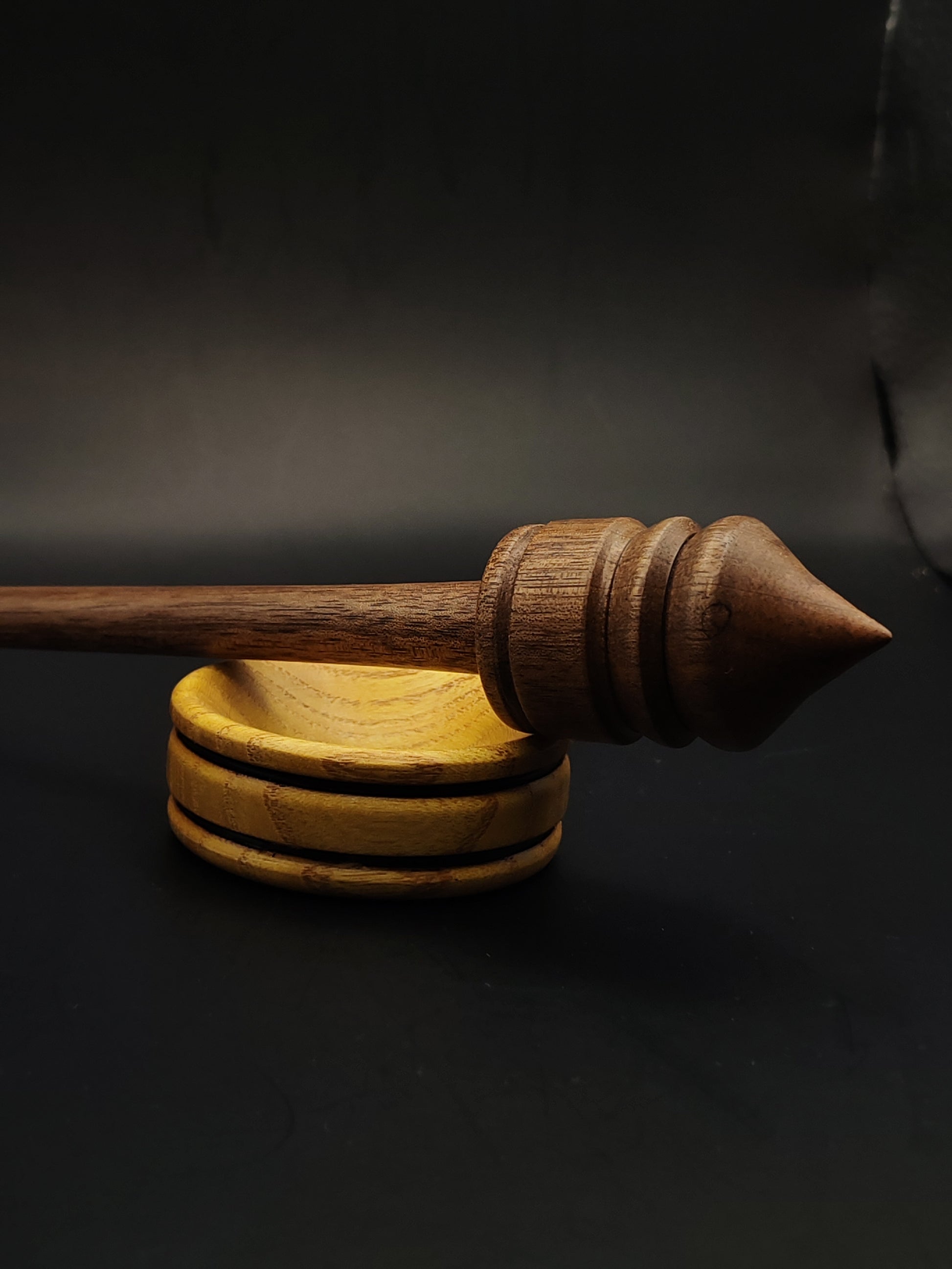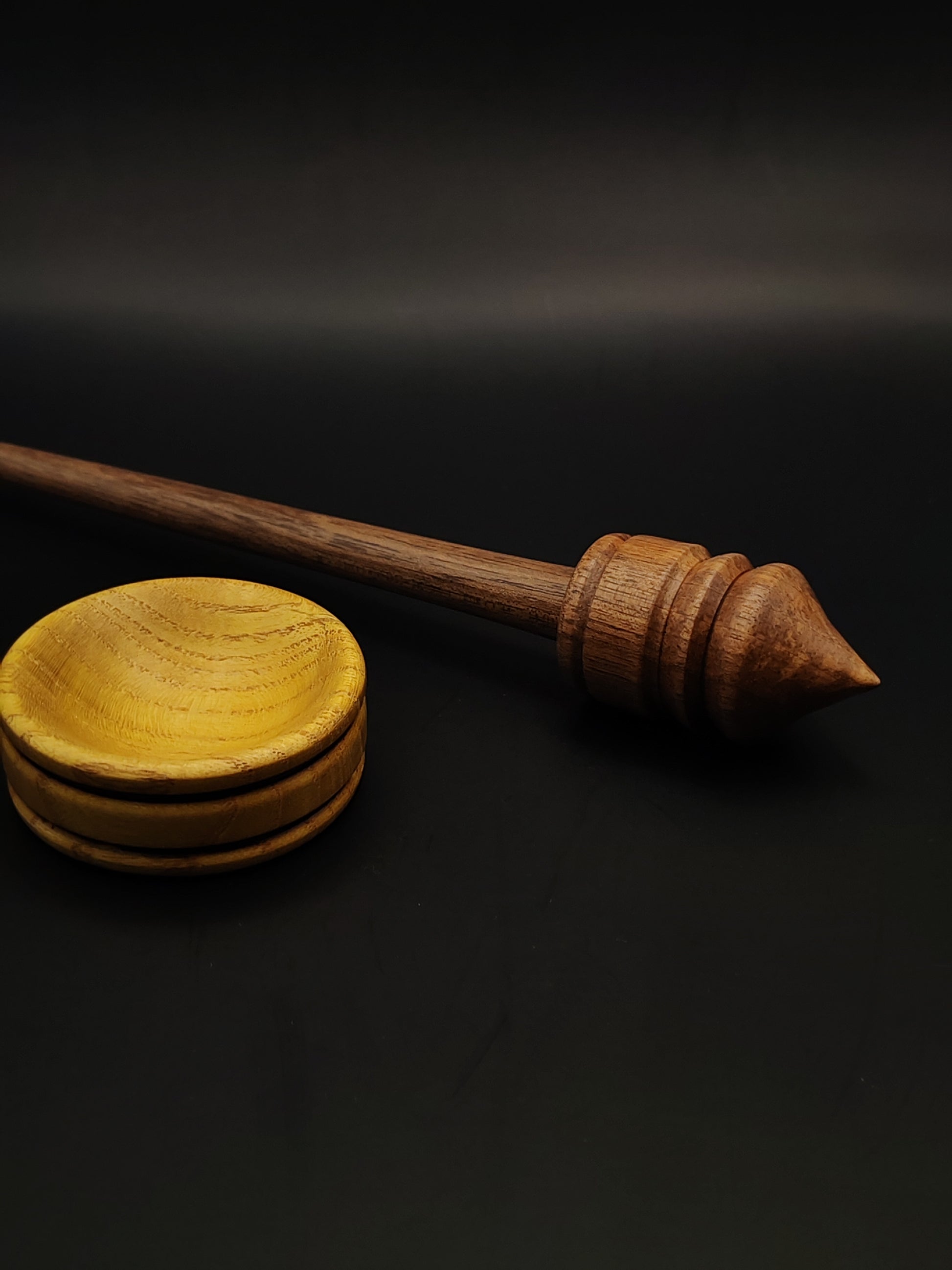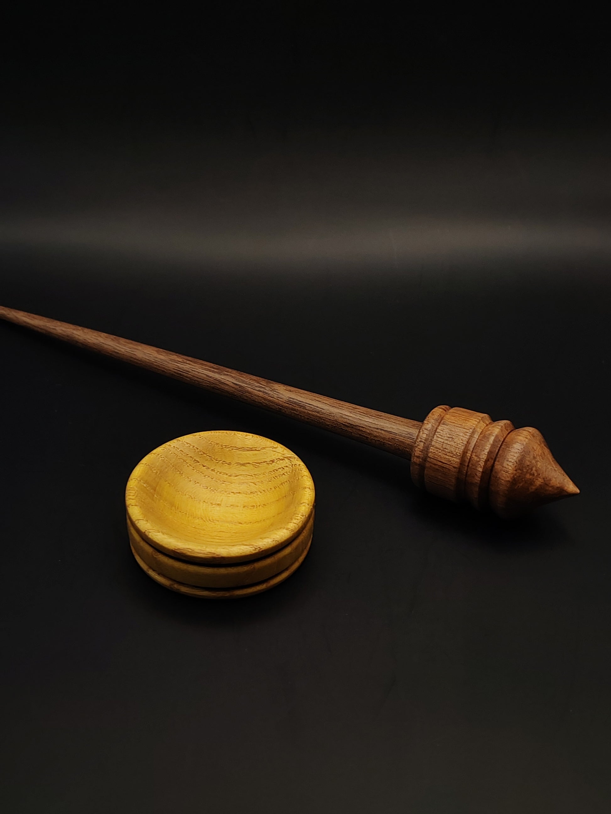 The included mulberry support bowl brings a bright, stable contrast to the walnut spindle, and together they create a responsive, well-matched pairing. Both pieces are finished with organic, non-toxic wax, enhancing their tactile feel and preserving the beauty of the wood.