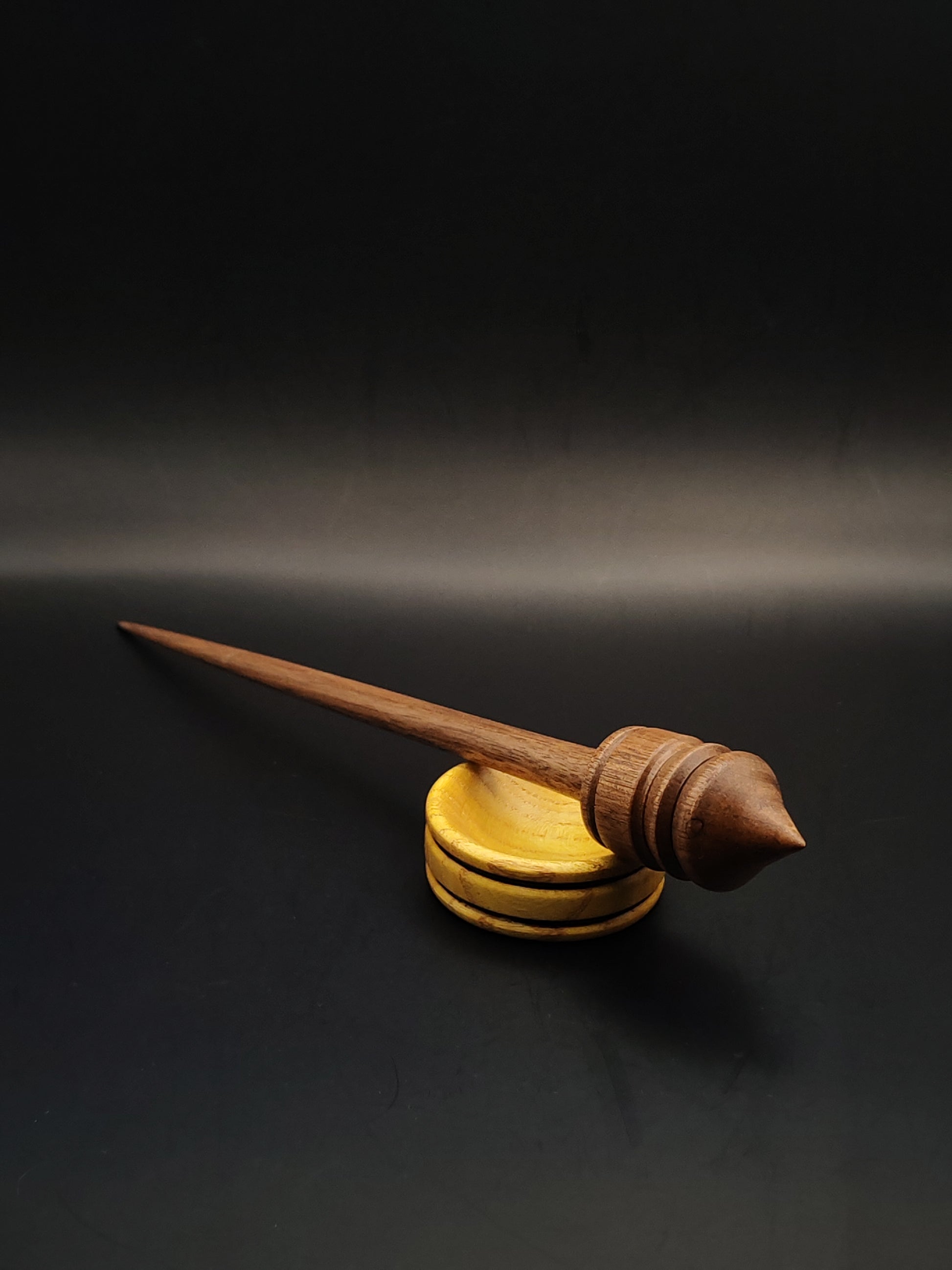 This Walnut Support Spindle Set is a balanced, medium-weight tool designed for smooth and comfortable supported spinning. At 25 grams (0.88 ounces) and 26 cm (10.23 inches), it offers a gentle yet steady motion, ideal for a variety of fibers and spinning styles.