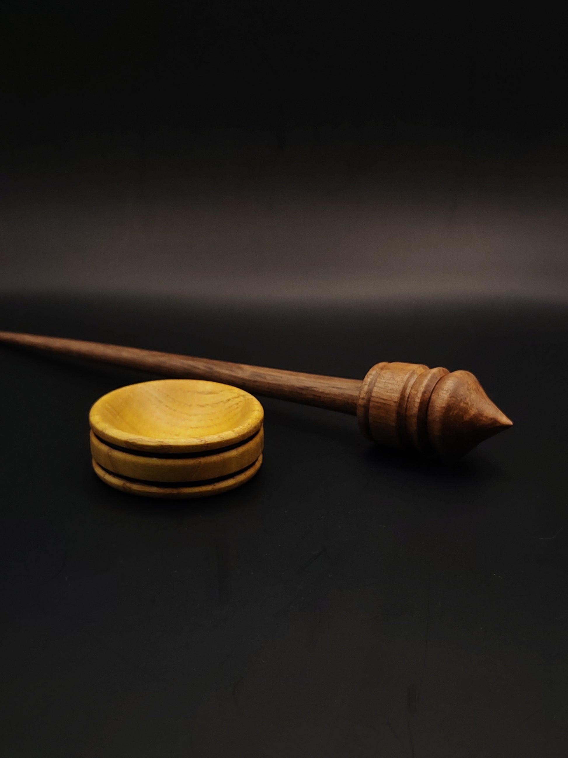 Walnut Support Spindle Set – 25g / 0.88oz, 26cm / 10.23in – With Mulberry Support Bowl | Balanced Spindle for Supported Spinning | Kravelli Spindles