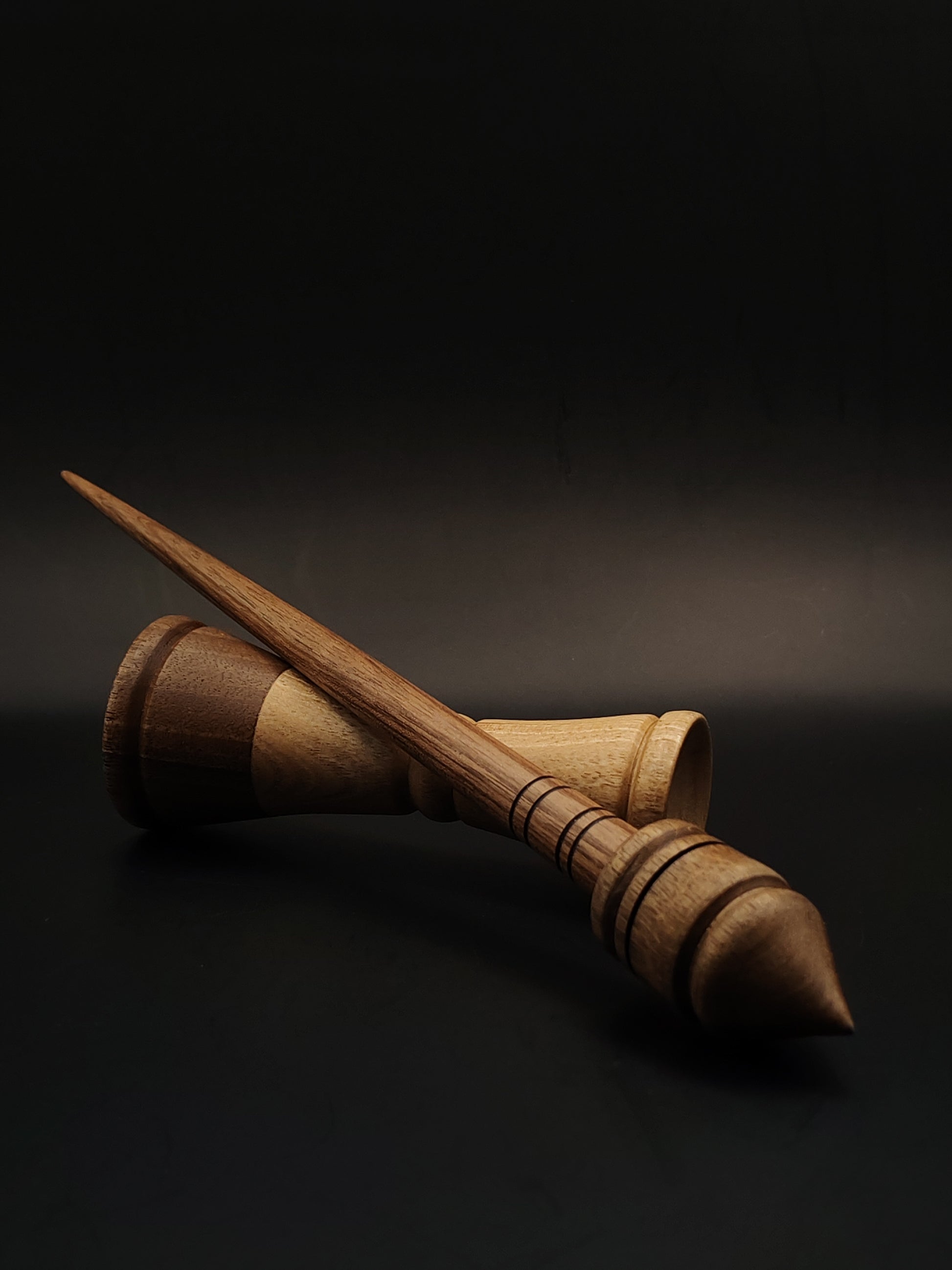 Walnut Support Spindle Set – 25g / 0.88oz, 27cm / 10.62in – With Walnut Lap Support Bowl | Medium-Weight Spindle for Supported Spinning | Kravelli Spindles