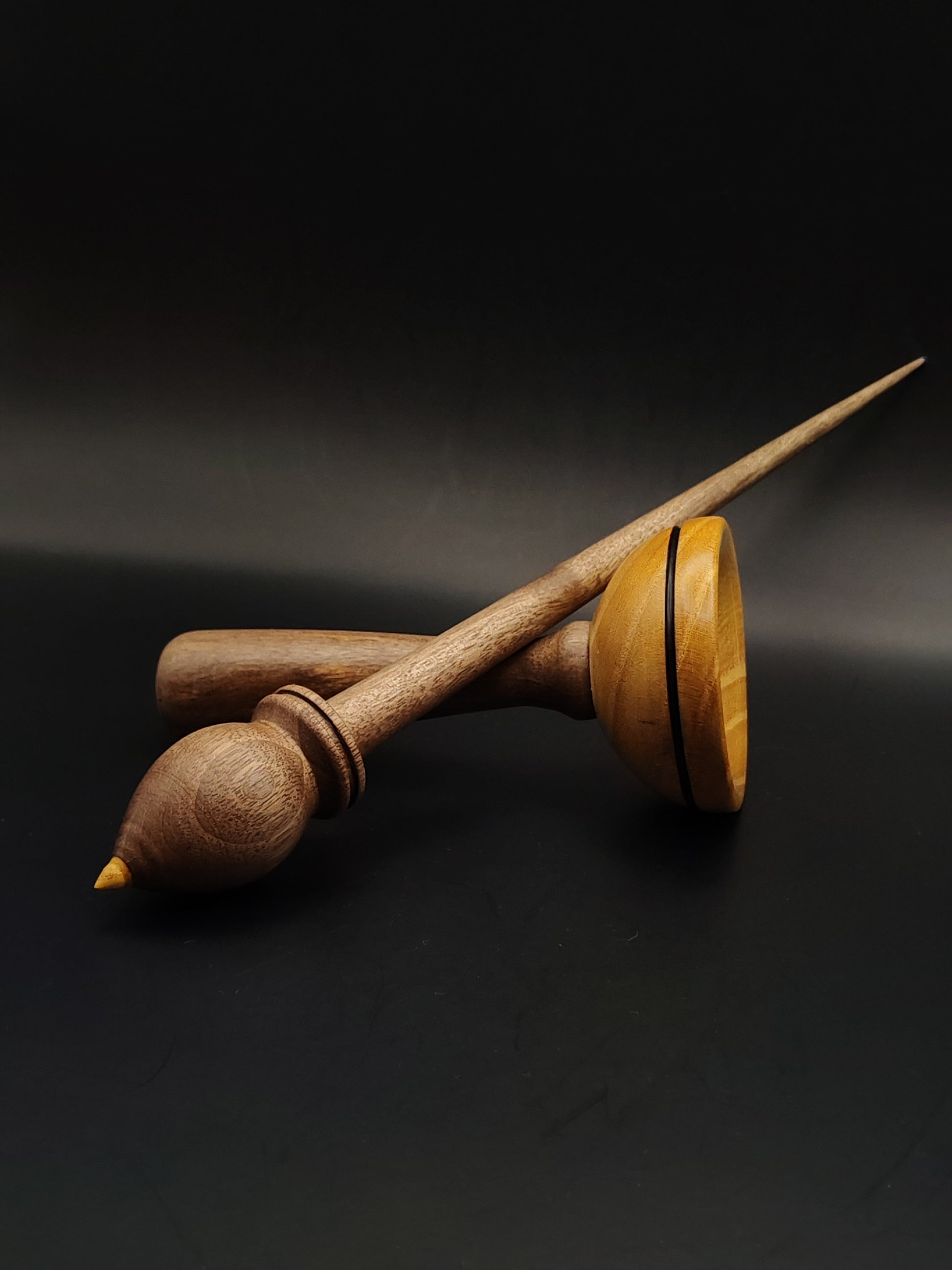 Paired with a handcrafted mulberry and walnut lap support bowl, this set combines functional design with visual contrast. The lap bowl offers a stable and ergonomic spinning surface, while the warm tone of mulberry and the richness of walnut enhance the natural beauty of the set.