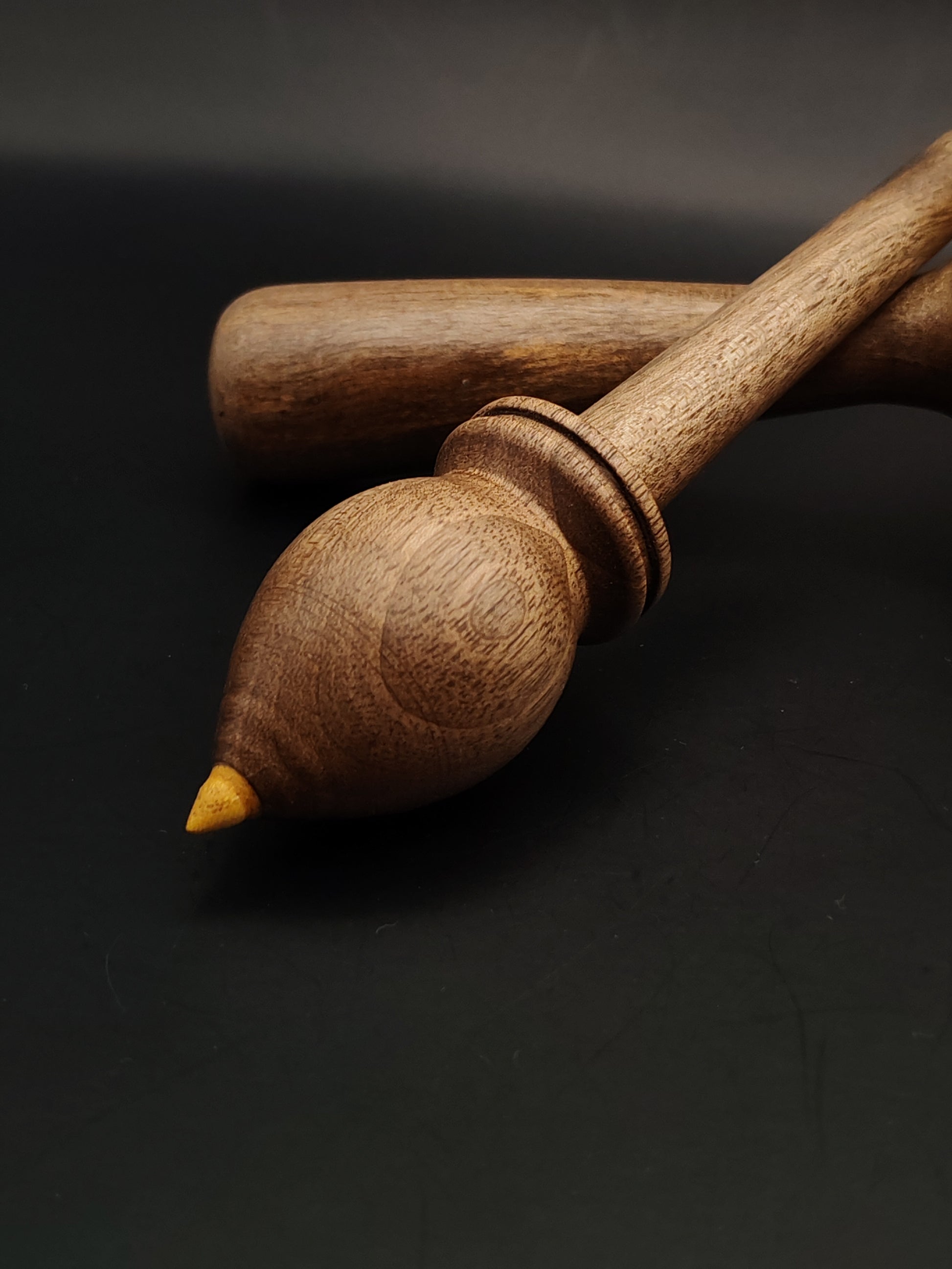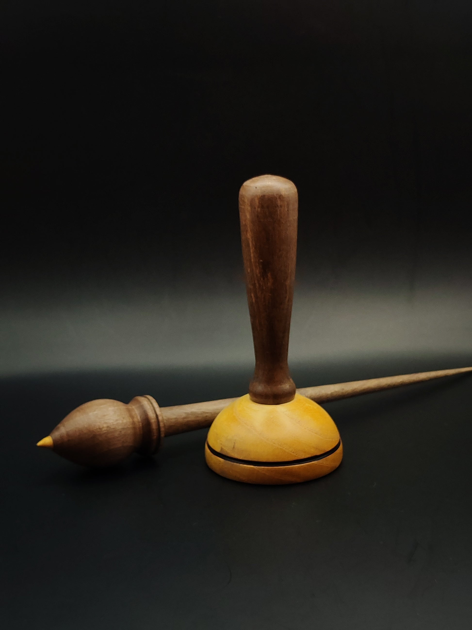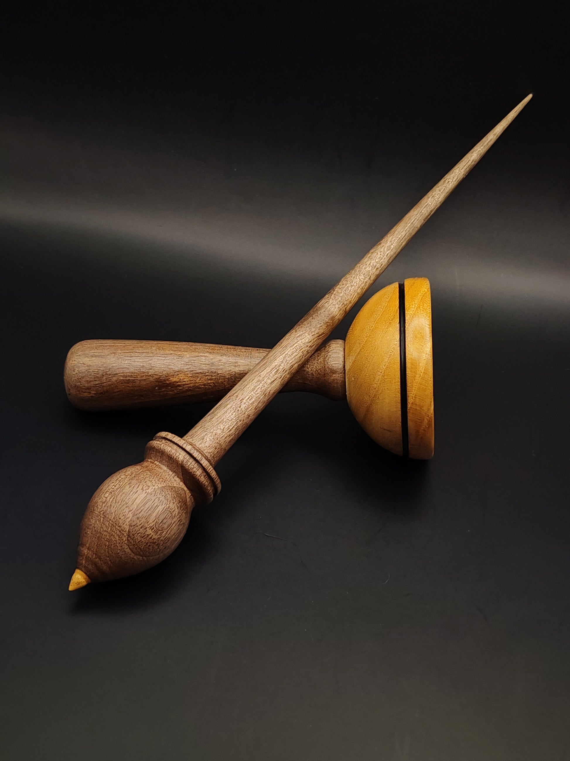 Walnut Support Spindle Set – 28g / 0.99oz, 28cm / 11.02in – With Mulberry & Walnut Lap Support Bowl | Medium-Heavy Spindle for Supported Spinning | Kravelli Spindles