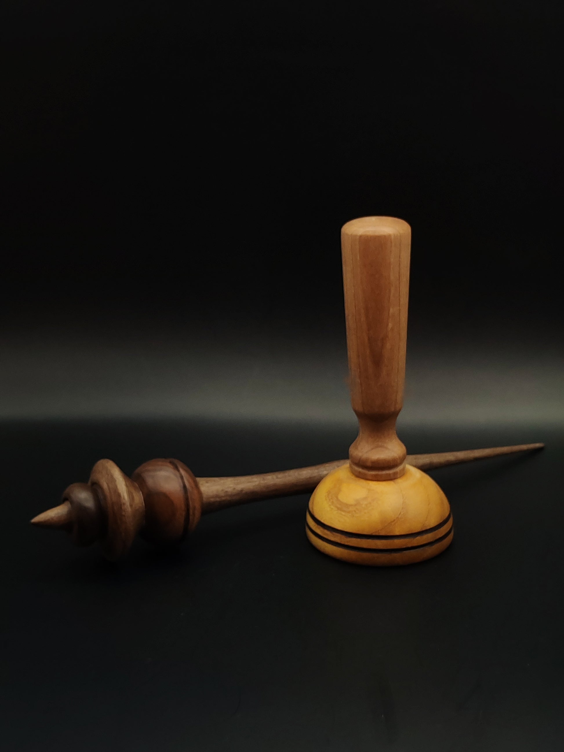 Walnut Support Spindle Set – 33g / 1.16oz, 25cm / 9.84in – With Grey Walnut & Mulberry Lap Support Bowl | Heavy Spindle for Controlled Supported Spinning | Kravelli Spindles