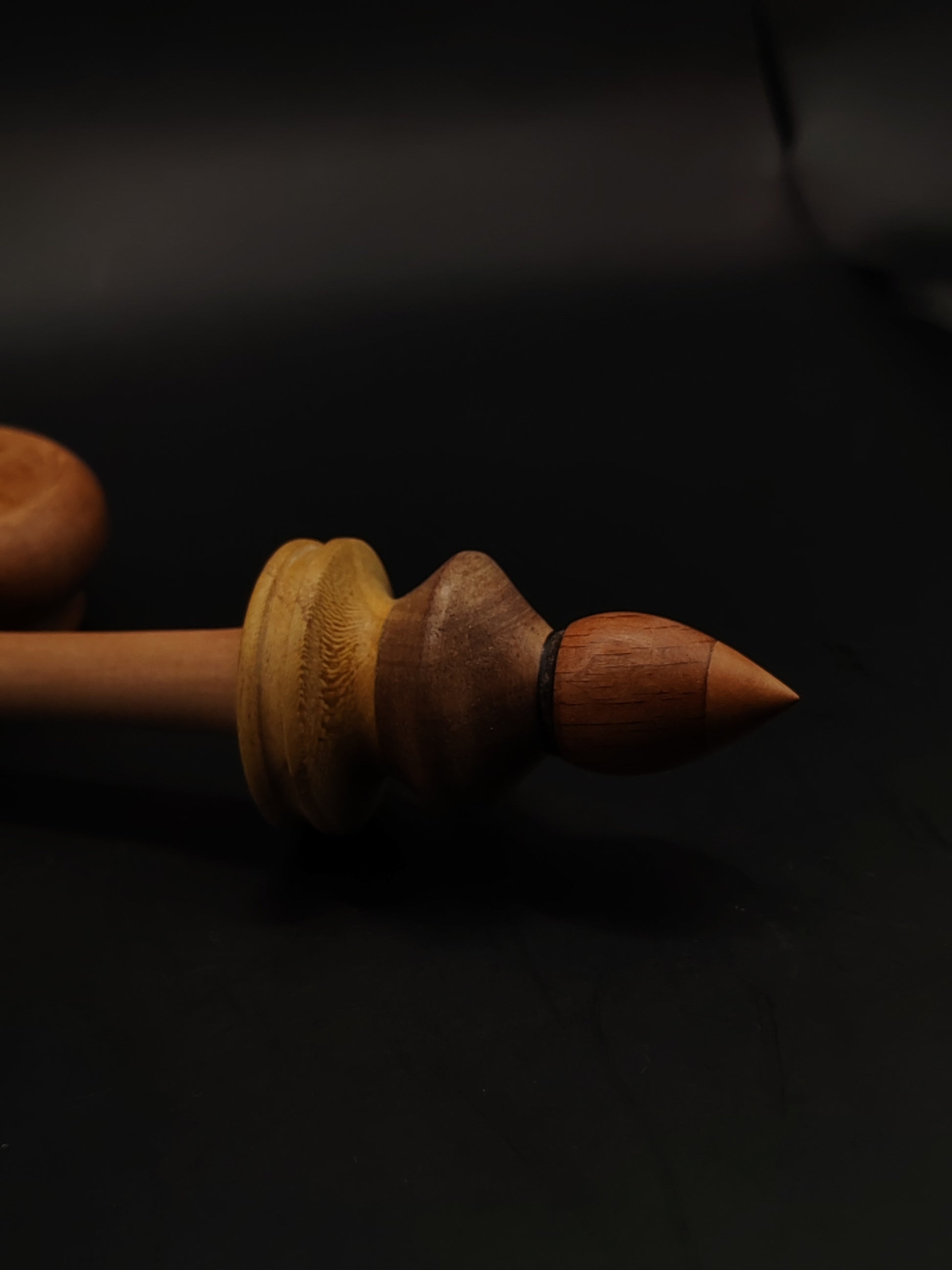 Colorful Support Spindle – Apple Shaft + Beech/Walnut/Mulberry Whorl (25.5 cm / 10″, 21 g / 0.74 oz) + Beech Spinning Bowl | Artisan Handmade by Kravelli