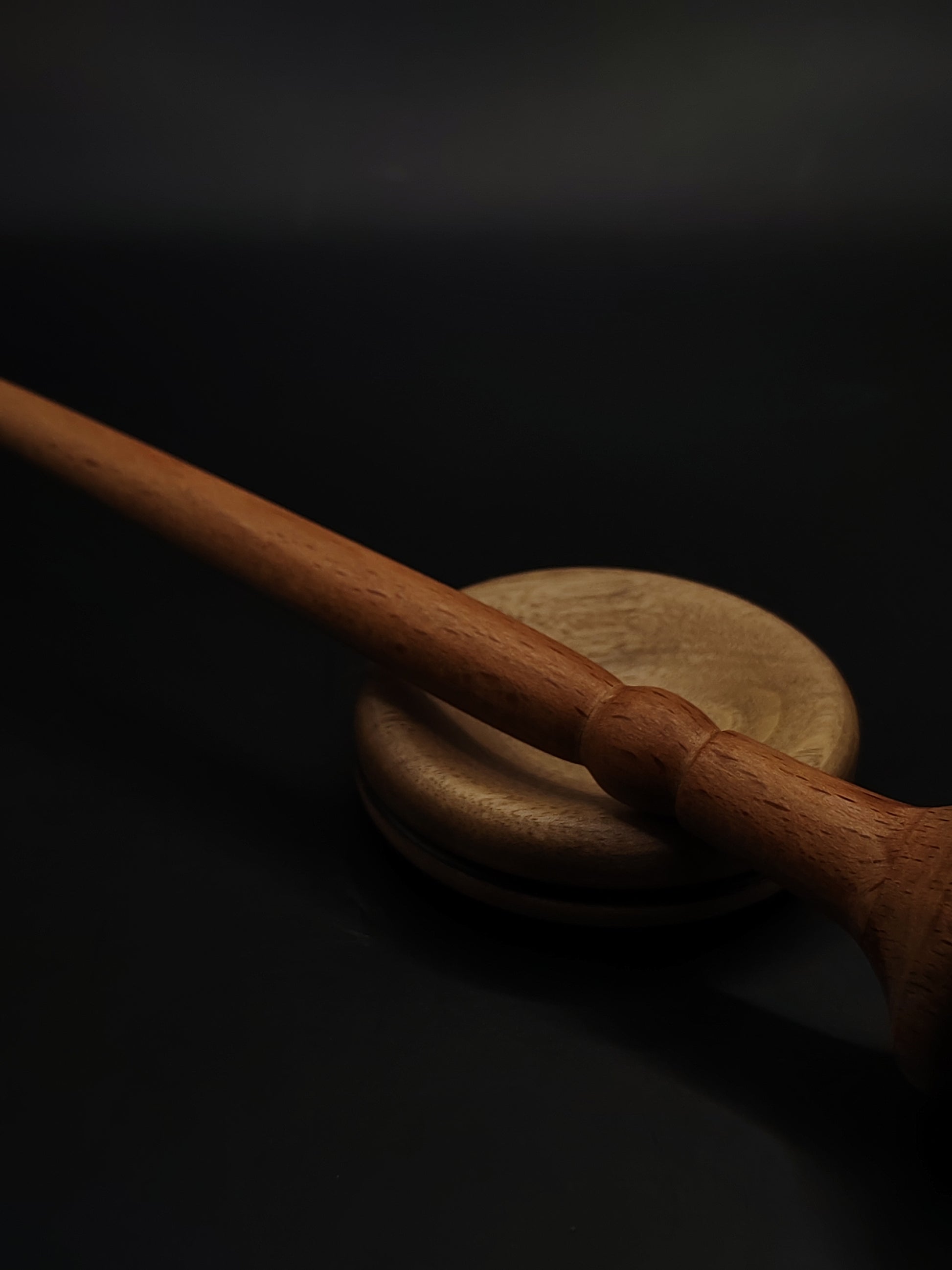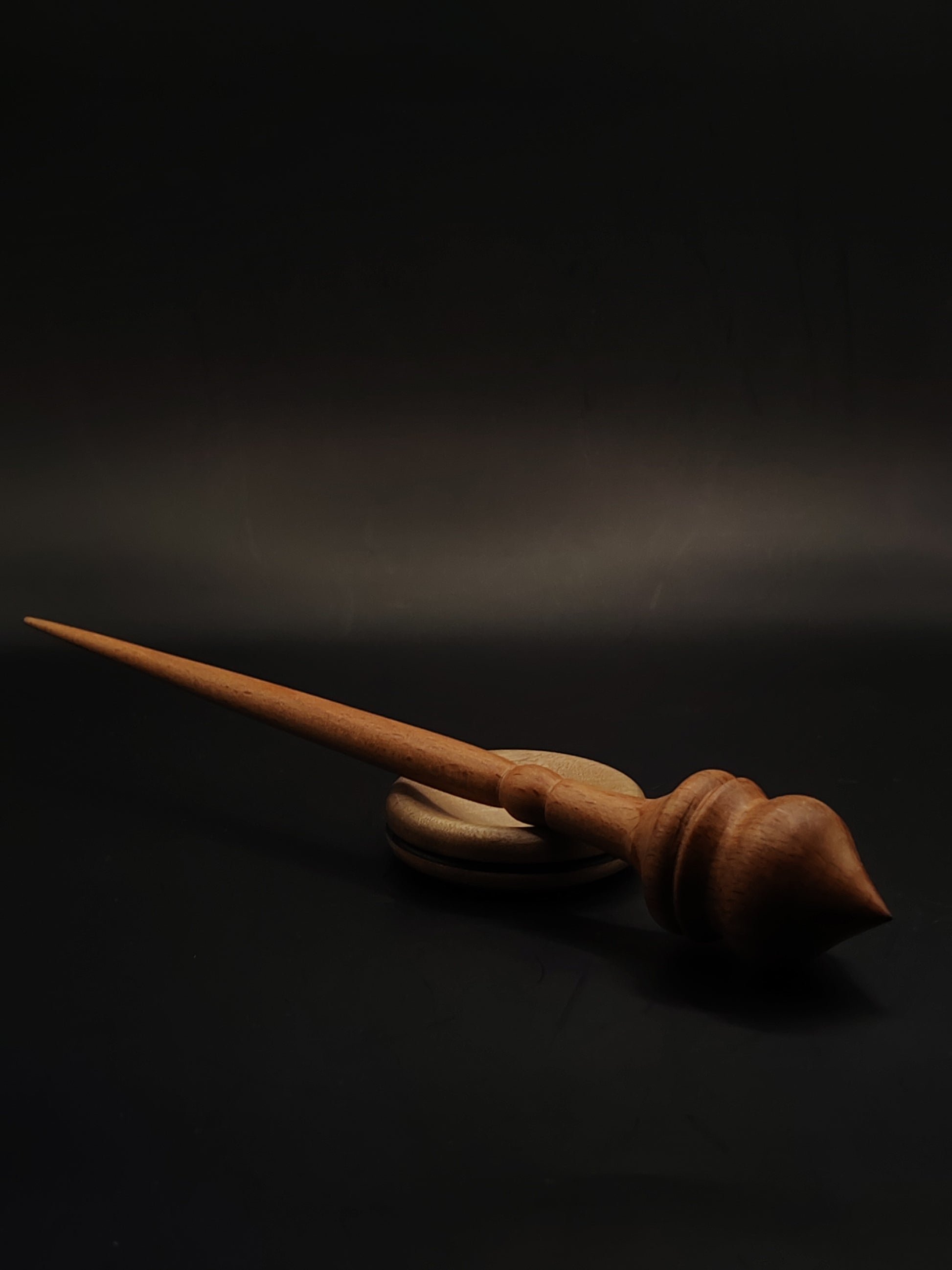 At 23 grams, the spindle offers an excellent balance of momentum and agility, ideal for fine to medium yarns, soft wools, and blends. The 24.5 cm (9.6″) length provides comfortable reach and a clean, steady spin path, making it a great all-rounder for daily spinning.