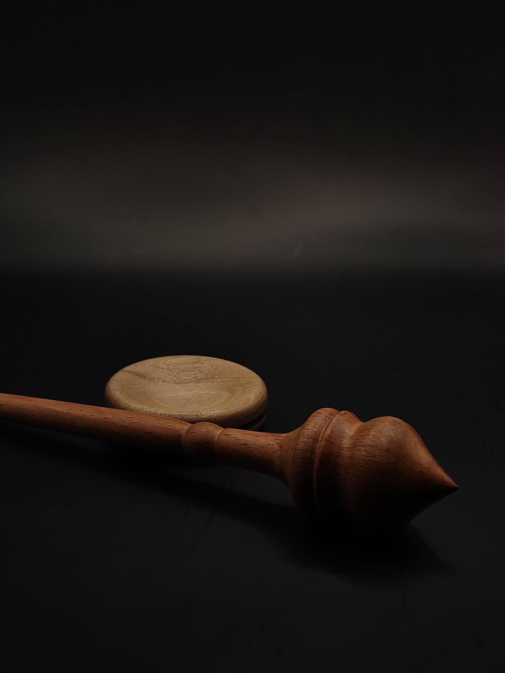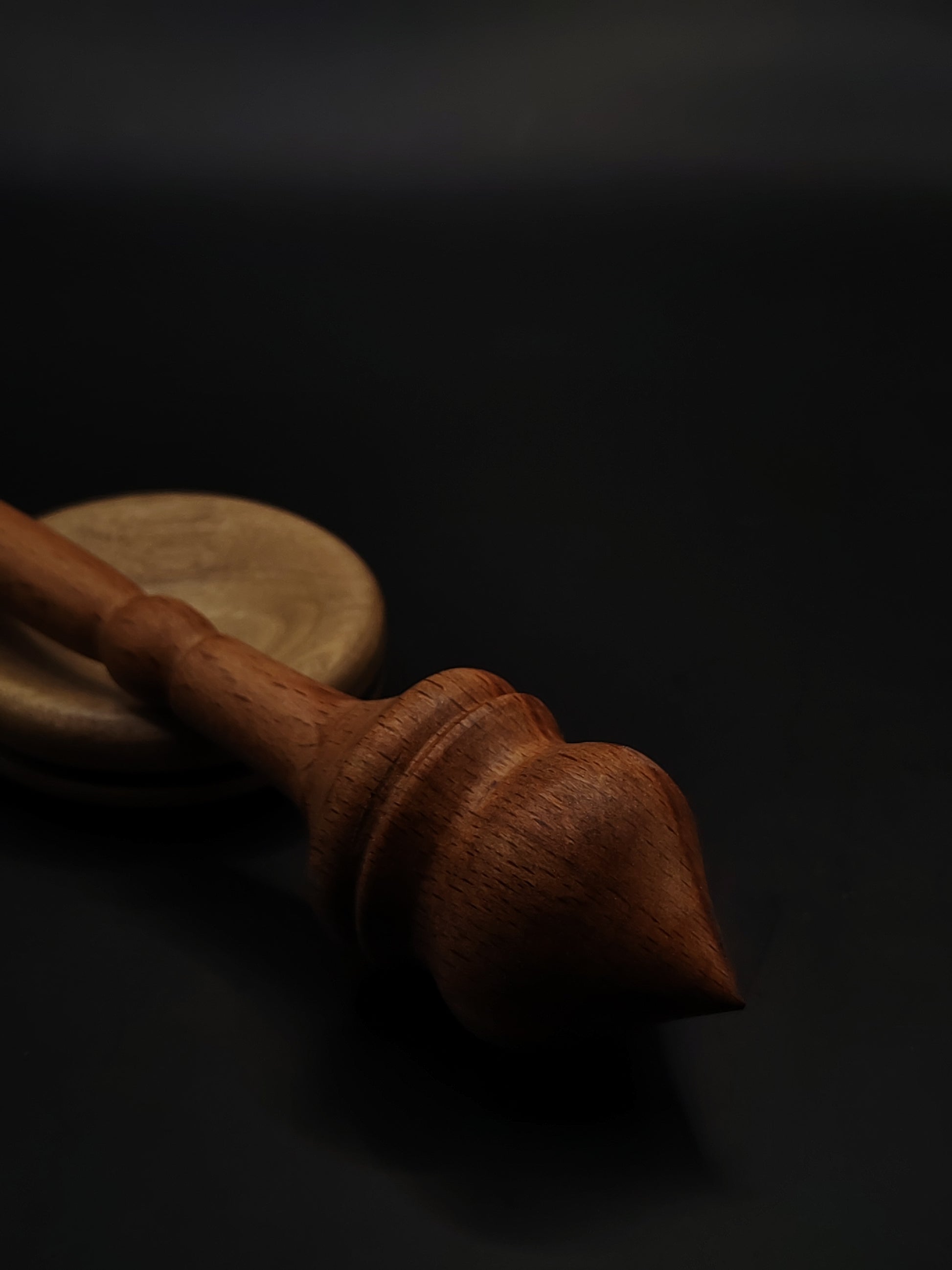 Support Spindle – Red Beech Wood (24.5 cm / 9.6″, 23 g / 0.81 oz) + Grey Spinning Bowl | Artisan Handmade by Kravelli