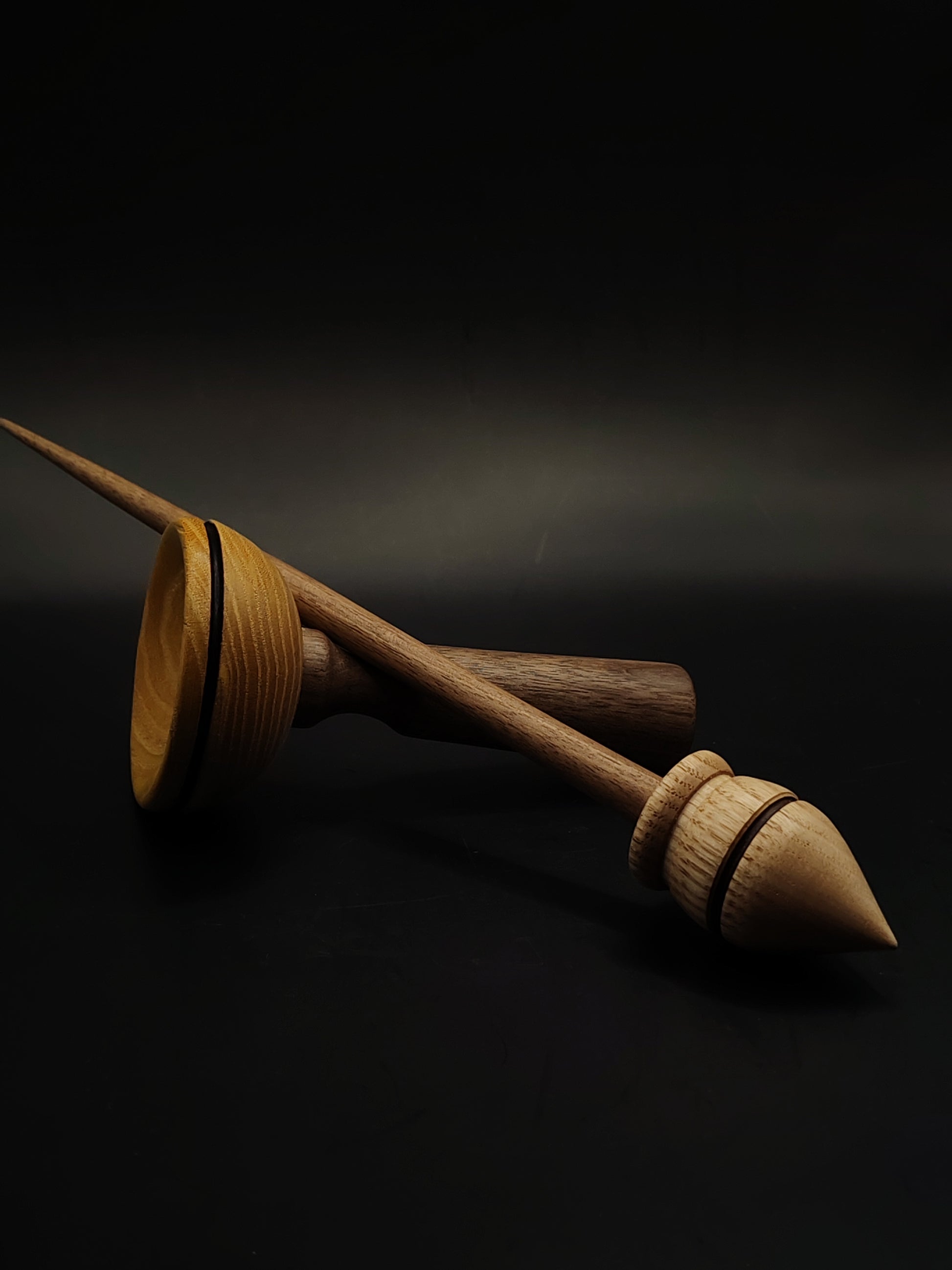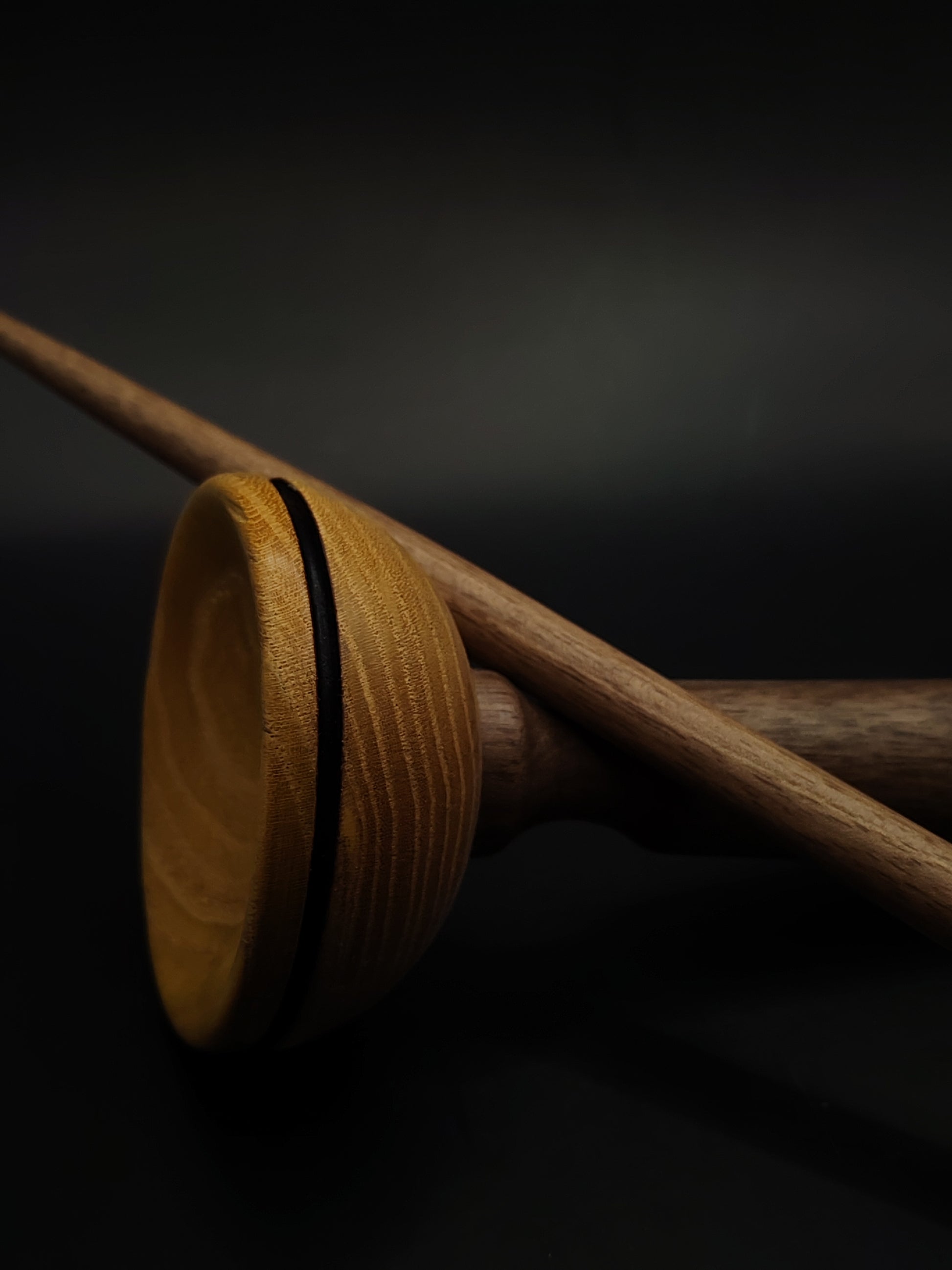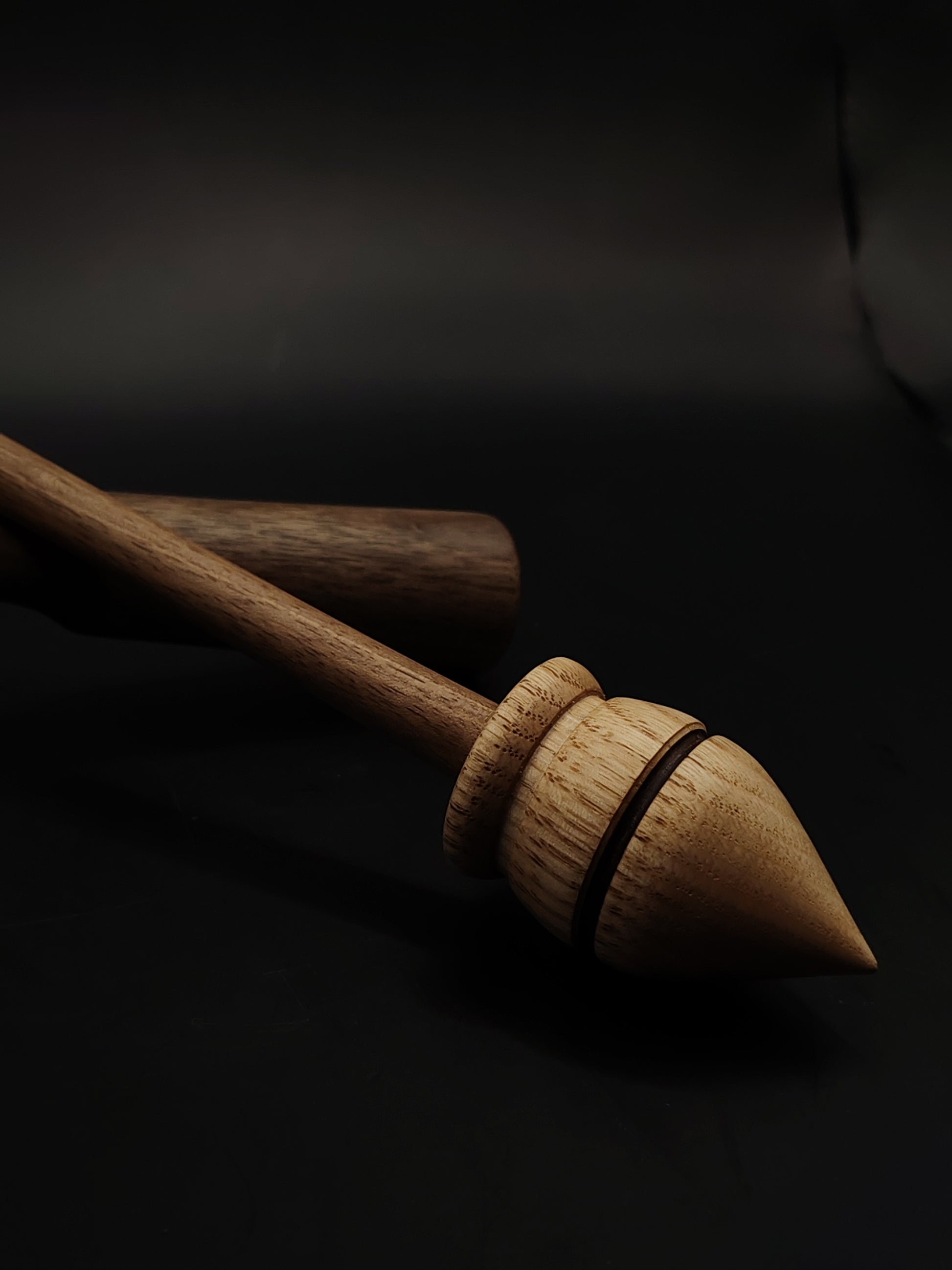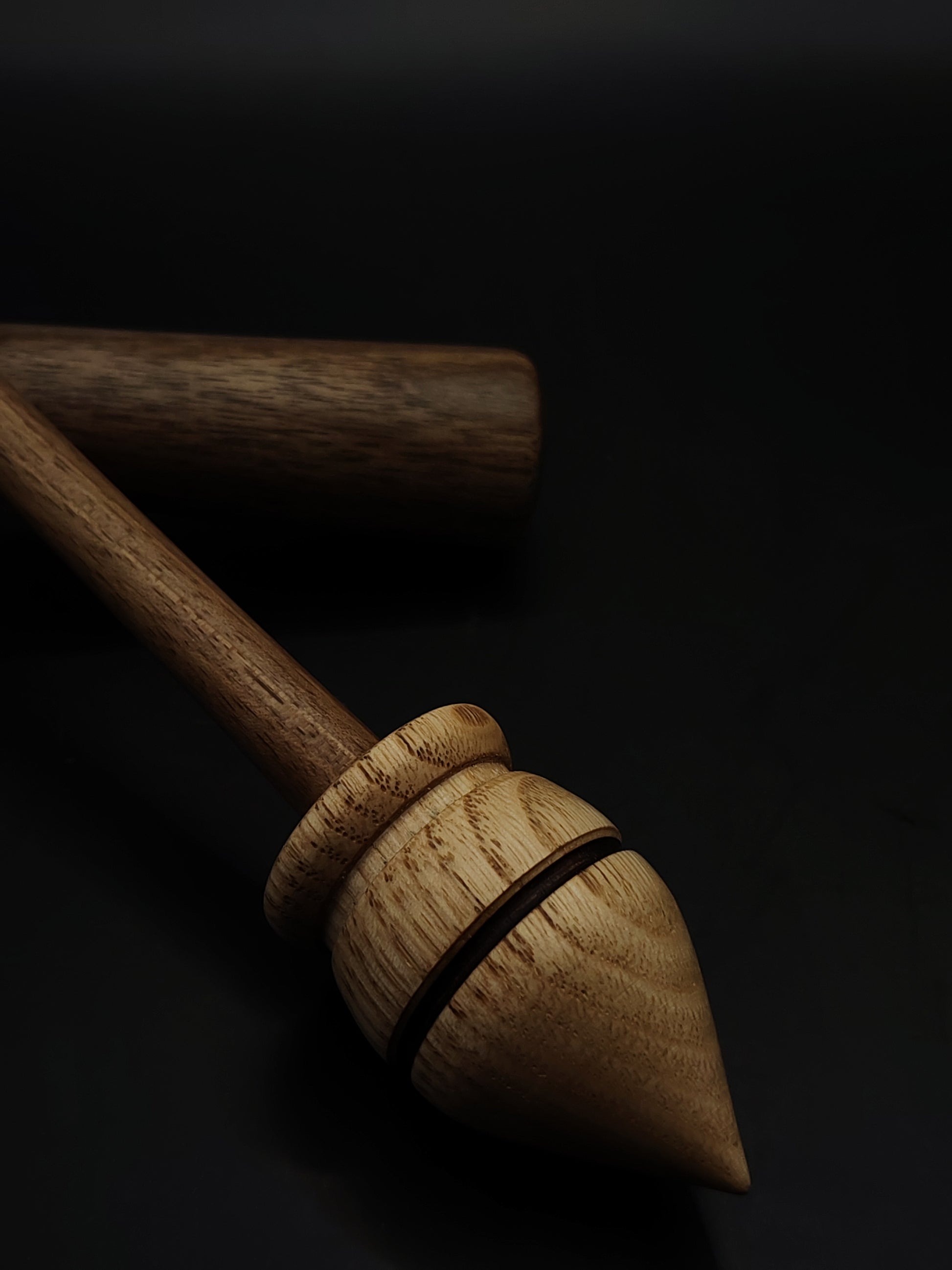 Support Spindle – Walnut Shaft & Chestnut Whorl (27.5 cm, 24 g) with Walnut & Mulberry Lap Bowl | Yarn Spinner | Kravelli