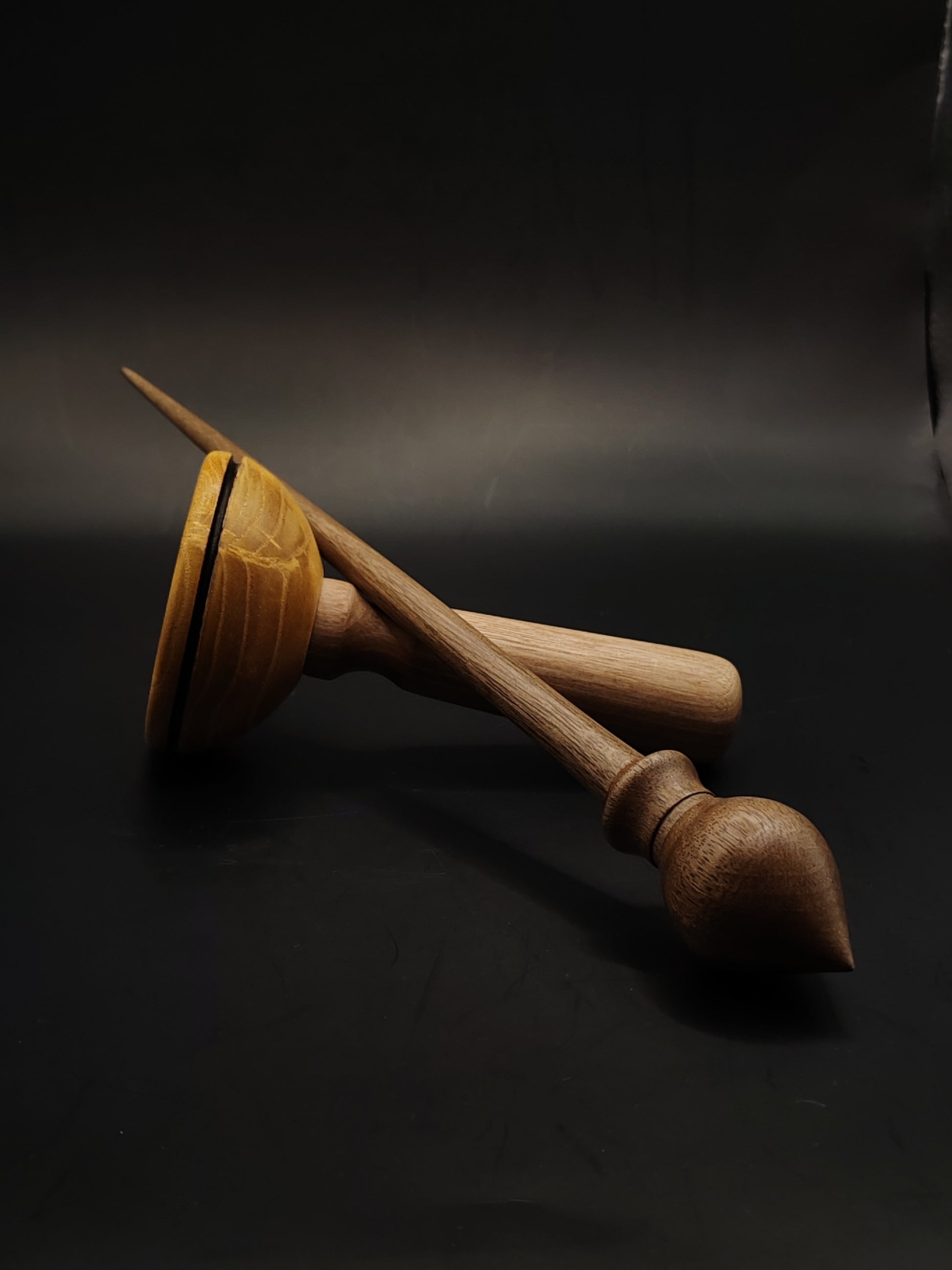 Support Spindle – Walnut Whorl & Shaft (27.5 cm, 22 g) with Walnut & Mulberry Lap Bowl | Spinning Tool by Kravelli