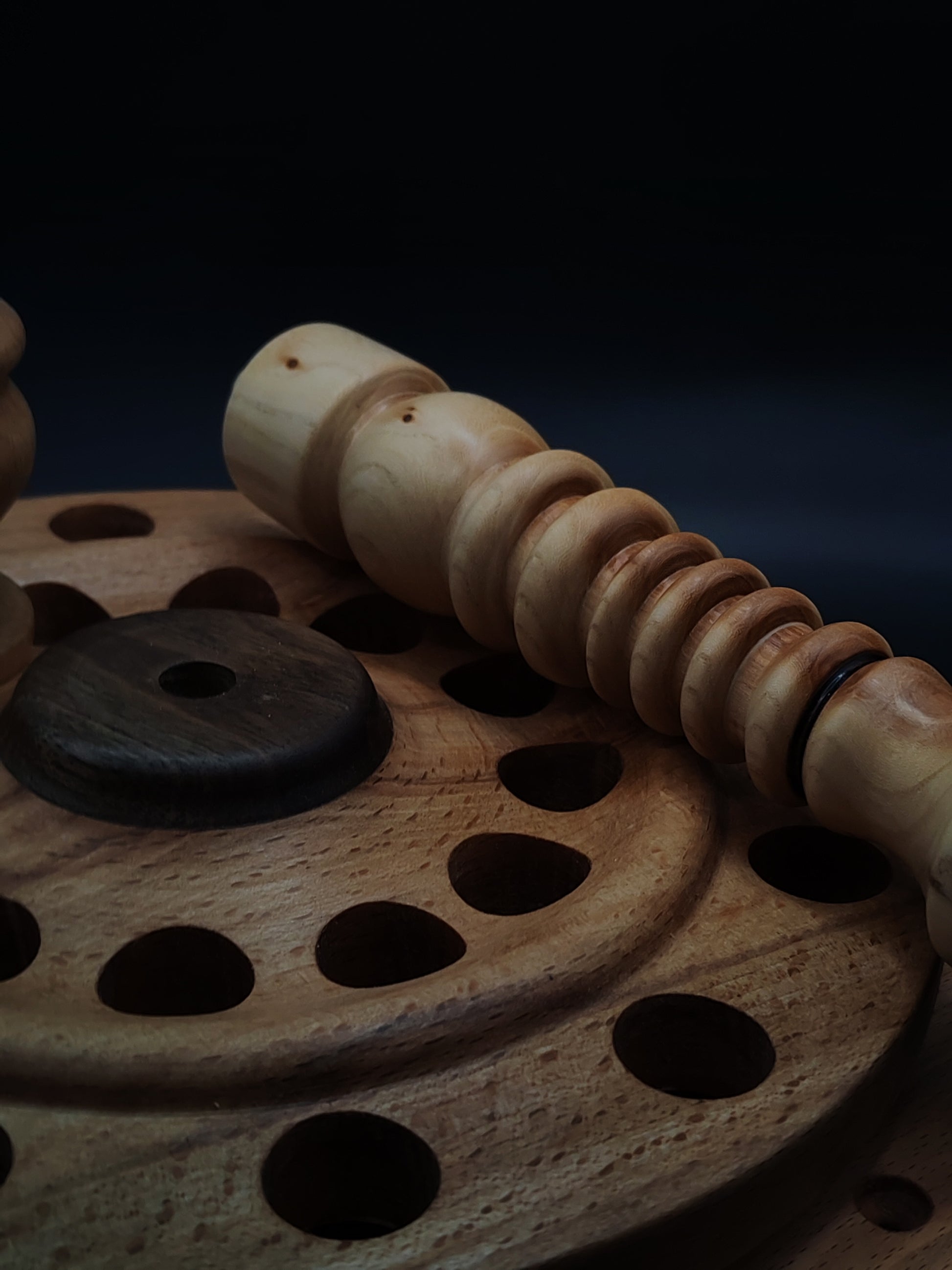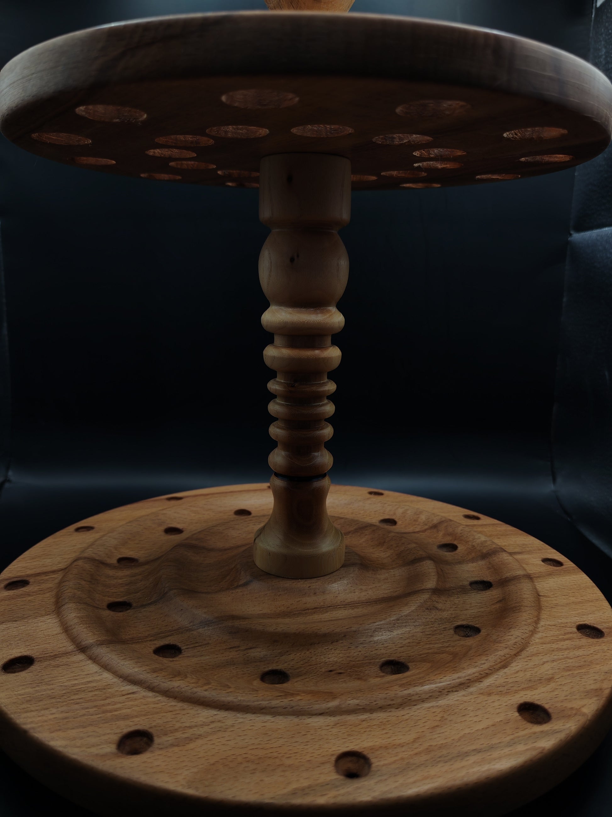 24-Spindle Stand – Steamed Beech, Walnut & Elm | Non-Rotating Organizer for Drop & Support Spindles | Kravelli Artisan Display
