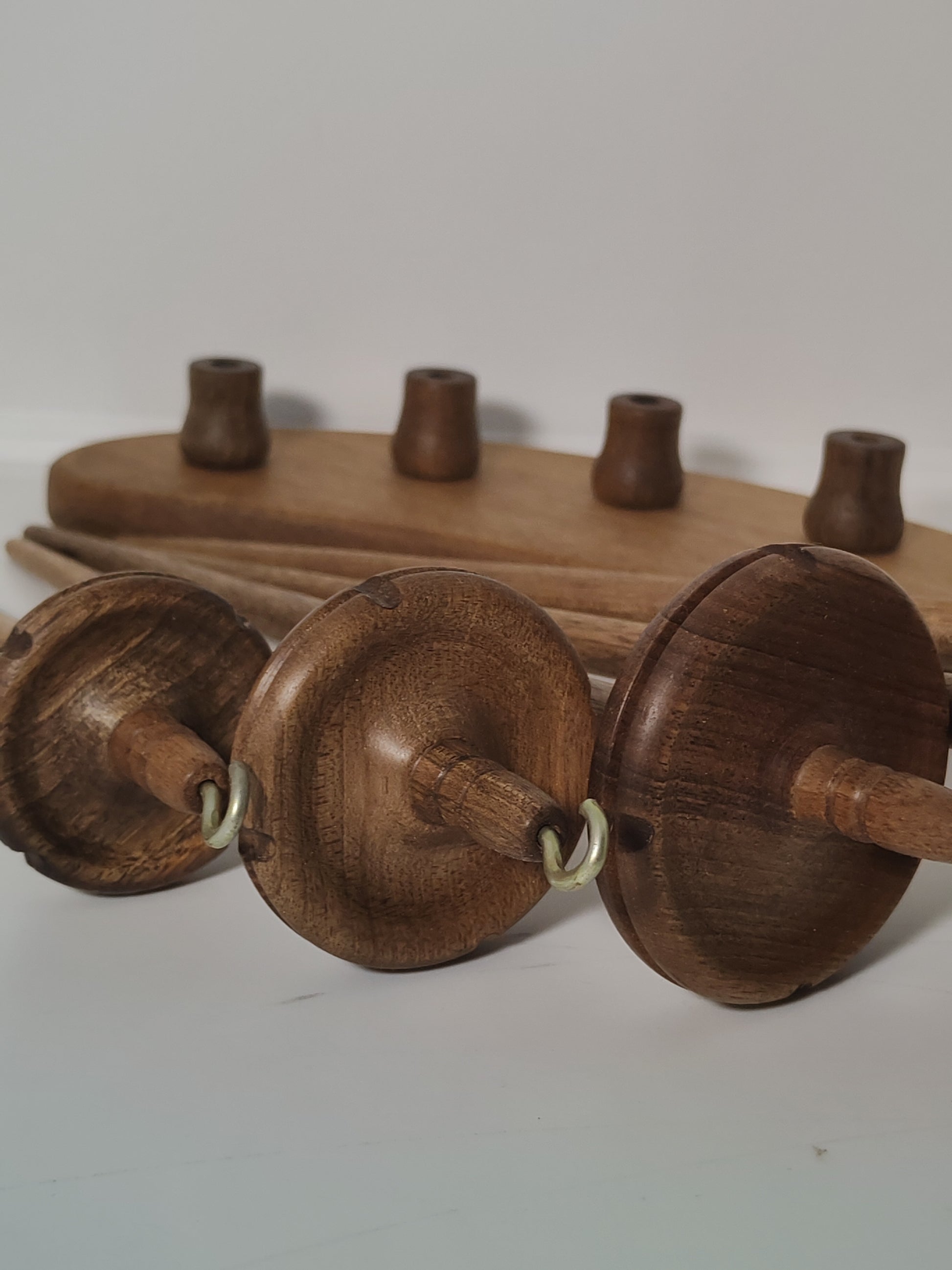 5-Piece Walnut Drop Spindle Collection with Stand | Organic Wax Finish | Spinning & Plying Set | Handmade by Kravelli