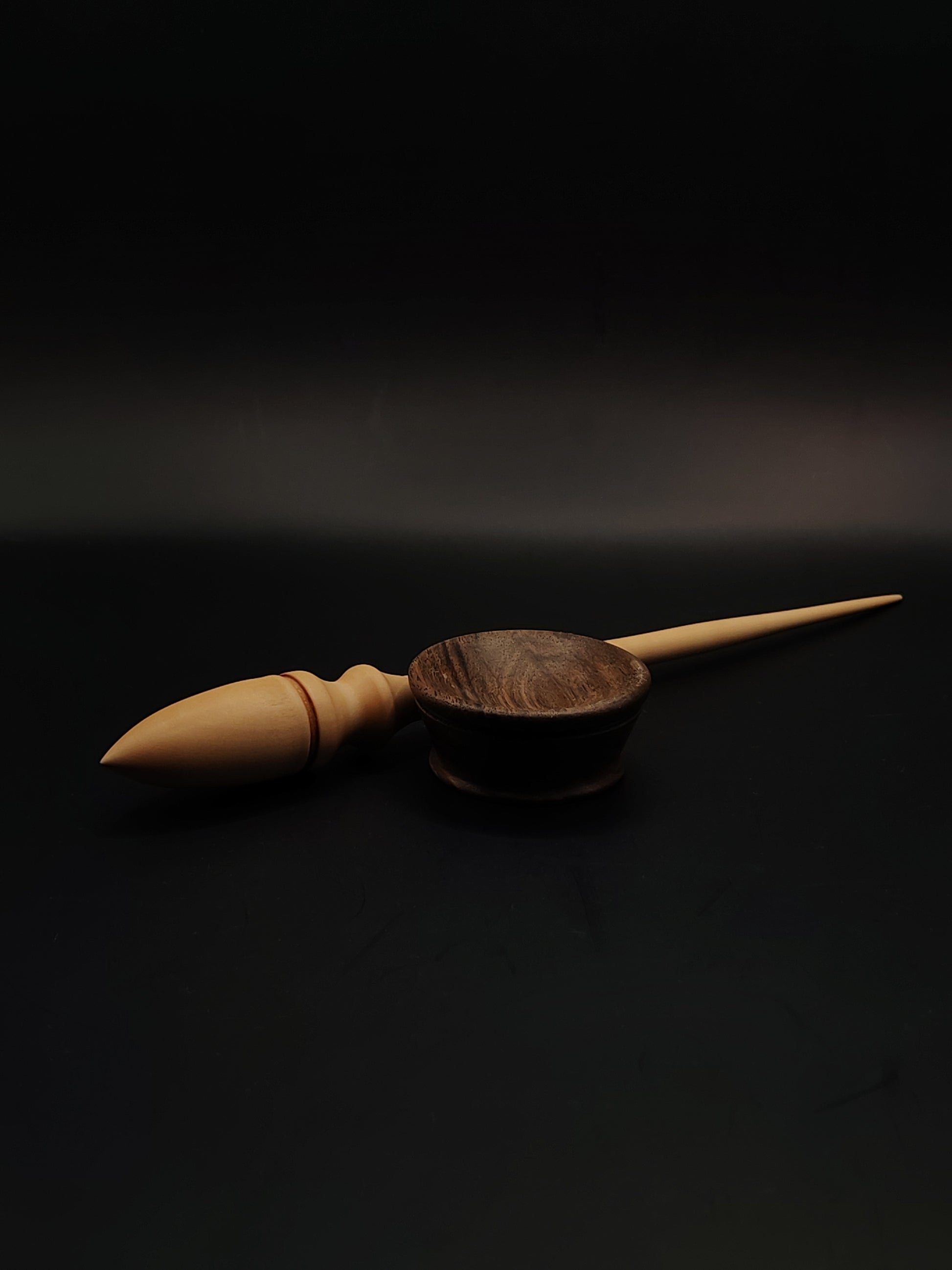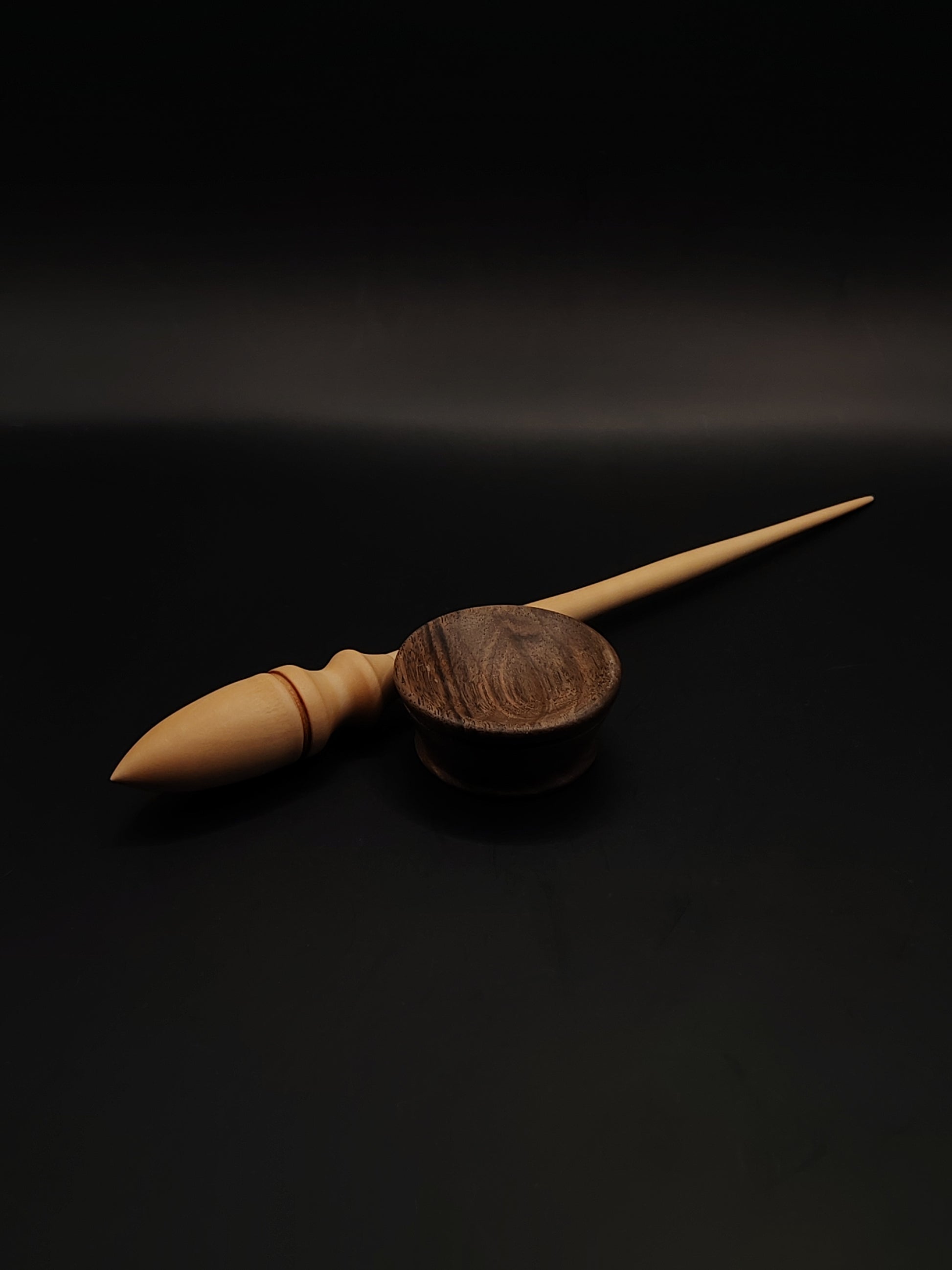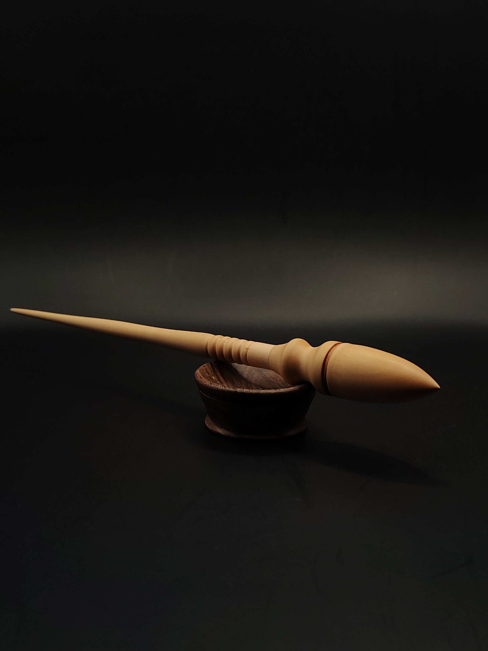 Artisan Support Spindle – Pear Wood | 21g / 0.74oz, 26.5cm / 10.4in | With Walnut Support Bowl | Balanced Spinning Tool | Kravelli