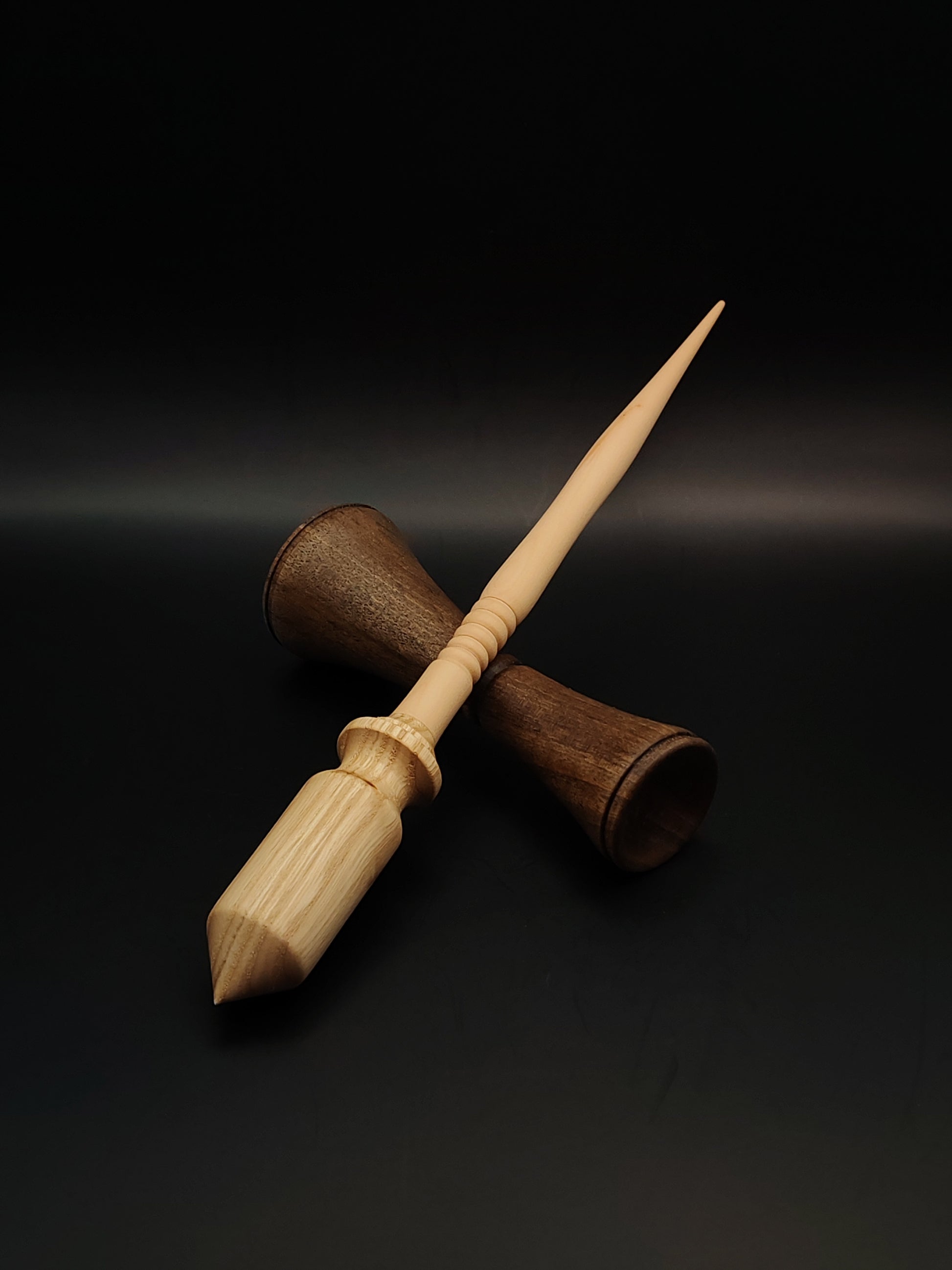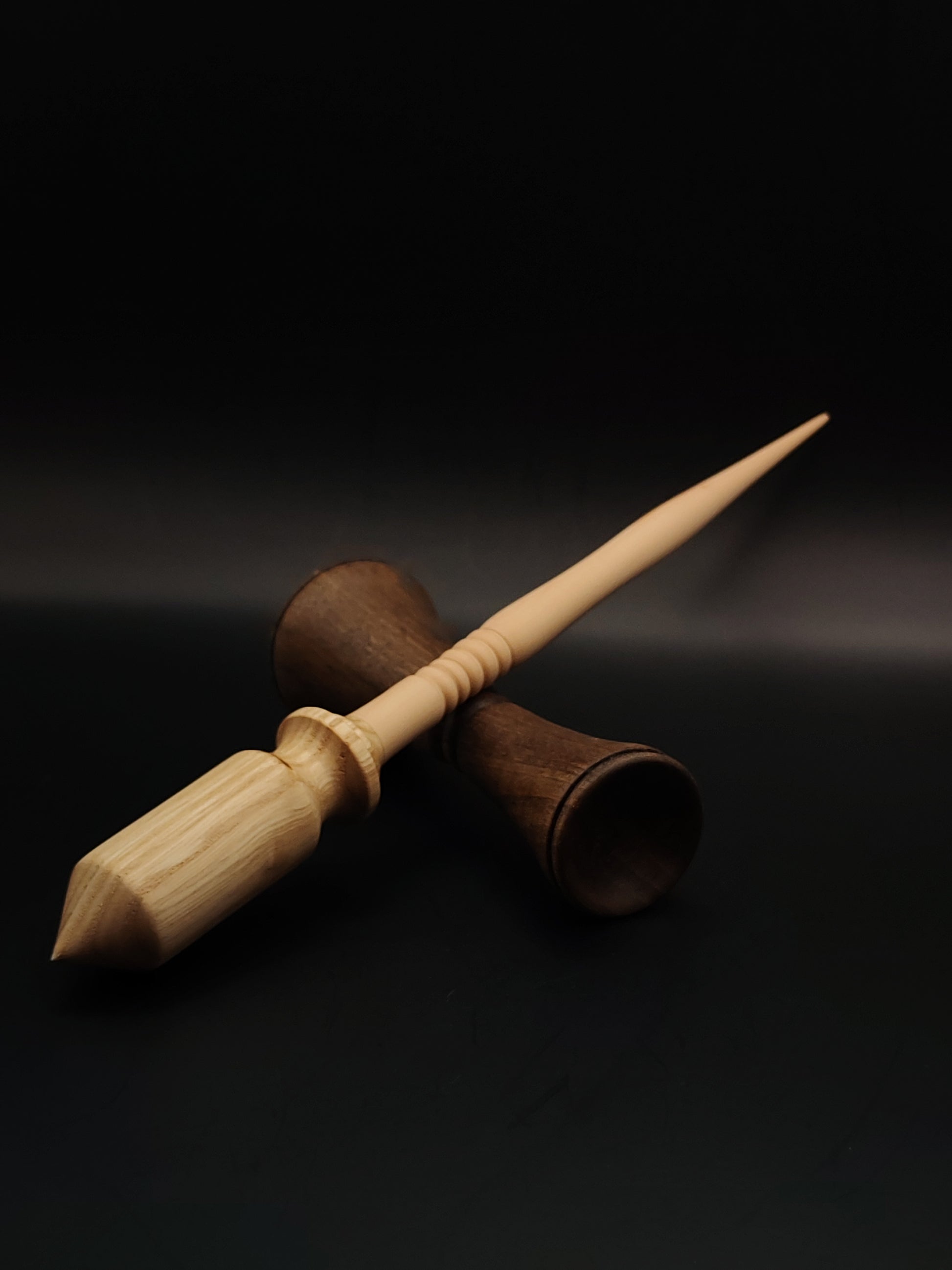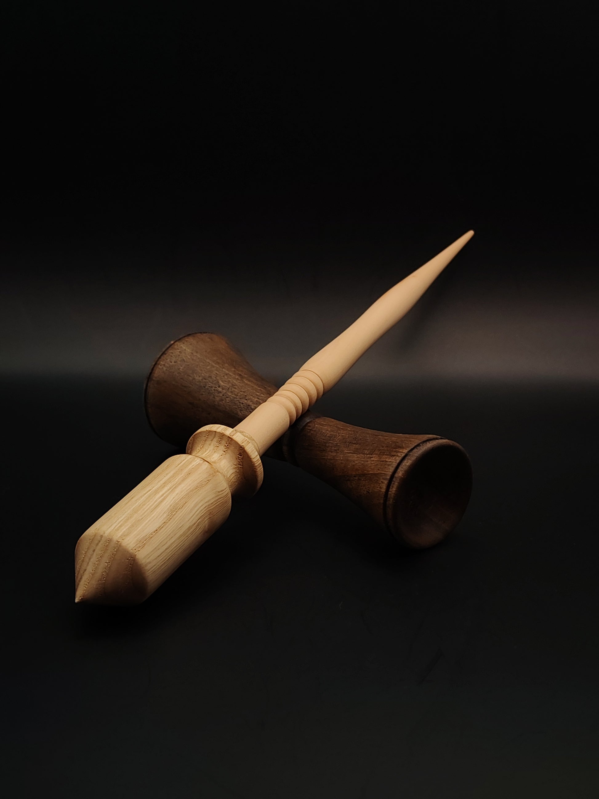 Crafted with care and precision, this artisan support spindle features a beautifully balanced chestnut whorl paired with a smooth pear wood shaft. Measuring 27.5 cm in length and weighing 27 grams, it offers excellent momentum and control for extended spinning sessions.