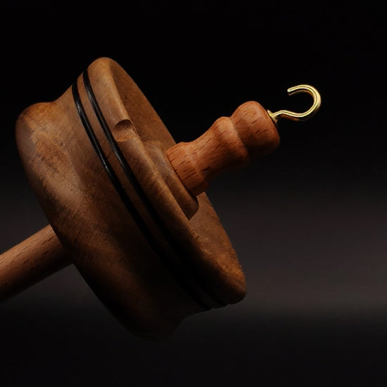 This heavyweight drop spindle is crafted with a beech shaft and a solid walnut whorl, offering exceptional spin duration and momentum — ideal for plying or spinning bulkier yarns with ease and control.