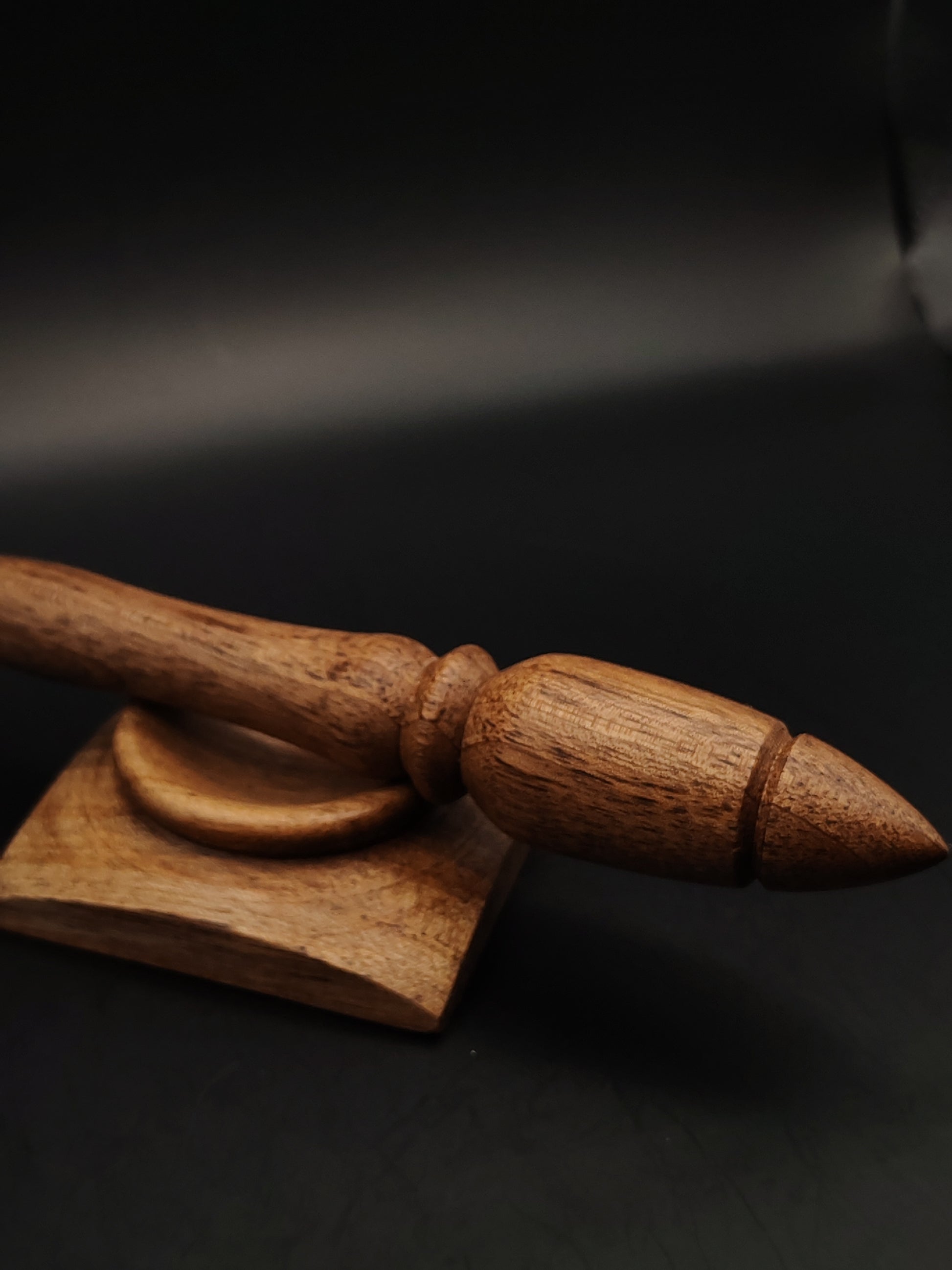 Graceful in form and grounding in function, this Goddess-style support spindle is crafted entirely from walnut wood, celebrated for its warmth, richness, and spinning stability. At 25 grams (0.88 ounces) and 24 cm (9.45 inches) long, it offers a smooth, consistent spin with a comfortable weight that's ideal for meditative fiber work.