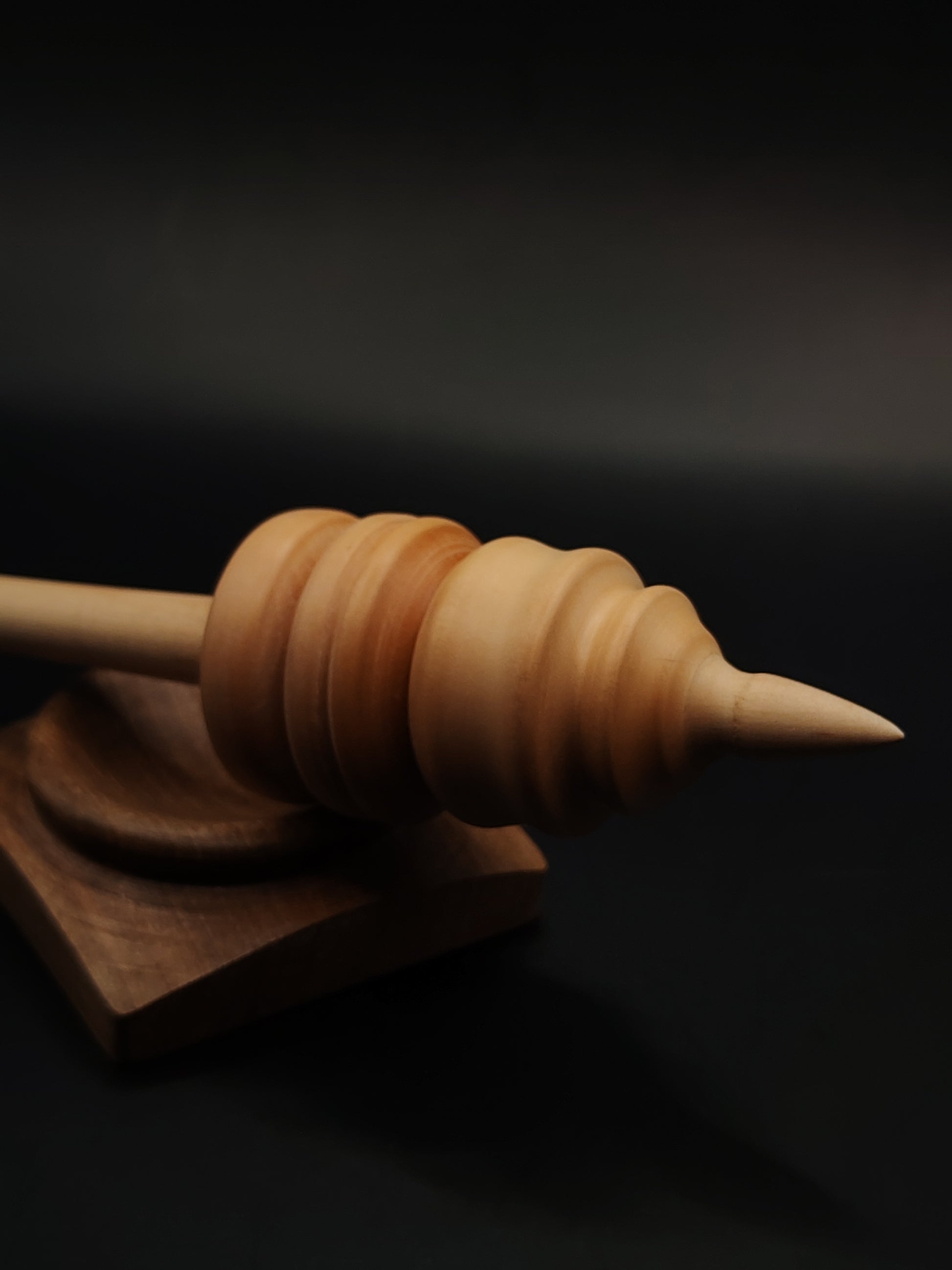 This artisan pear wood support spindle is not for beginners — it's a precision tool designed for experienced spinners who need control, weight, and balance for plying or crafting art yarns. Weighing 38 grams (1.34 ounces) and measuring 30 cm (11.8 inches), it's ideal for handling complex spinning techniques with ease.
