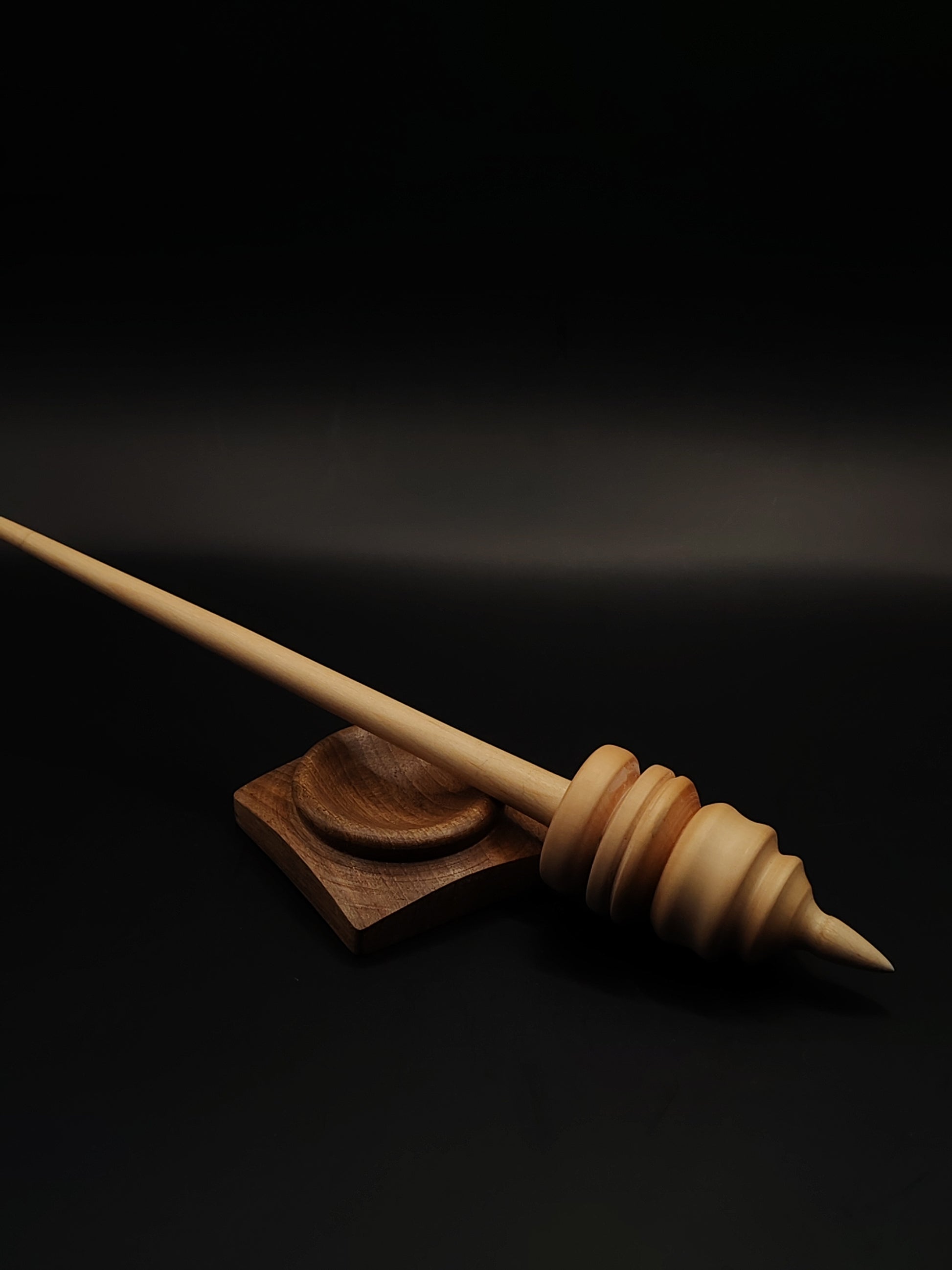 The set comes with a solid walnut support bowl, providing a stable base that complements the spindle’s smooth spin. Both pieces are finished with natural organic wax for a soft, polished feel.