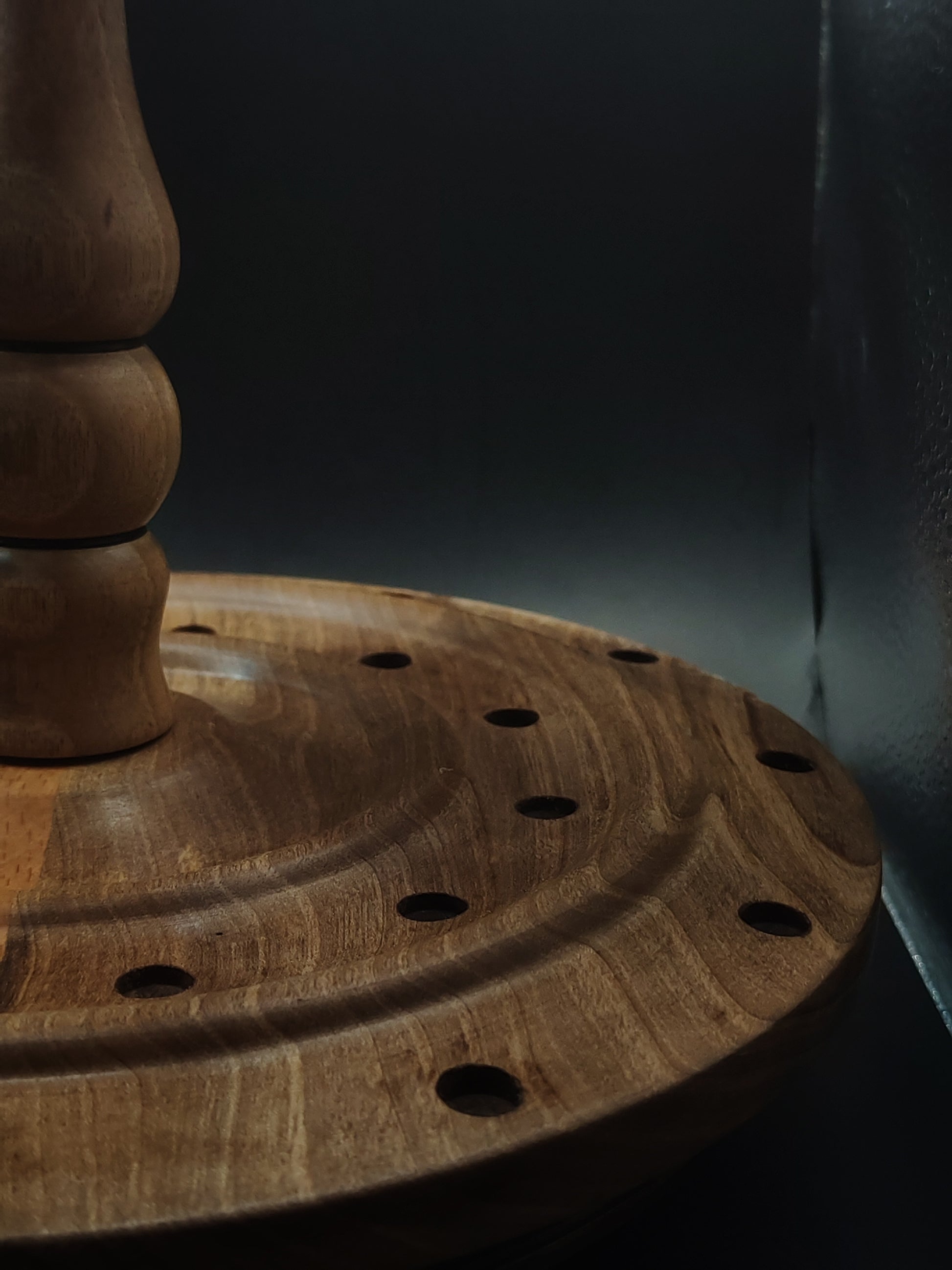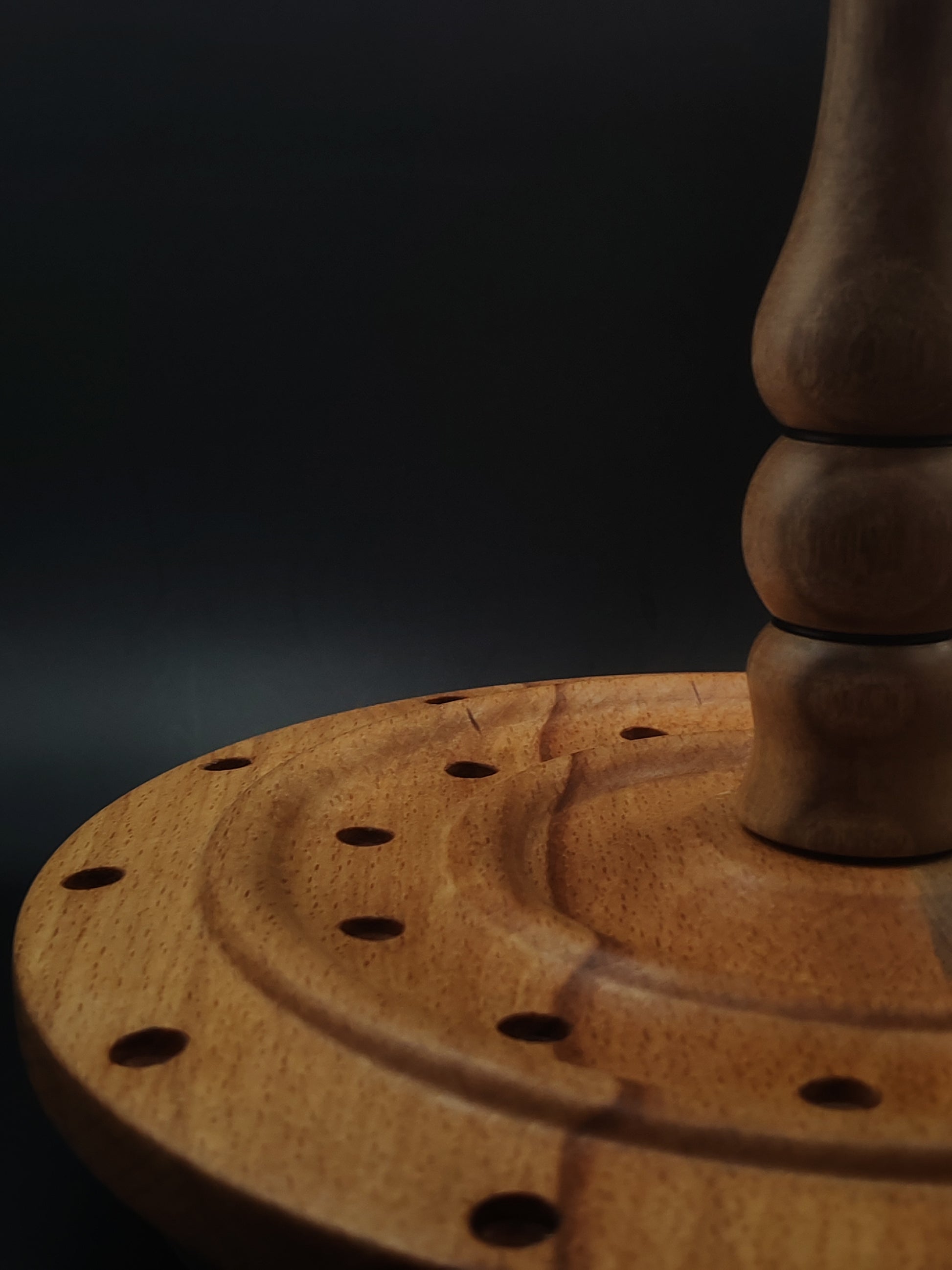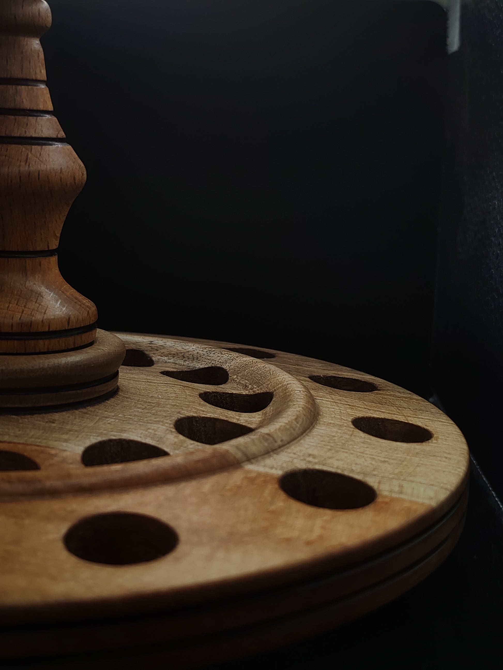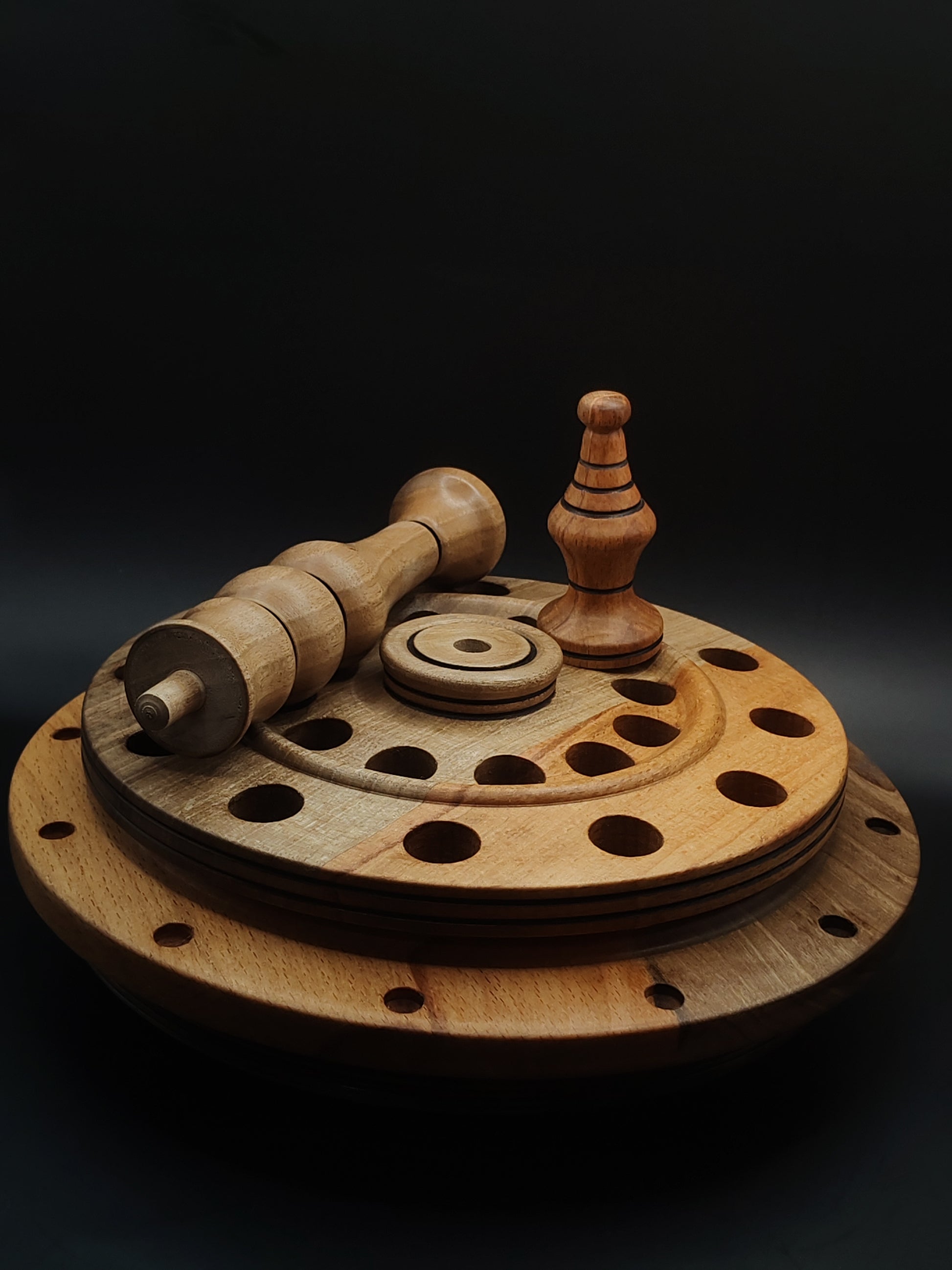 Rotating Spindle Stand – Holds 24 Drop & Support Spindles | Walnut & Beech Wood | 17 cm Height | Handcrafted by Kravelli