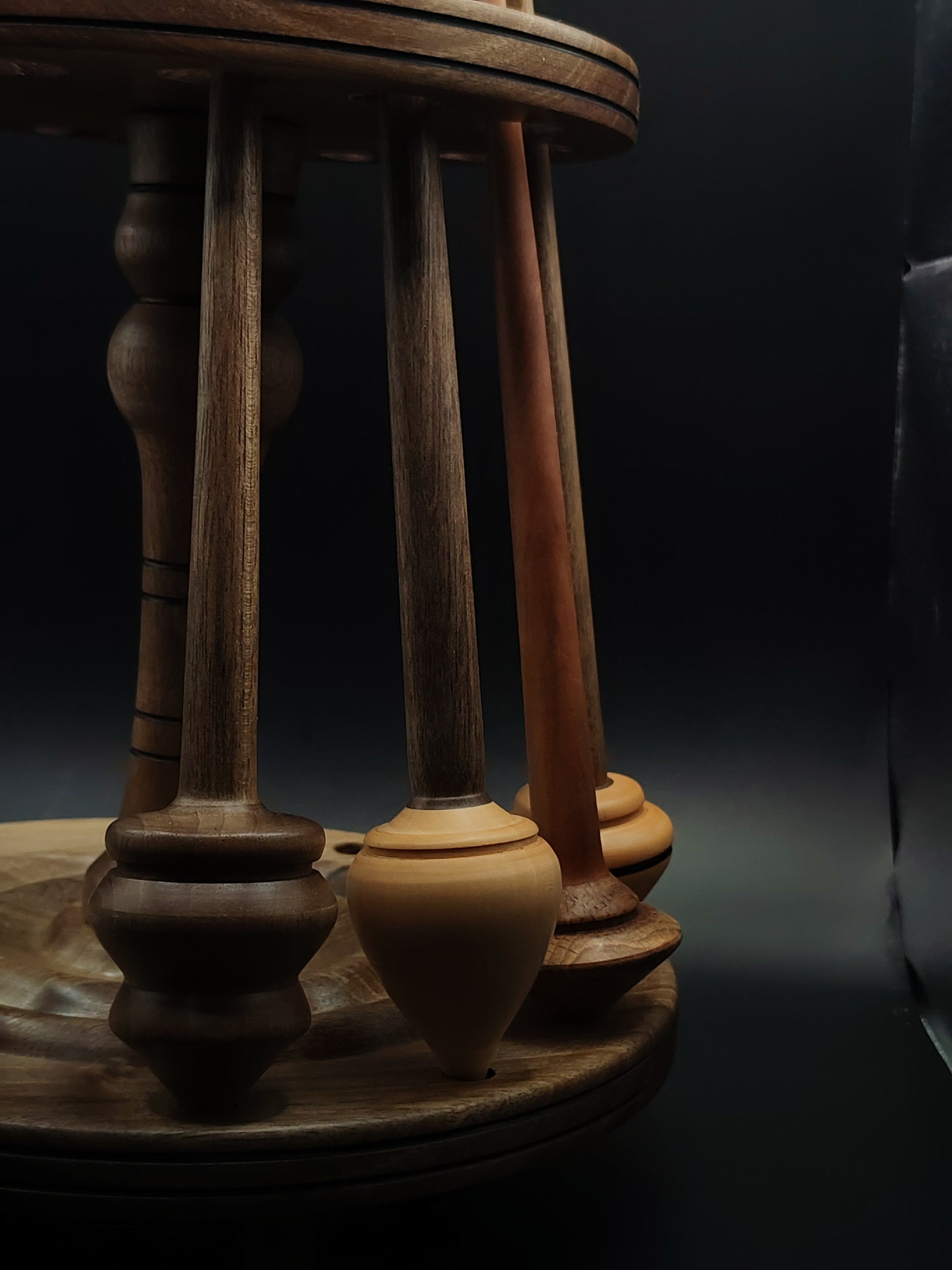 A practical and elegant solution for organizing your spinning tools — this handcrafted 12-spindle stand is made entirely from solid walnut wood, known for its strength, balance, and natural beauty.