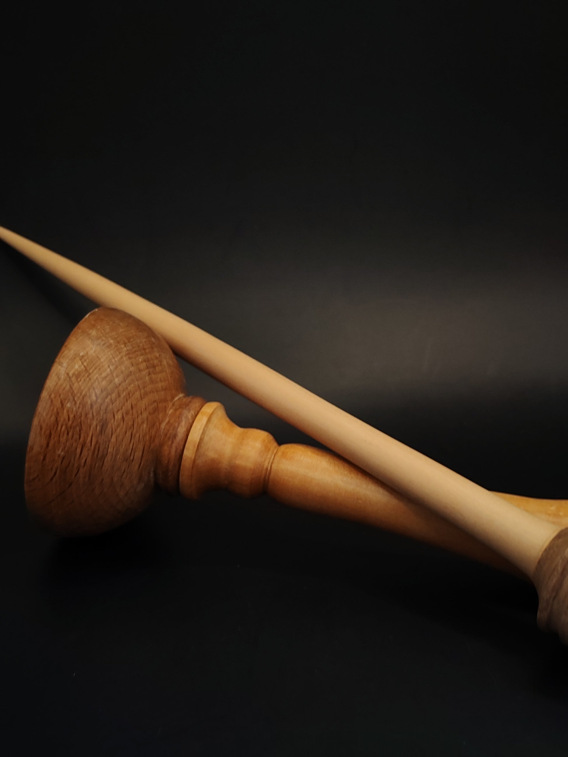 At 24 grams, this spindle offers a versatile mid-weight feel, making it ideal for fine to medium yarns, wool, alpaca blends, and relaxed everyday spinning. The 26 cm (10.2″) length provides comfortable drafting space and steady, predictable rotation.