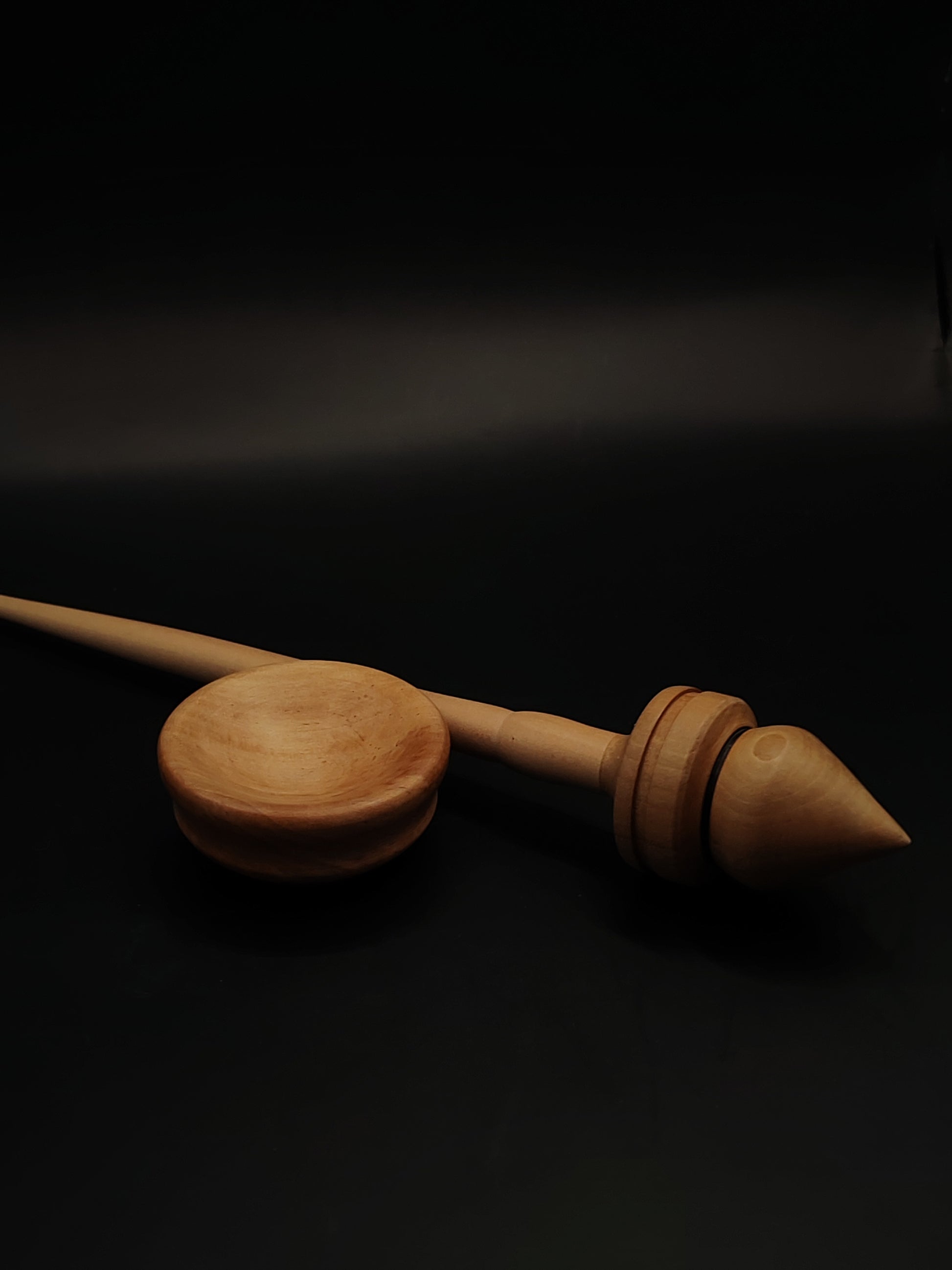 Apple wood adds responsiveness and warmth to the shaft, while pear contributes smooth density and balance at the whorl. The pear support bowl completes the set with a cohesive look and a silky, fiber-safe spinning surface.
