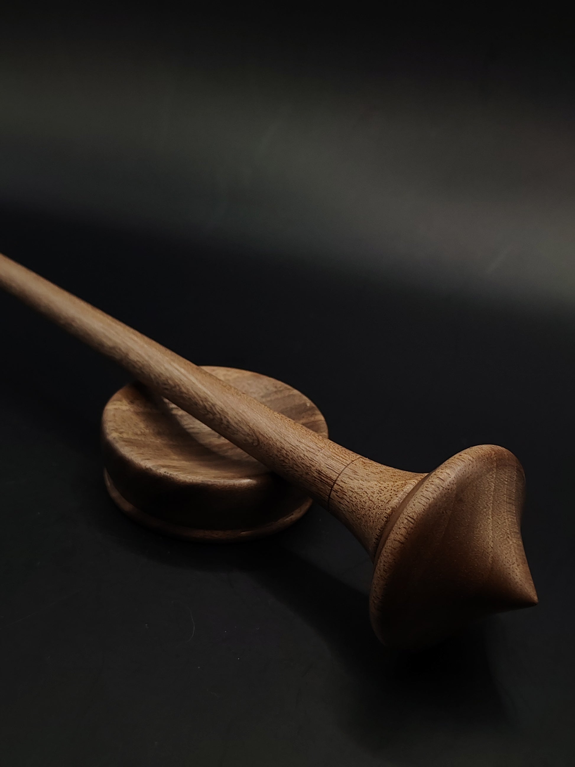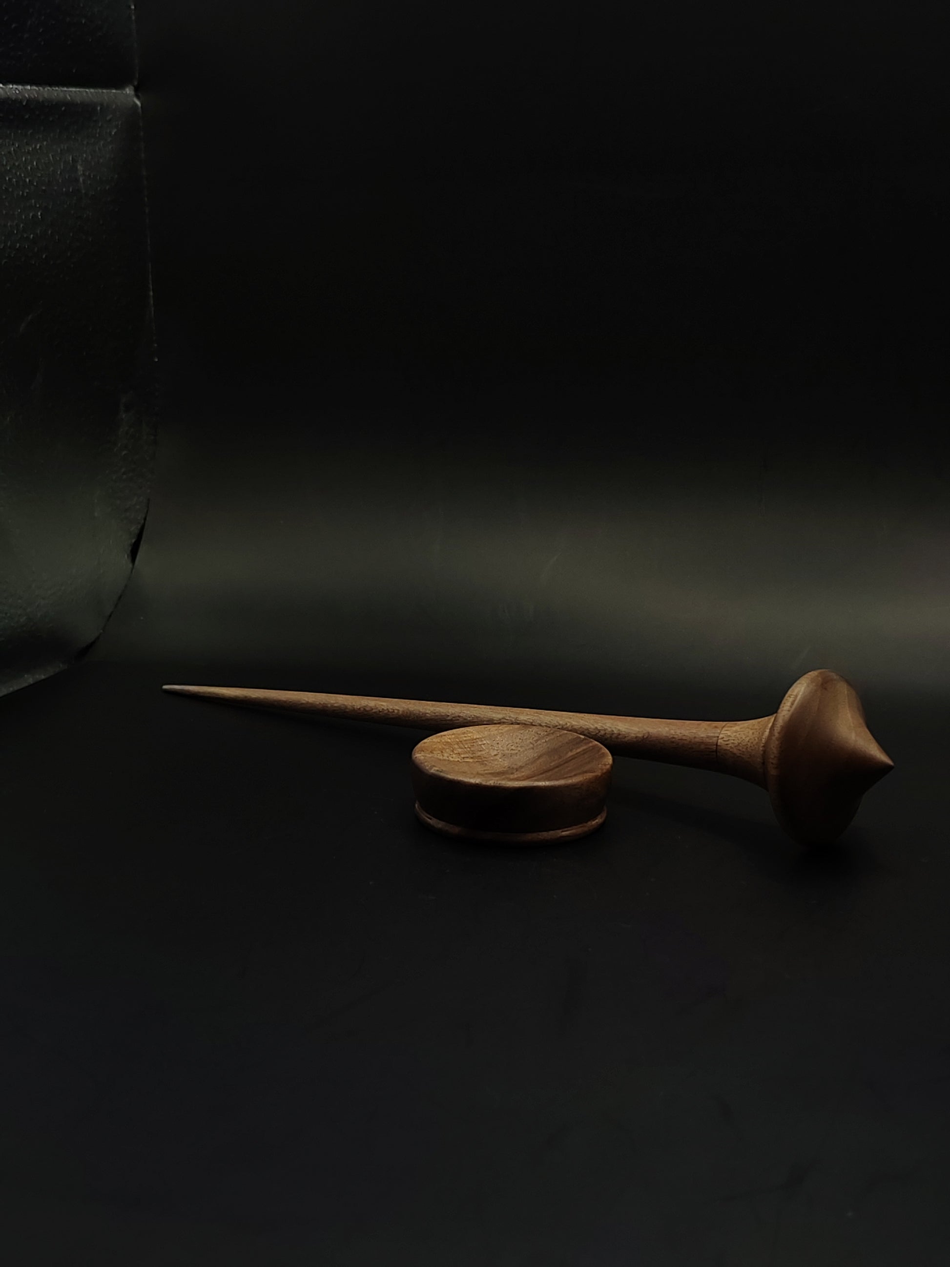 A beautifully balanced walnut support spindle, handcrafted for spinners who value precision, elegance, and tradition. This tool weighs 24 grams (0.85 oz) and measures 26 cm (10.2 in) in length — making it a versatile choice for spinning both fine and medium-weight yarns.