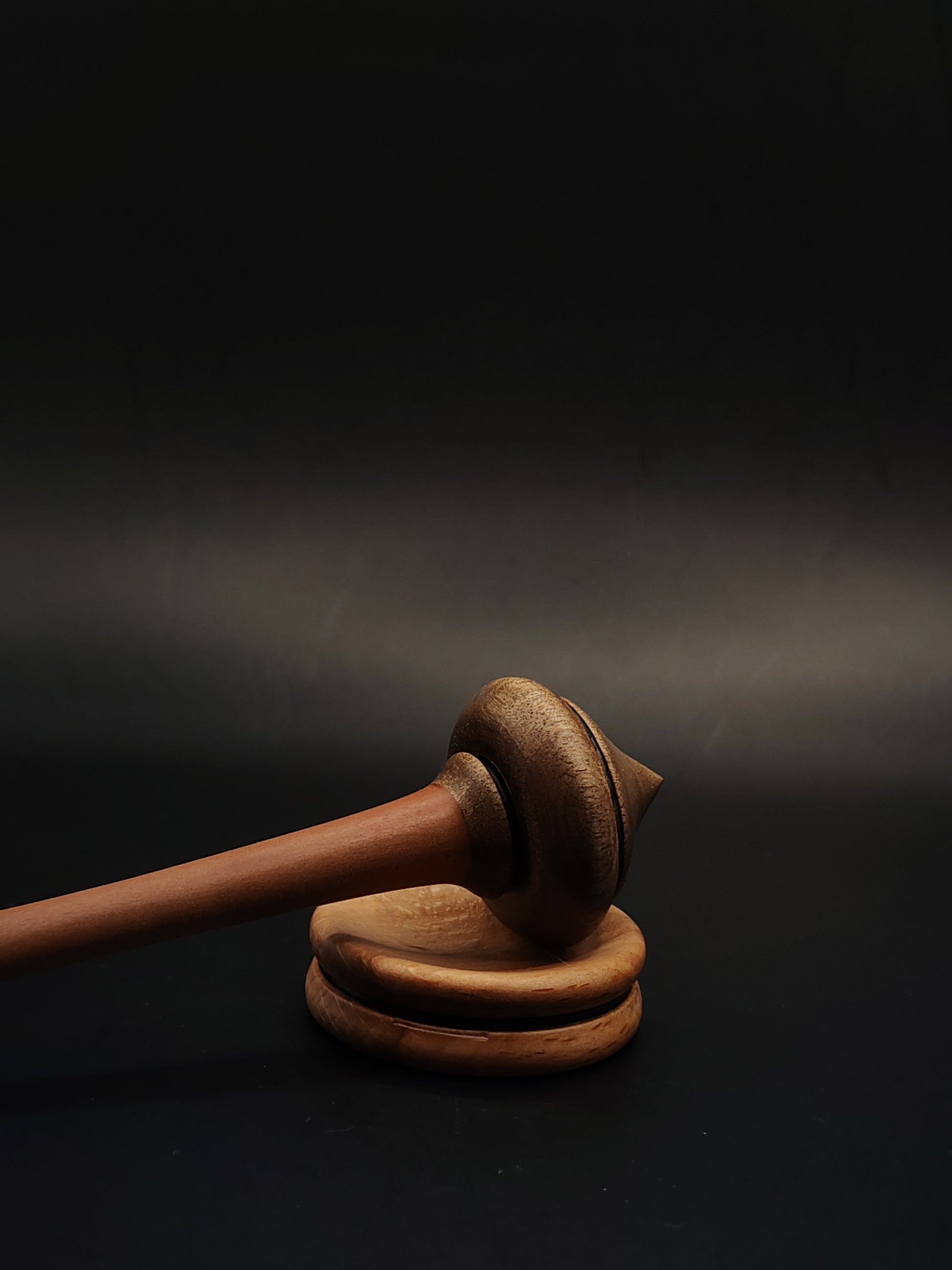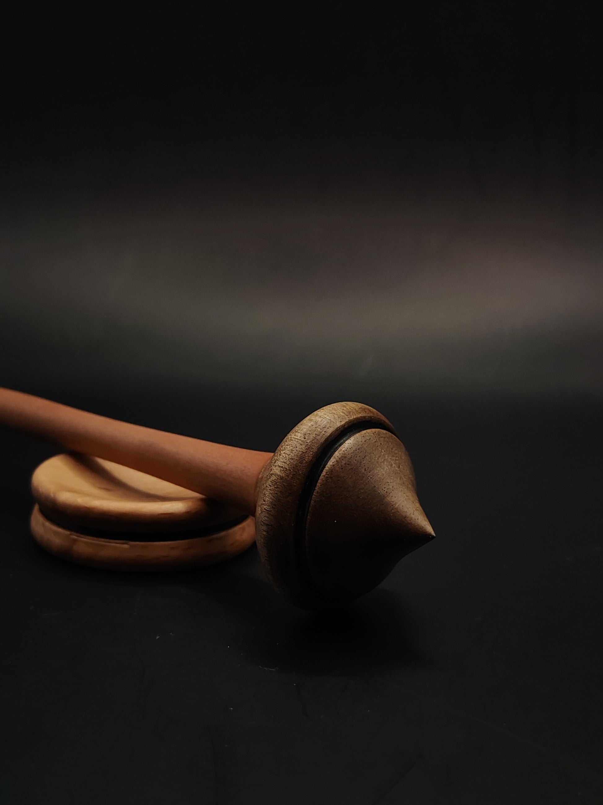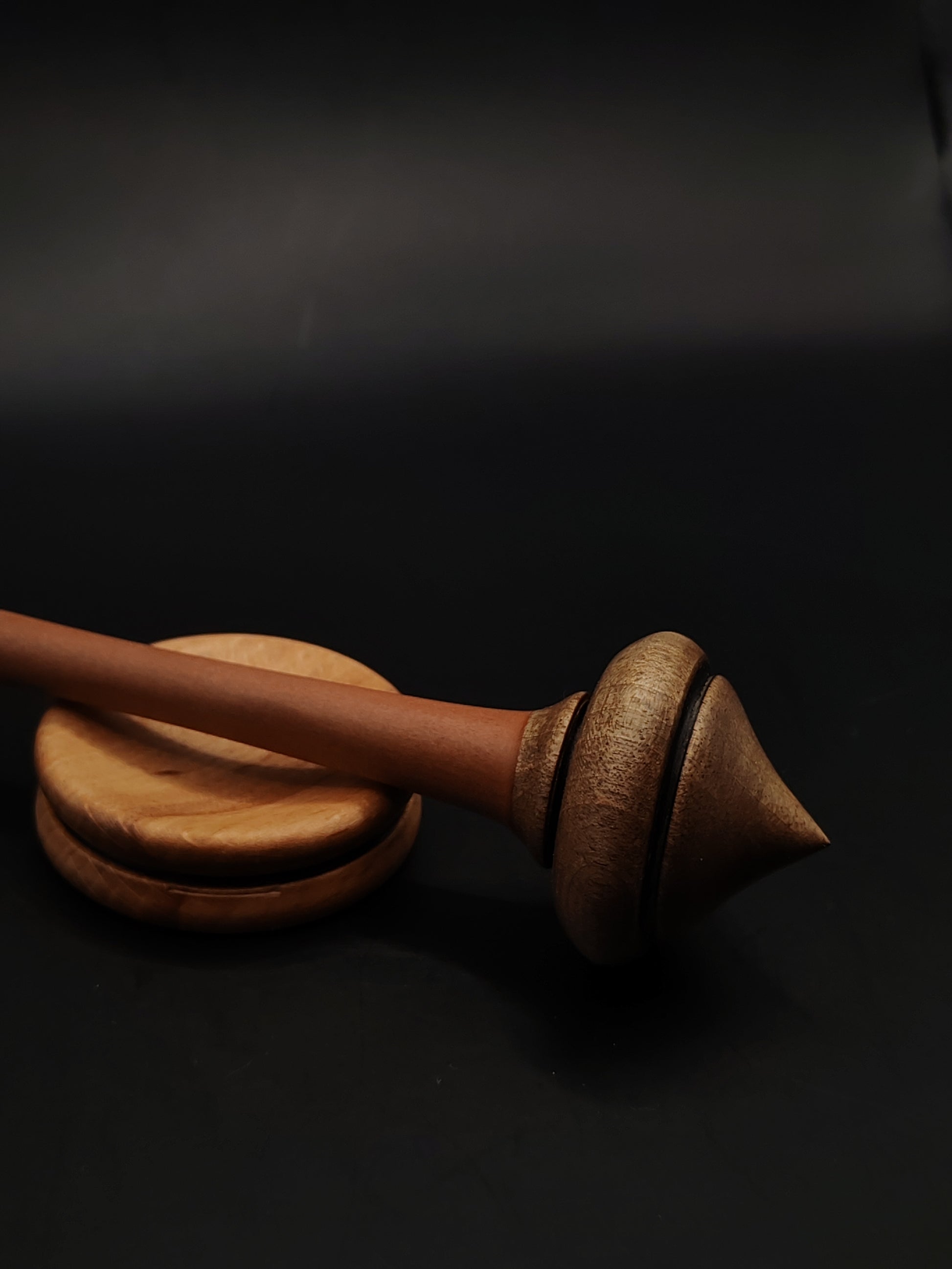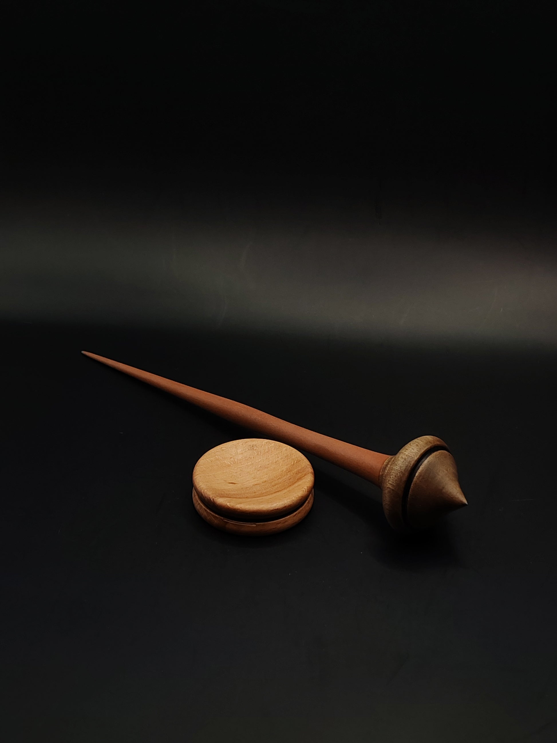 This artisan support spindle is crafted from a blend of durable elm (shaft) and rich walnut (whorl), offering a beautiful balance of lightness and stability. At 19 grams (0.67 oz) and 23.5 cm (9.25 in) in length, it's ideal for spinning mid-weight yarns with ease and control.
