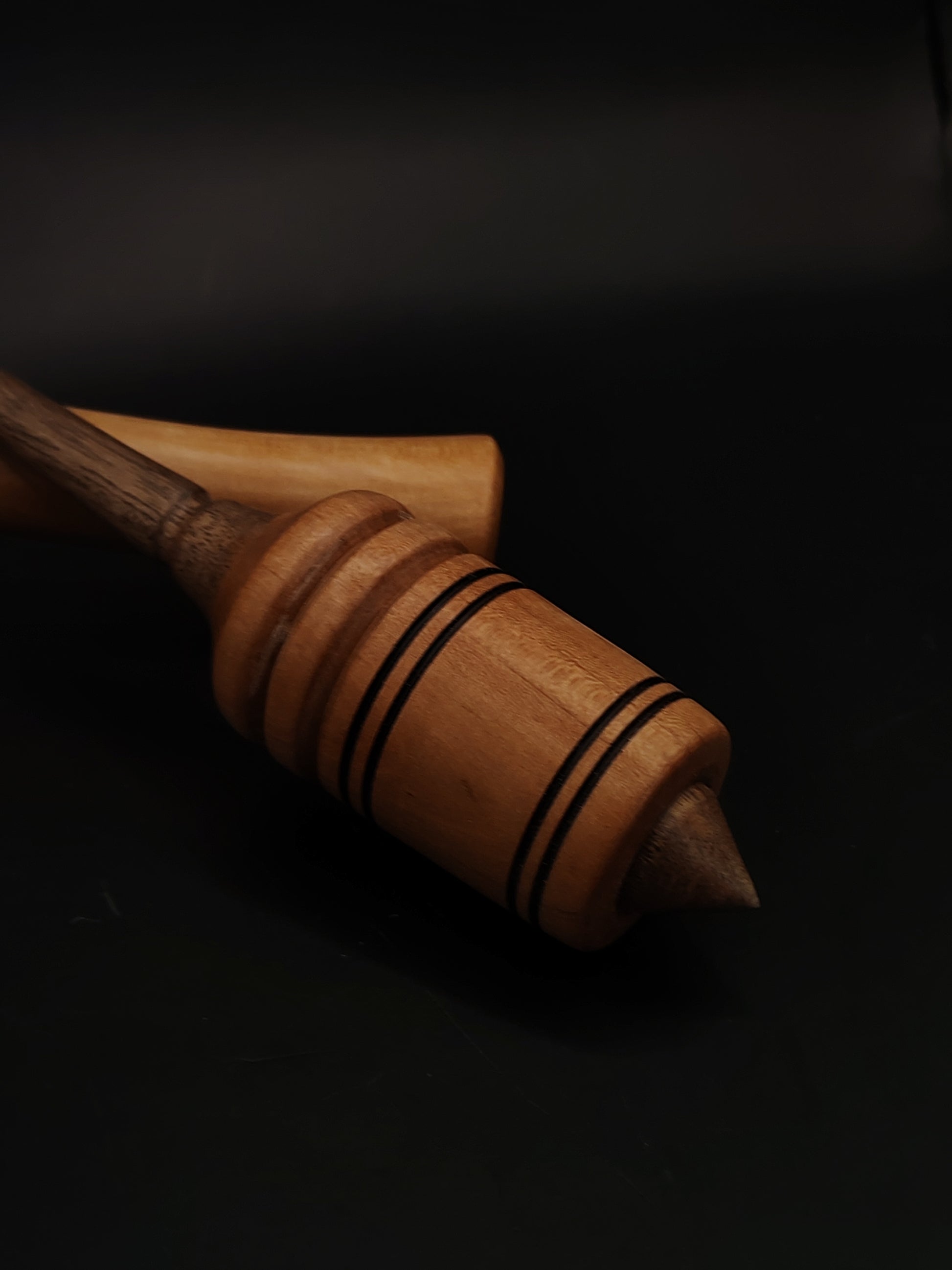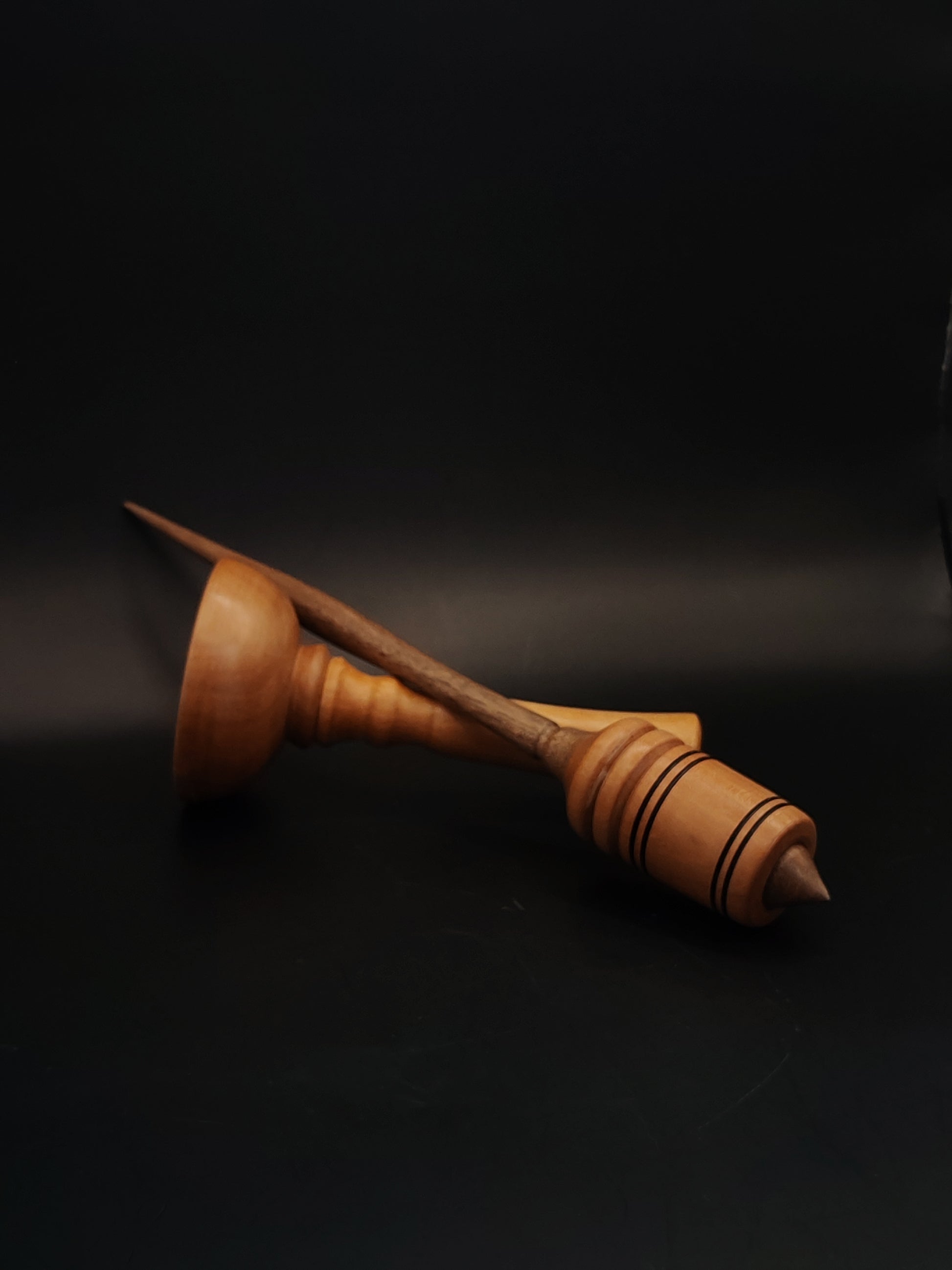 Walnut wood provides durability and balanced density for the shaft, while the pear wood whorl adds smooth weight distribution that improves spinning stability.