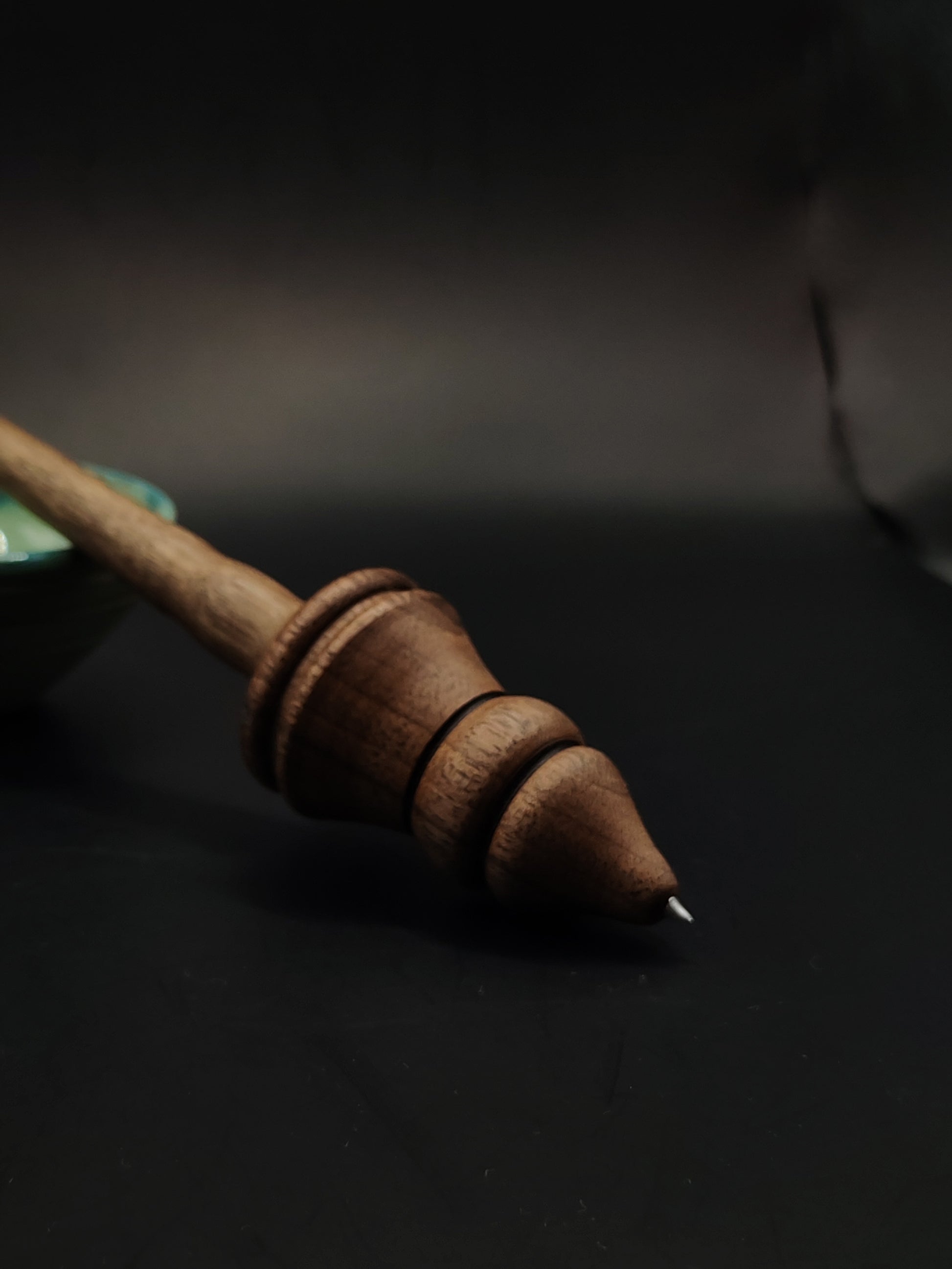 This walnut support spindle is equipped with a stainless steel metal tip on the whorl for enhanced durability and smooth spinning. Weighing 25 grams (0.88 ounces) and measuring 26 cm (10.2 inches), it’s well-balanced for medium to heavier yarns.
