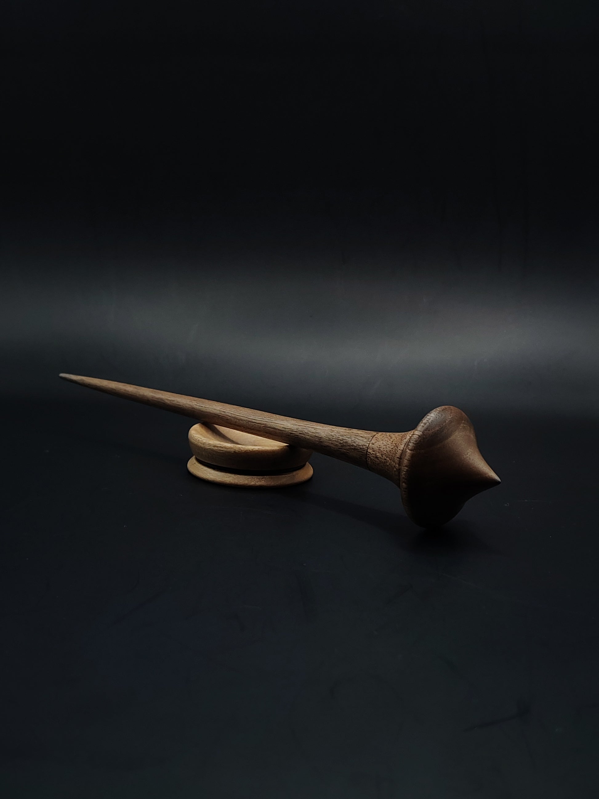This elegant support spindle is handcrafted from rich walnut wood, offering a smooth and balanced spinning experience. At 20.5 cm (8.07 inches) in length and weighing just 19 grams (0.67 ounces), it is lightweight yet stable—perfect for fine, controlled spinning.
