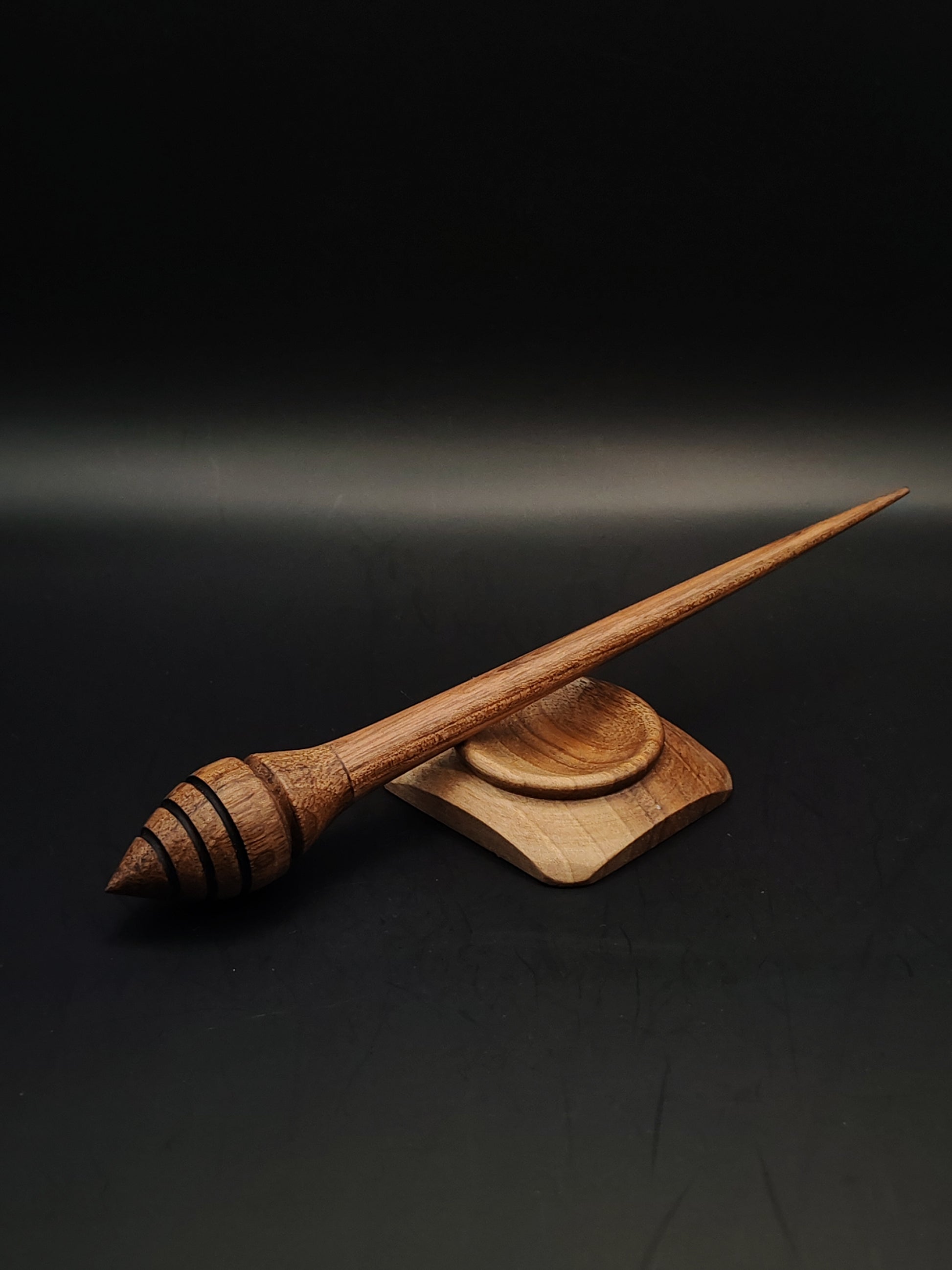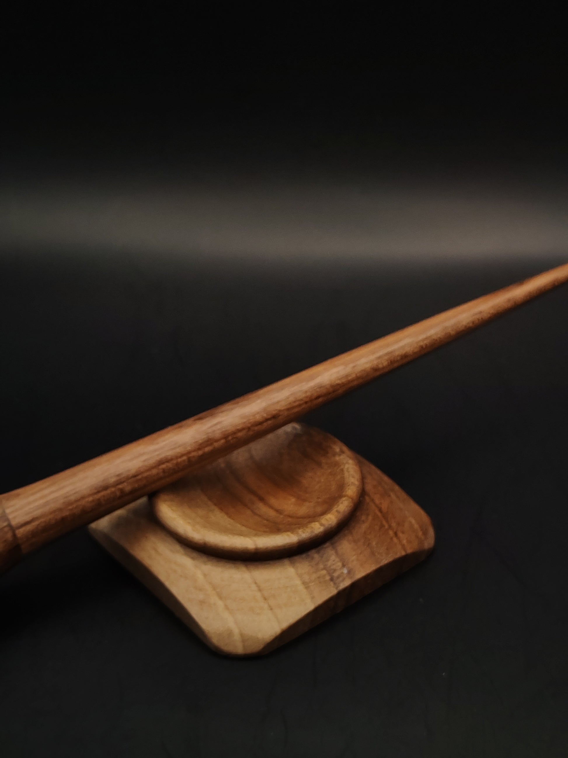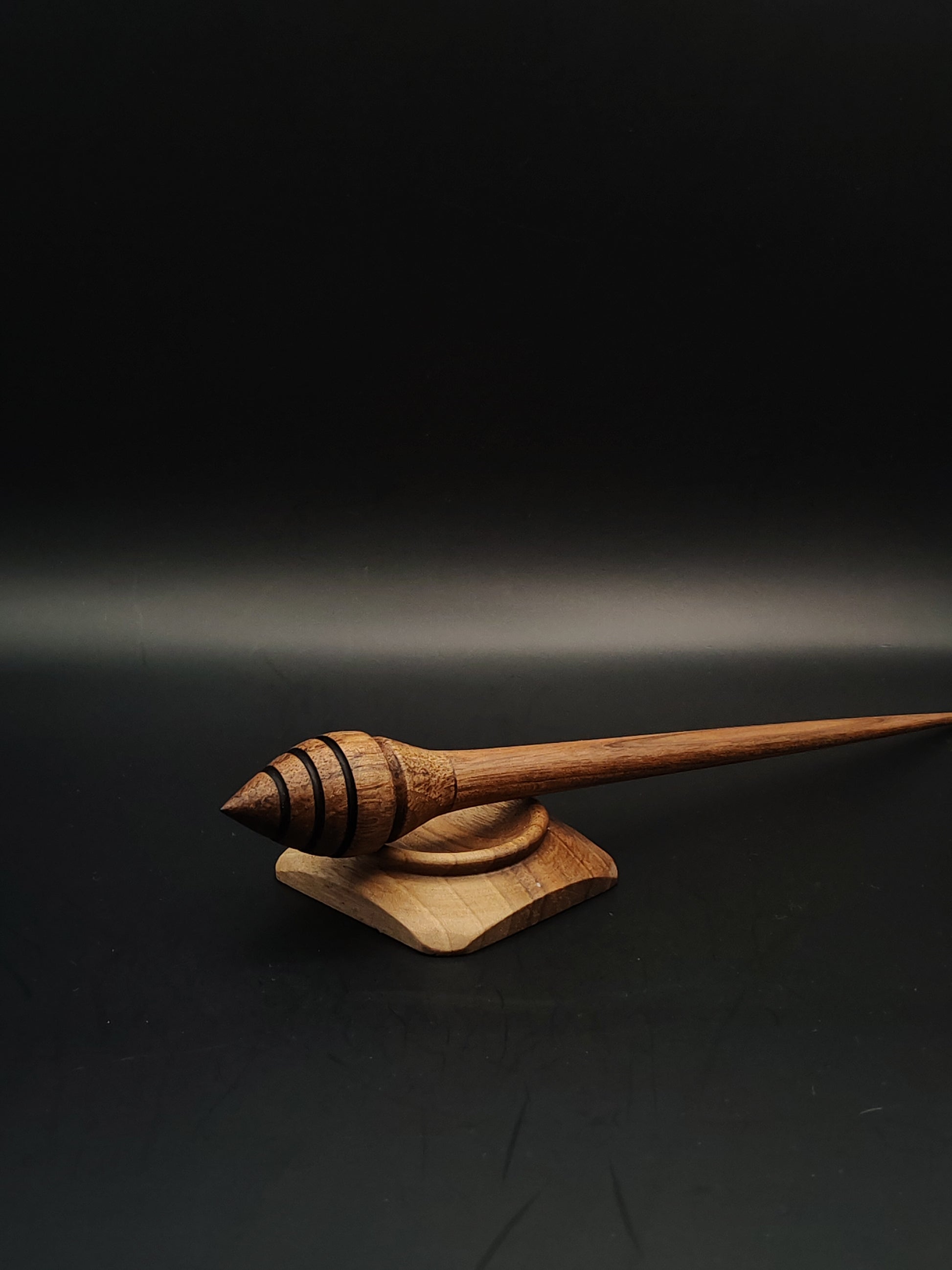 Crafted entirely from rich walnut wood, this support spindle set offers a smooth and grounded spinning experience. The spindle measures 24 cm (9.45 inches) in length and weighs 21 grams (0.74 oz)—a perfect balance for those who prefer medium-weight spindles with graceful momentum.
