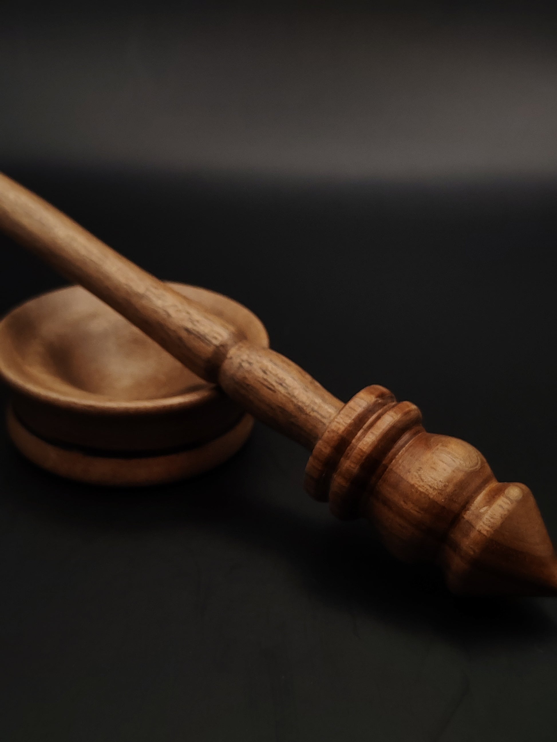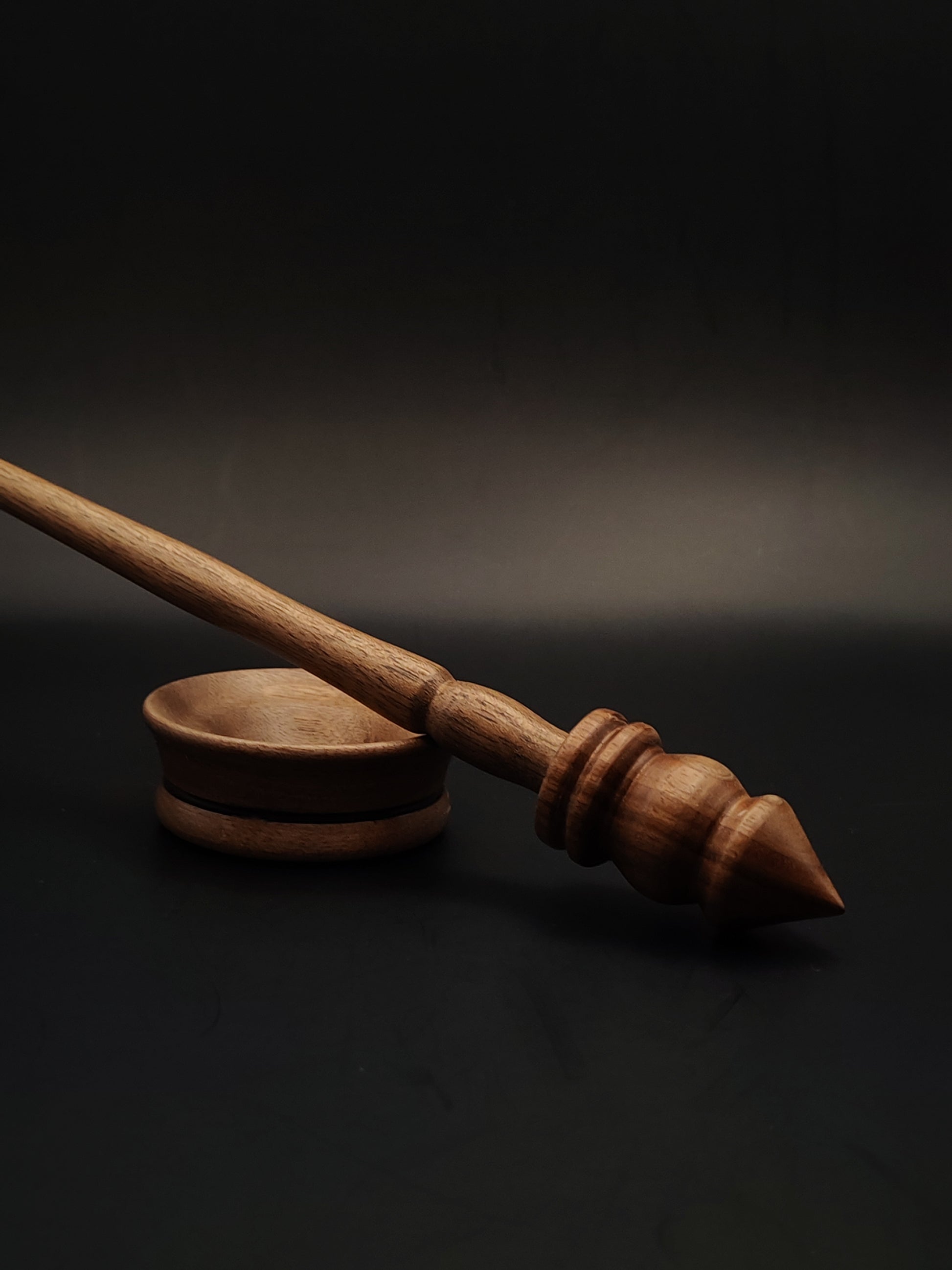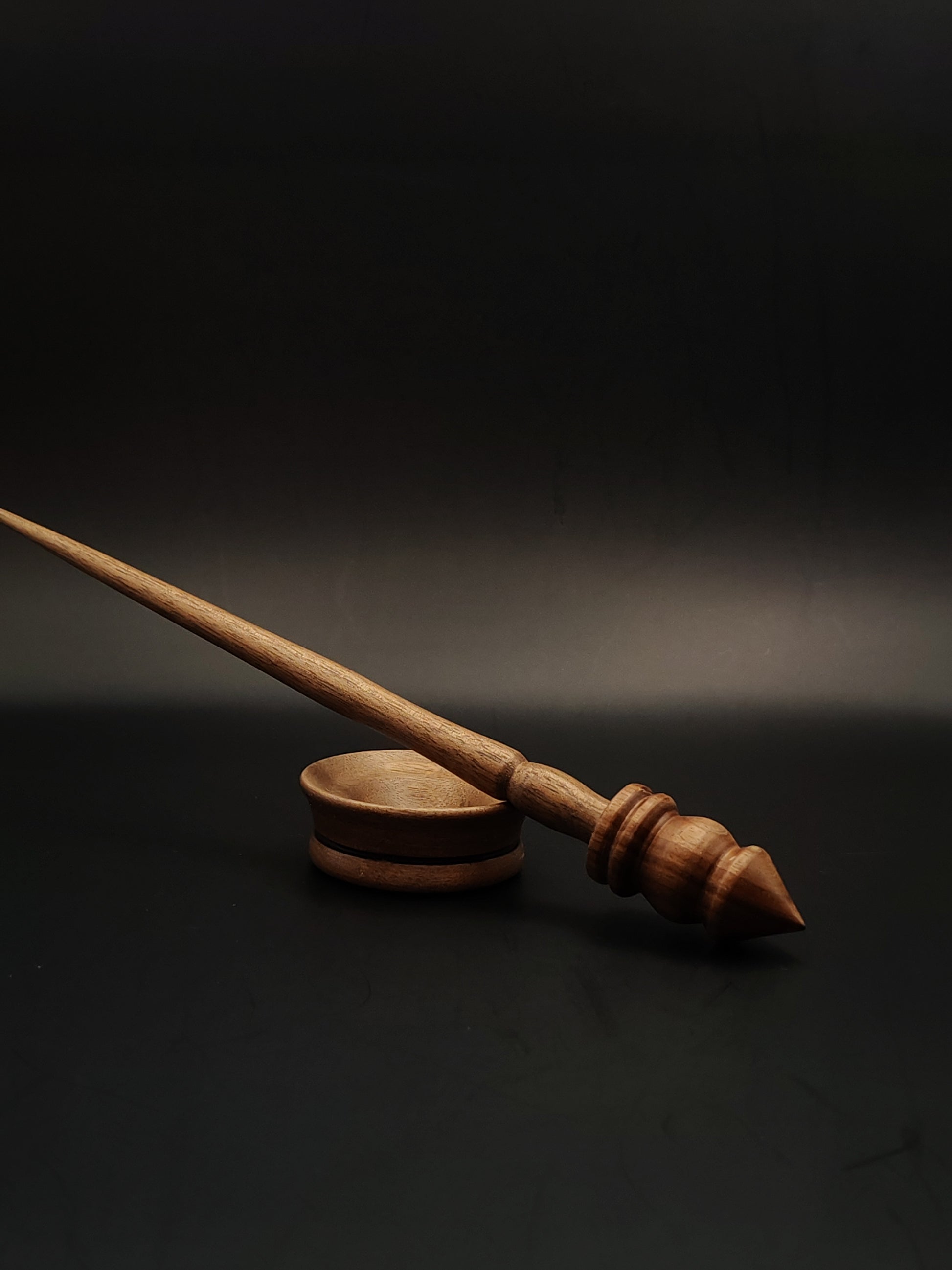 Walnut Support Spindle Set – 19g / 0.67oz, 26cm / 10.23in – With Walnut Support Bowl | Smooth-Spinning Lightweight Spindle | Kravelli Spindles